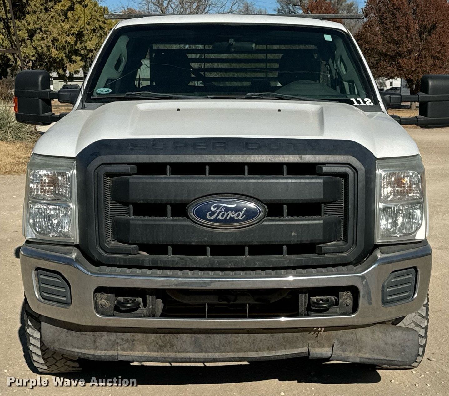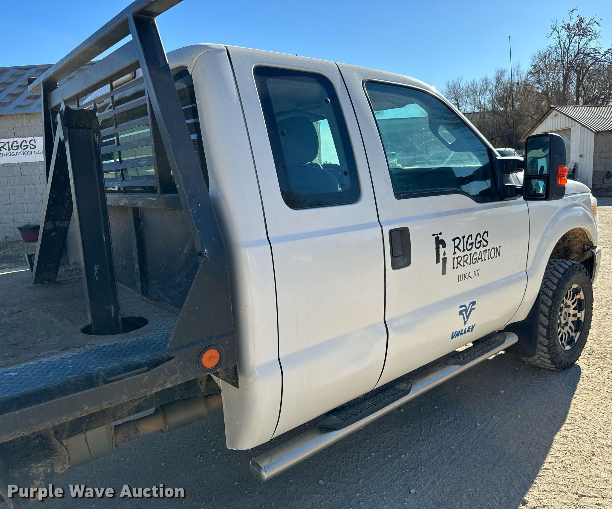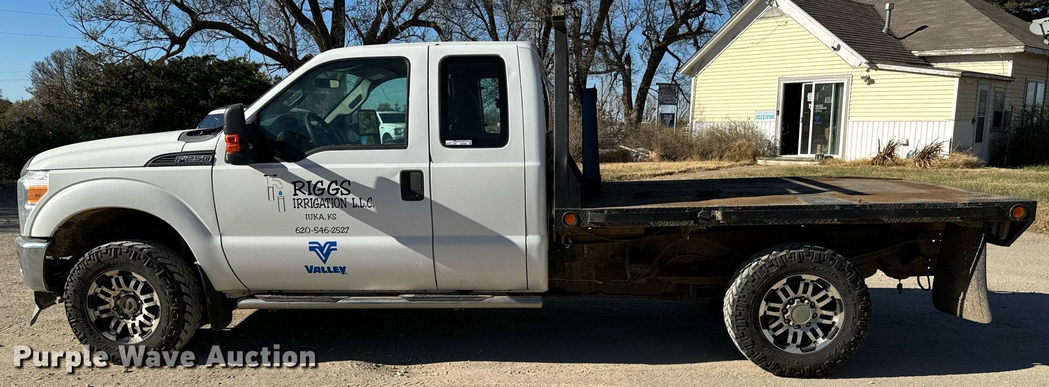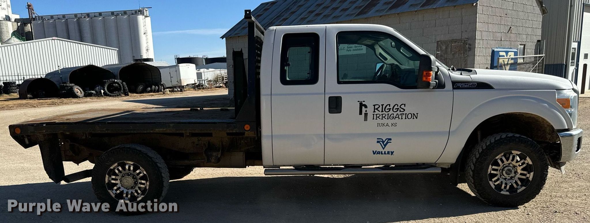 2012 Ford F250 Super Duty SuperCab flatbed pickup truck. Miles: 197,244 on odometer, VIN: 1FT7X2B6XCEC45807, Unit #: 112. Engine Displacement: 6.2L V8 OHV, Cylinders: 8, Fuel type: Gas. Transmission Automatic, Four wheel drive. Interior AC, Heat, Heated mirrors, Power windows, Power locks, Cruise control. Features Flatbed 8' 6" L x 84" W. Tires Size: 265/70R17. Notes Original bed included Tailgate missing , Bumper included, Windshield chipped or cracked, Transmission issues. Kansas title. Title distribution may be delayed up to 14 days from verification of funds. Riggs Irrigation. Iuka, KS 67066