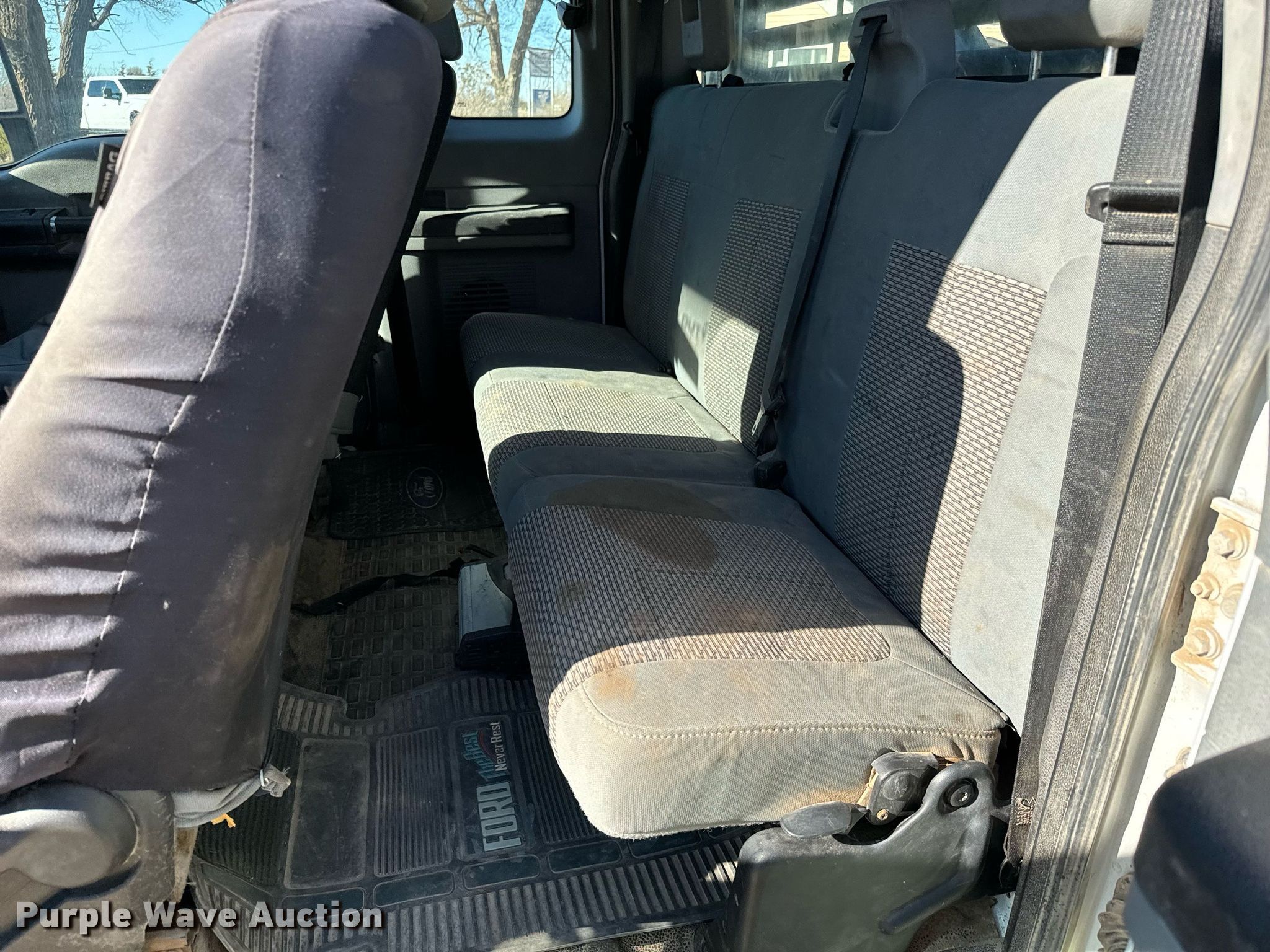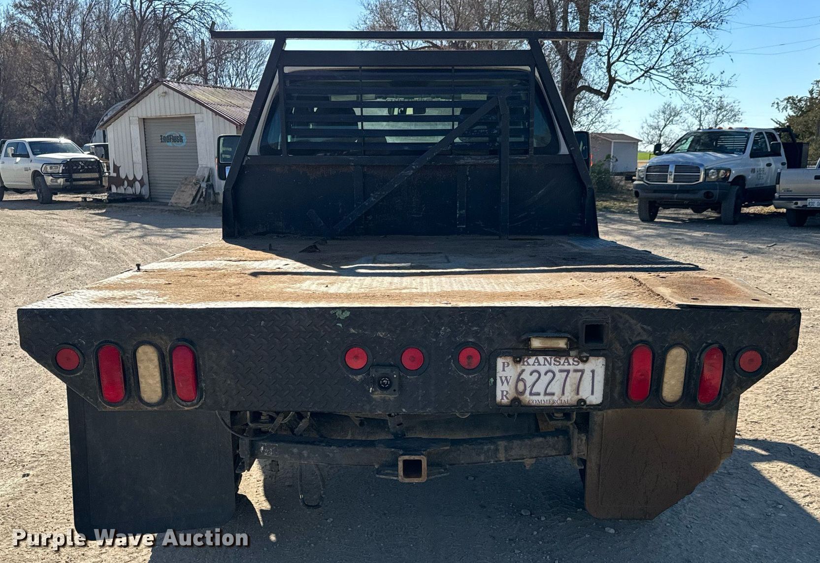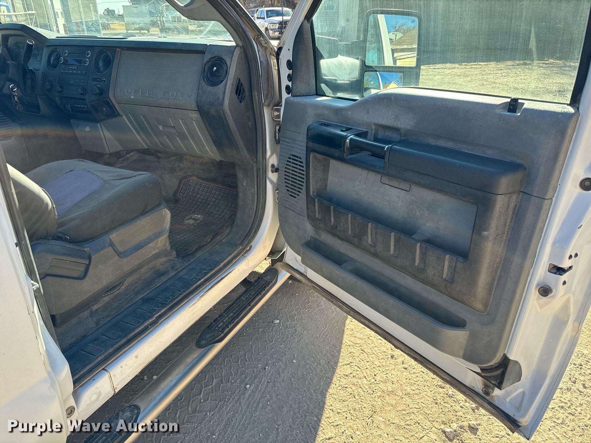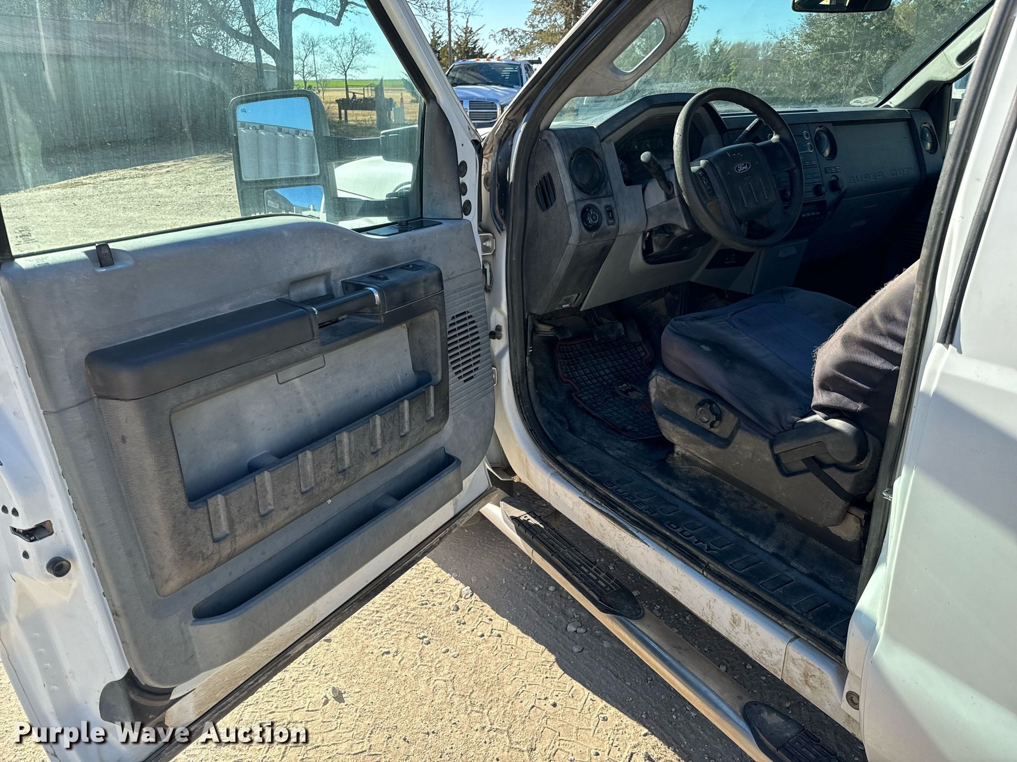 2012 Ford F250 Super Duty SuperCab flatbed pickup truck. Miles: 197,244 on odometer, VIN: 1FT7X2B6XCEC45807, Unit #: 112. Engine Displacement: 6.2L V8 OHV, Cylinders: 8, Fuel type: Gas. Transmission Automatic, Four wheel drive. Interior AC, Heat, Heated mirrors, Power windows, Power locks, Cruise control. Features Flatbed 8' 6" L x 84" W. Tires Size: 265/70R17. Notes Original bed included Tailgate missing , Bumper included, Windshield chipped or cracked, Transmission issues. Kansas title. Title distribution may be delayed up to 14 days from verification of funds. Riggs Irrigation. Iuka, KS 67066