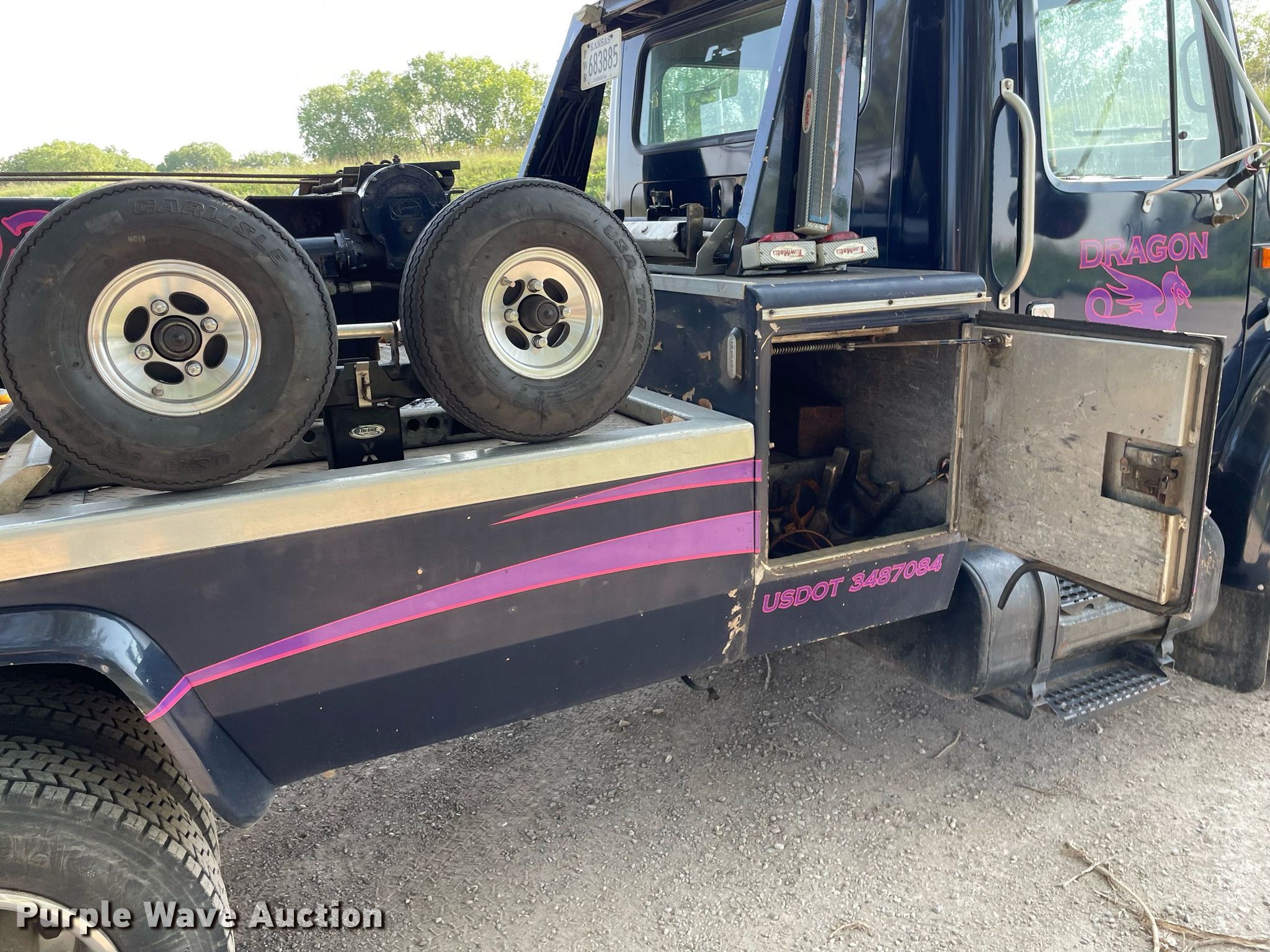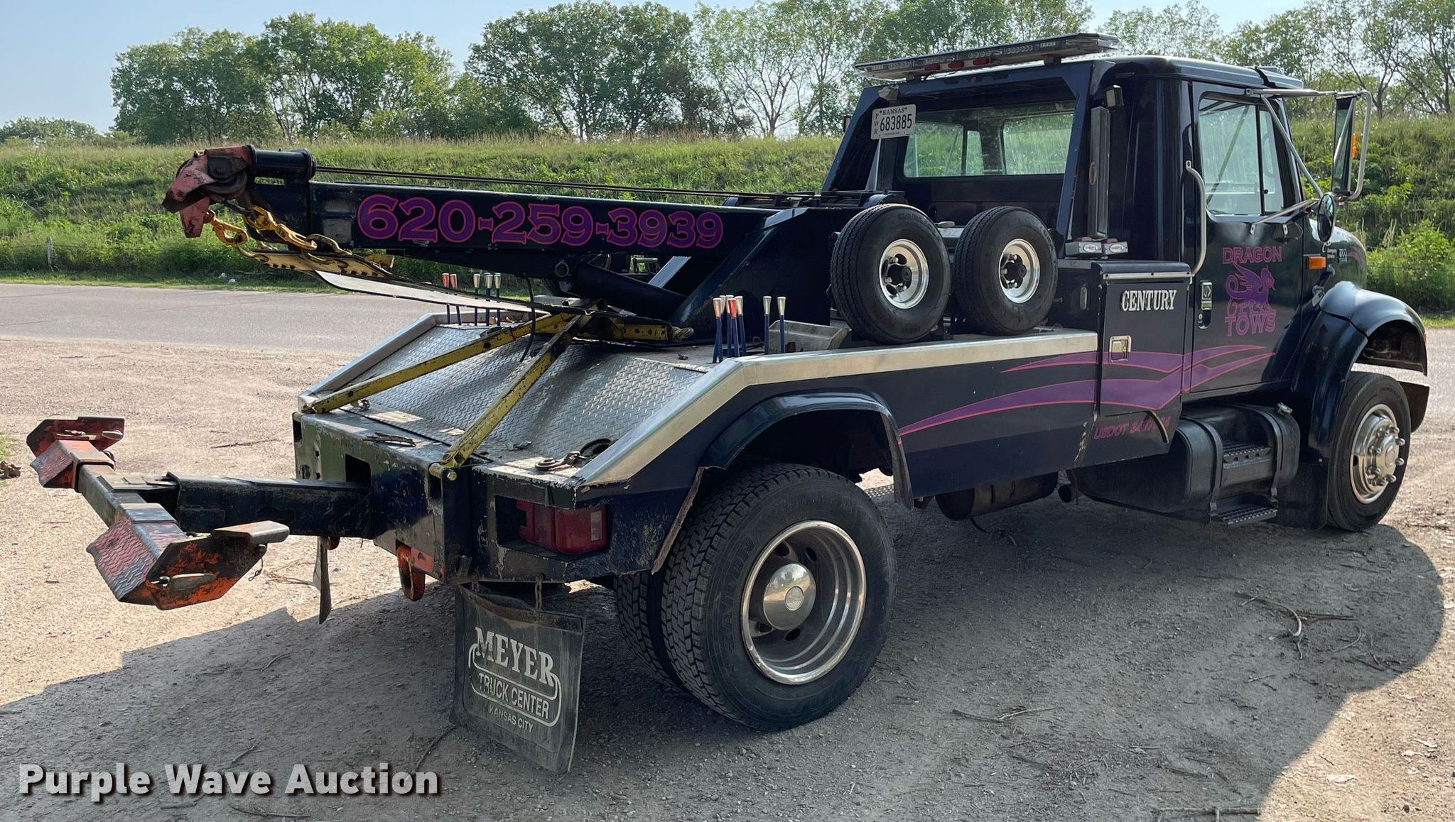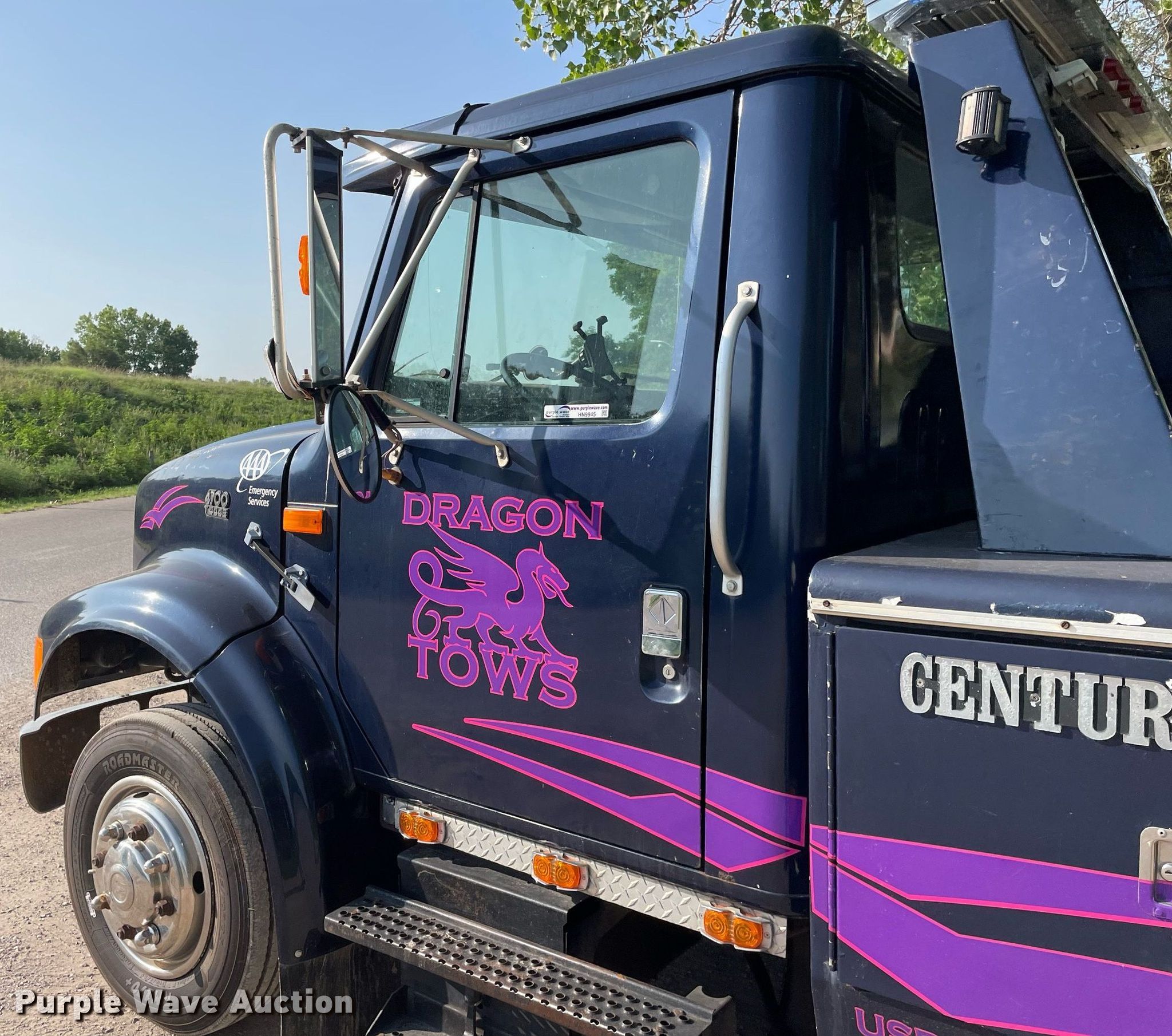 1997 International 4700 tow truck. Miles: 310,920 on odometer, VIN: 1HTSCABM3VH449013. Engine International T444E, Displacement: 7.3L, Cylinders: 8, Fuel type: Diesel. Transmission Automatic. Chassis Axles: Single, Suspension: Spring, Brakes: Hydraulic, PTO, GVWR: 23,440 lbs. Interior AC, Heat, Heated mirrors, Power windows, Cruise control. Features Wrecker bed Century , 10' L x 90" W, Wrecker boom: Hydraulic extendable, Winch Dual, Underlift. Tires Size: 245/70R19.5. Notes Non-operational lightbar, Contents included , (2) dollies included Capacity: 4,000 lbs, Windshield chipped or cracked. Kansas title. Title has a lien that will be released following the close of the auction. A paper title will be printed once the lien is released. Title distribution may be delayed up to 30 days from verification of funds. Dragon Tows Retirement. 13505 Southwest 140th St. Rose Hill, KS 67133
