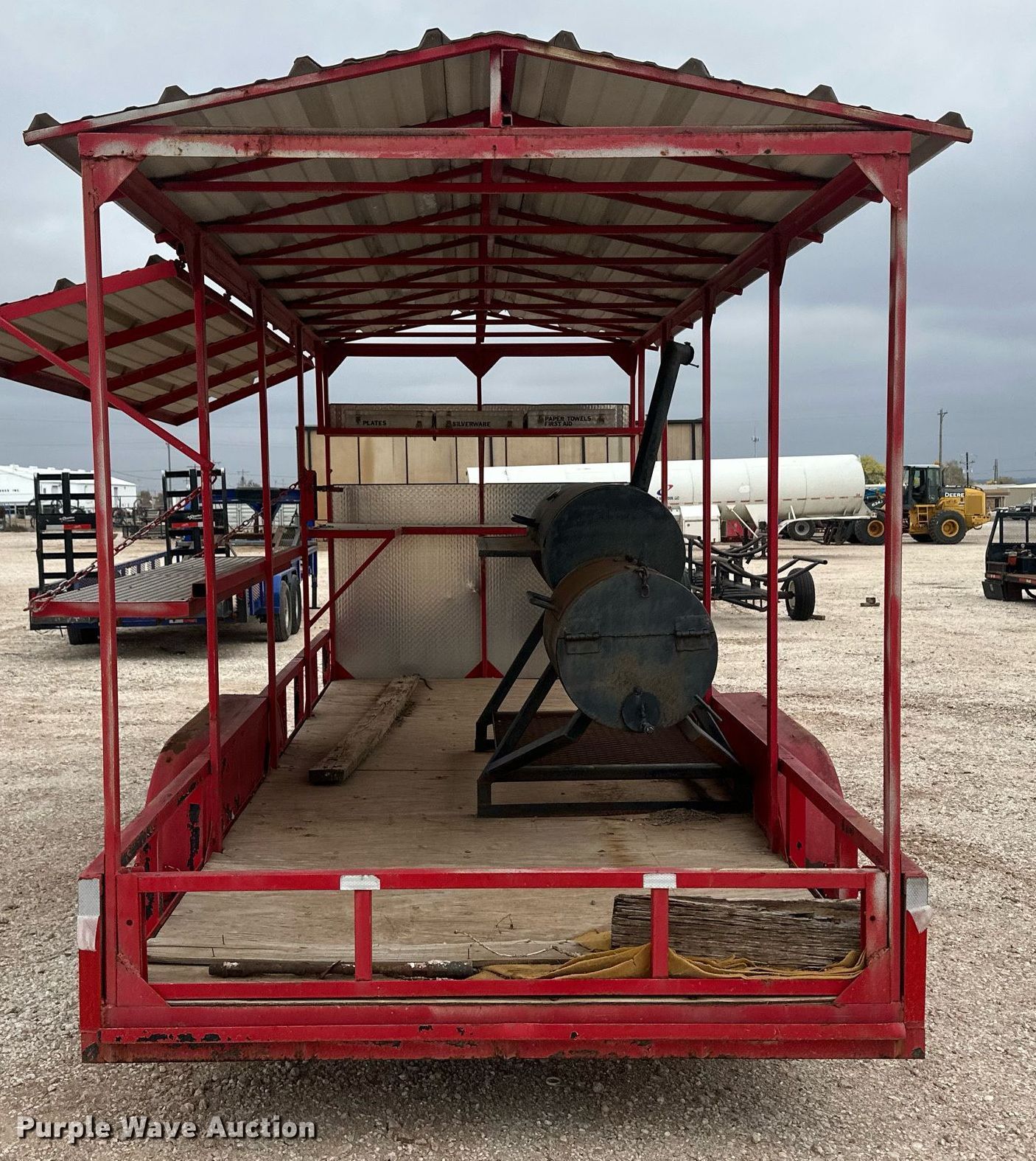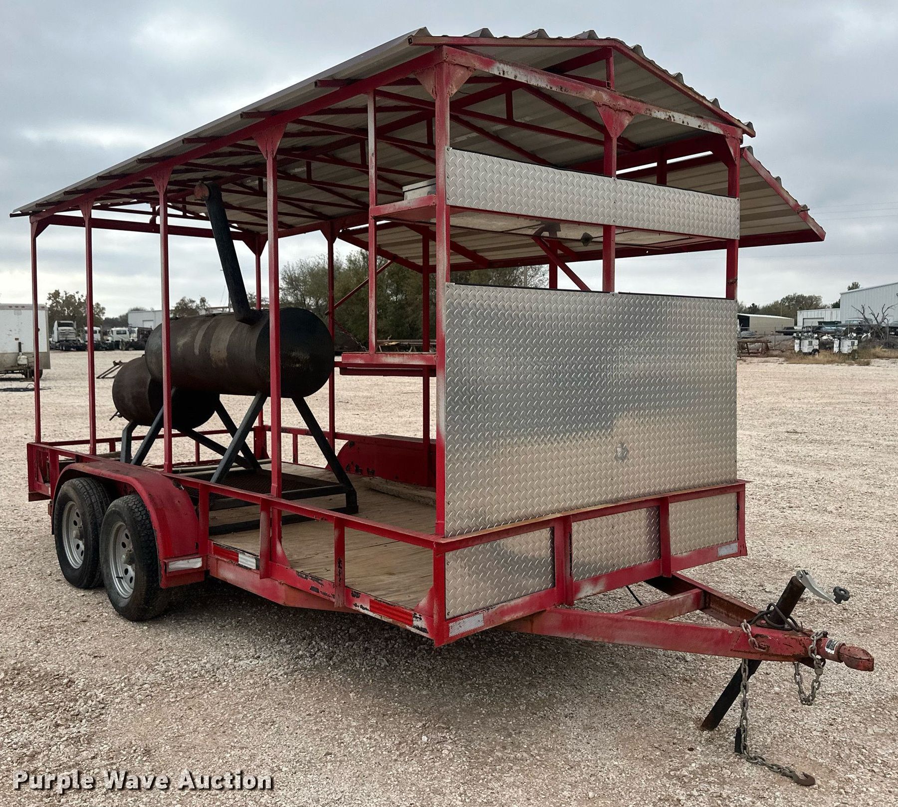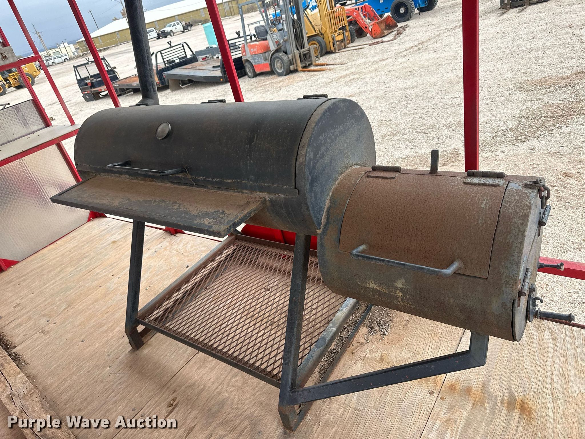 Shop built utility trailer. Dimensions. Overall: 19' 6" L x 96" W, Deck: 16' L x 76" W. Features Deck type: Wood, Smoker: 58" L x 20" diameter. Chassis Ball hitch: 2 5/16", Landing gear: Single, Suspension: Spring, Axles: Tandem. Tires Steel wheels, Size: 205/75D15. Transfer of ownership documentation will be a bill of sale. 4413 Oklahoma Avenue. Woodward, OK 73801
