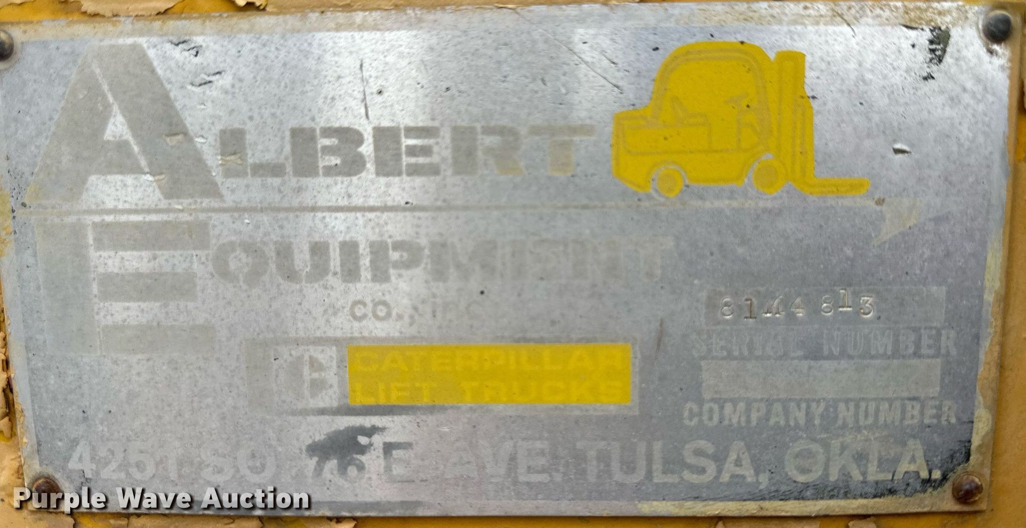 Purple Wave is selling a used Warehouse Forklift in Oklahoma. This item is a Caterpillar V50B forklift with the following: Serial: 8144813