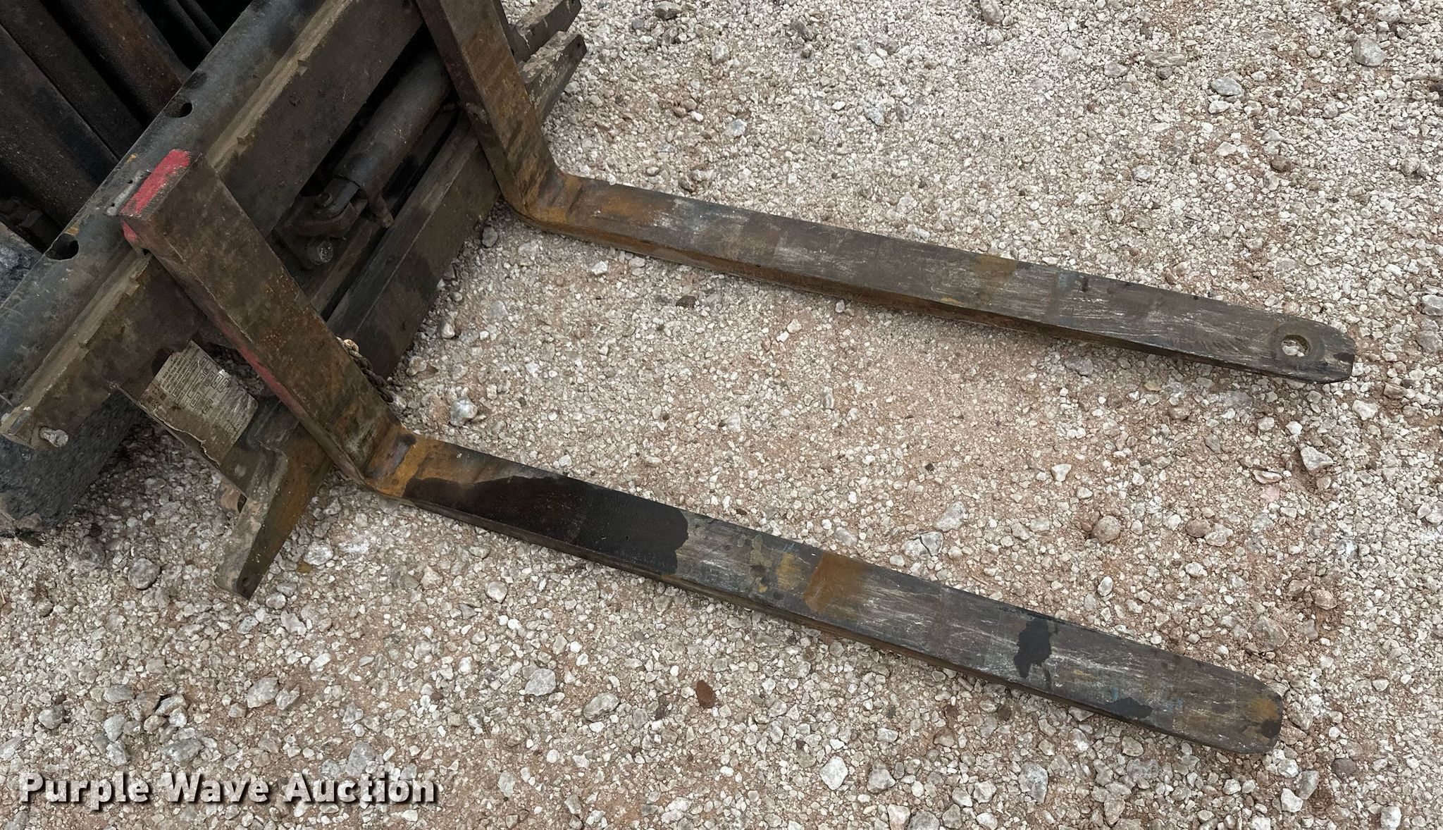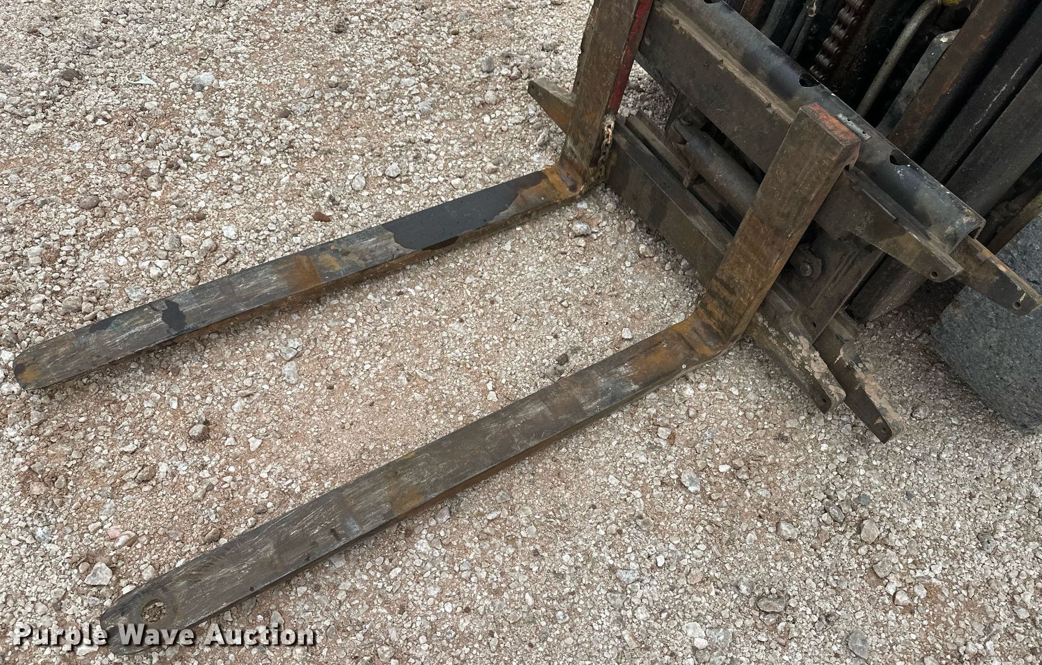 Hyster forklift. Hours: 4,914 on meter. Engine Isuzu, Cylinders: 4, Fuel type: Diesel. Transmission Hydrostatic. Operators station Canopy. Features Mast stages: 3, Side shift, Mast tilt, Fork length: 48". Tires Front: 28x12.5-15. 4413 Oklahoma Avenue. Woodward, OK 73801