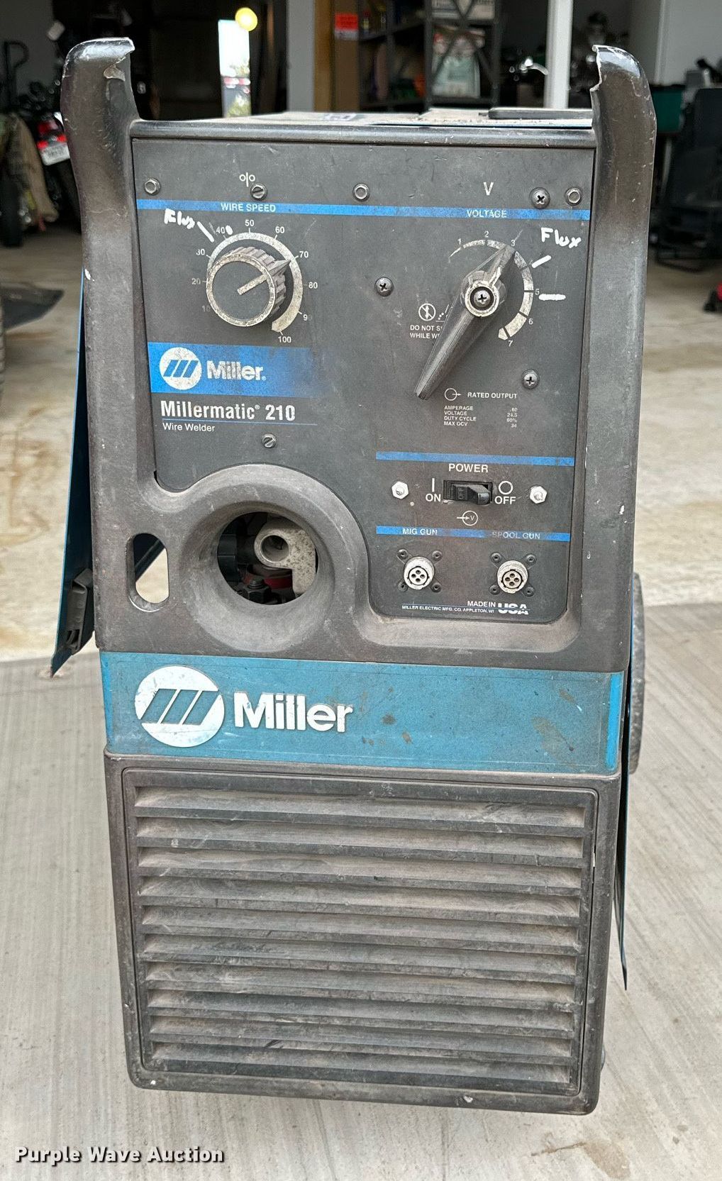 Purple Wave is selling a used Welder (Manual) in Oklahoma. This item is a Miller 210 welder with the following: Serial: LC107972