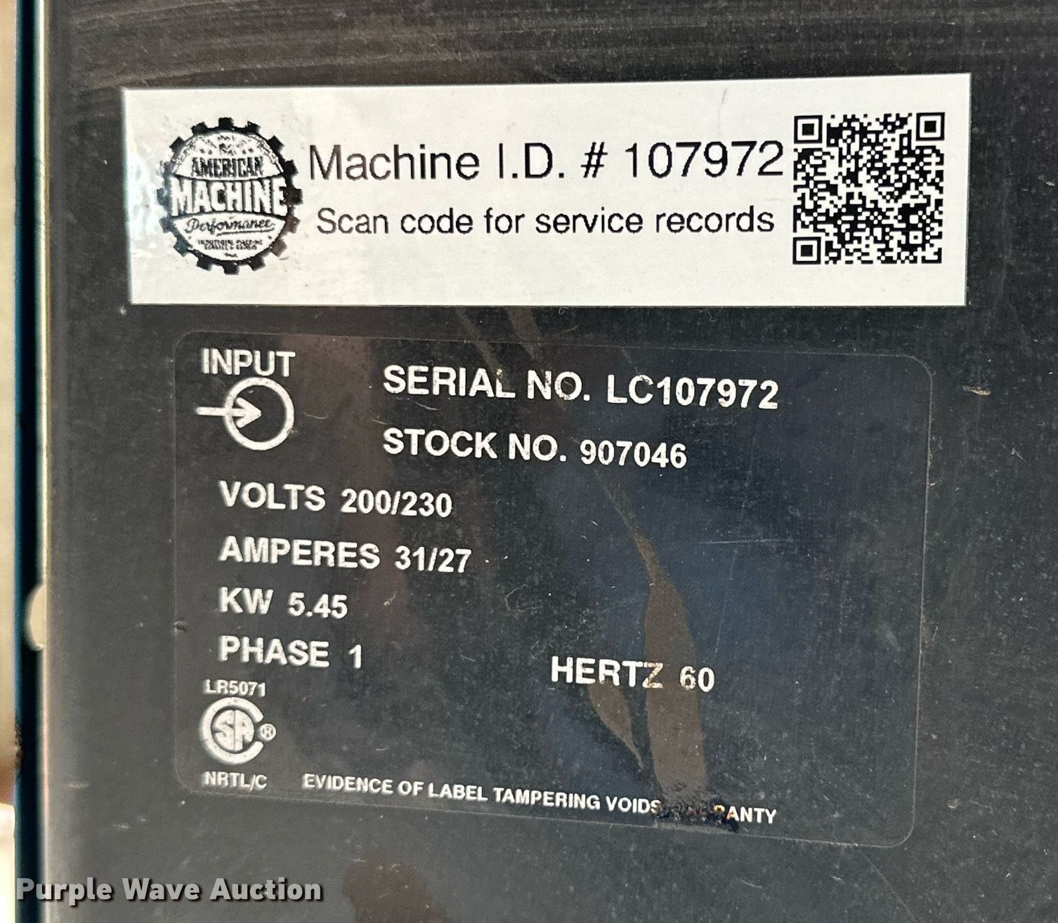 Miller 210 welder. Serial: LC107972. Electric Motor Volts: 200/230, Phase: Single. Features Welder Capabilities: Wire, MIG. Notes Unknown operating condition. 11380 North 2440 Road. Colony, OK 73021