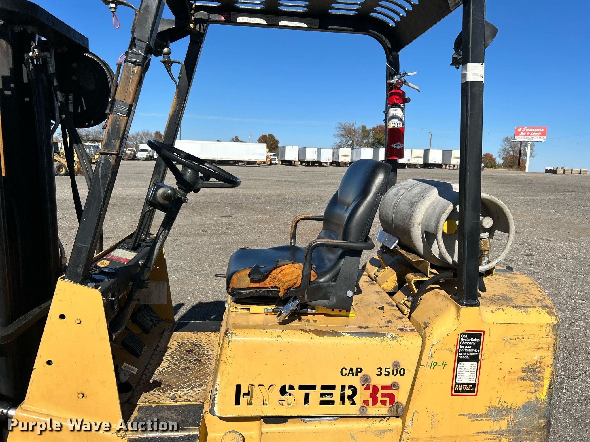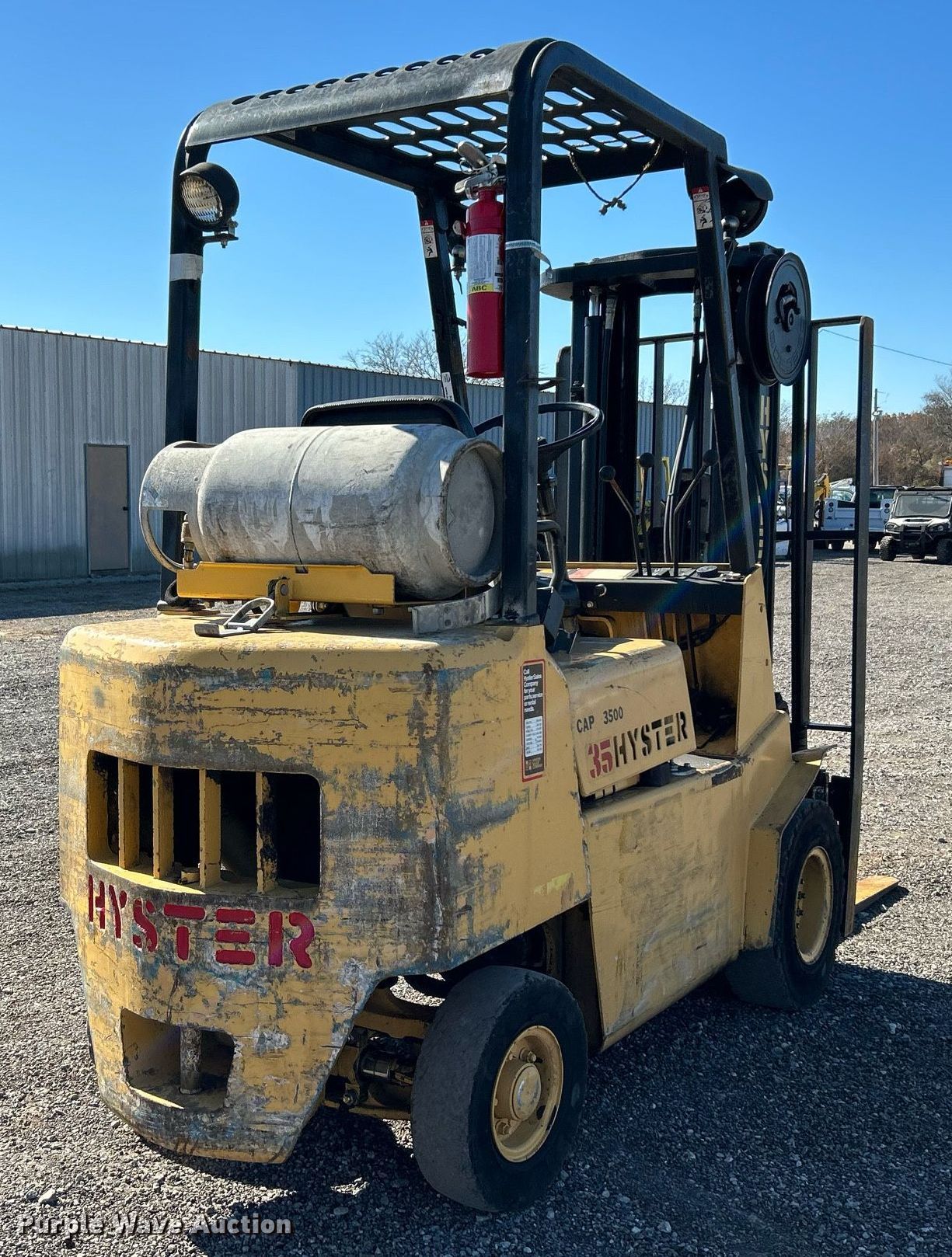 Purple Wave is selling a used Warehouse Forklift in Oklahoma. This item is a Hyster H35XL forklift with the following: Hours: 495 on meter, Serial: C001B07908K