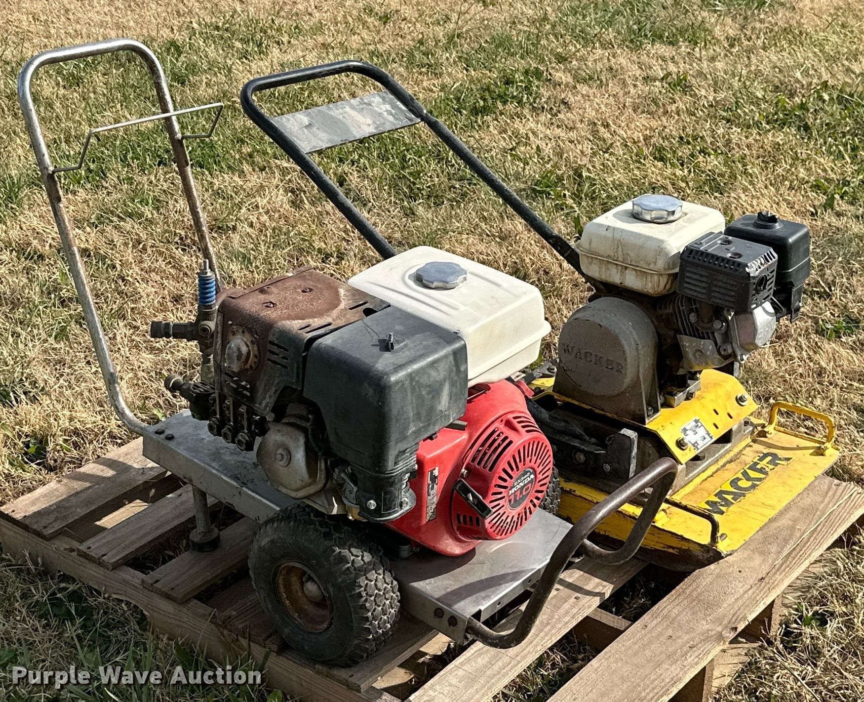 Purple Wave is selling a used Tools in Kansas. This item is a Tools with the following: Wacker plate compactor, 24" L x 18" W, Honda GX160 single cylinder gas engine, HP: 5,, Landa pressure washer, Honda GX340 single cylinder gas engine, HP: 11, Non-operational unit, Parts only