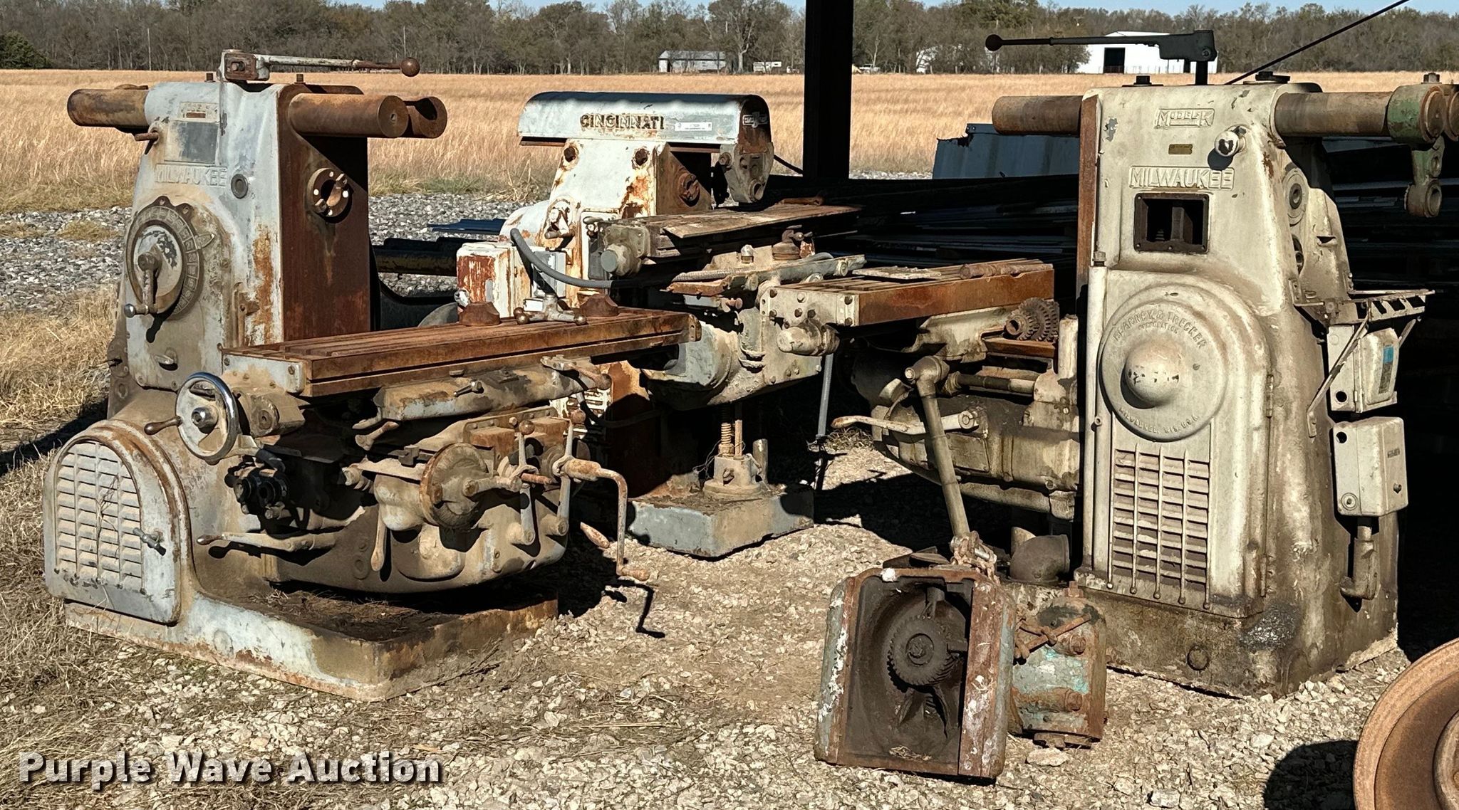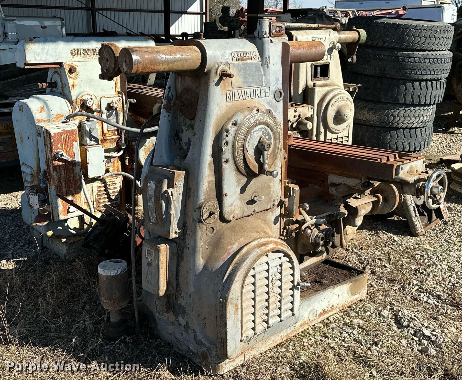 Purple Wave is selling a used Machine Shop Tools and Equip. in Kansas. This item is a (3) milling machines with the following: (2) Milwaukee K horizontal milling machines, Phase: Three, Cincinnati horizontal milling machine, Phase: Three