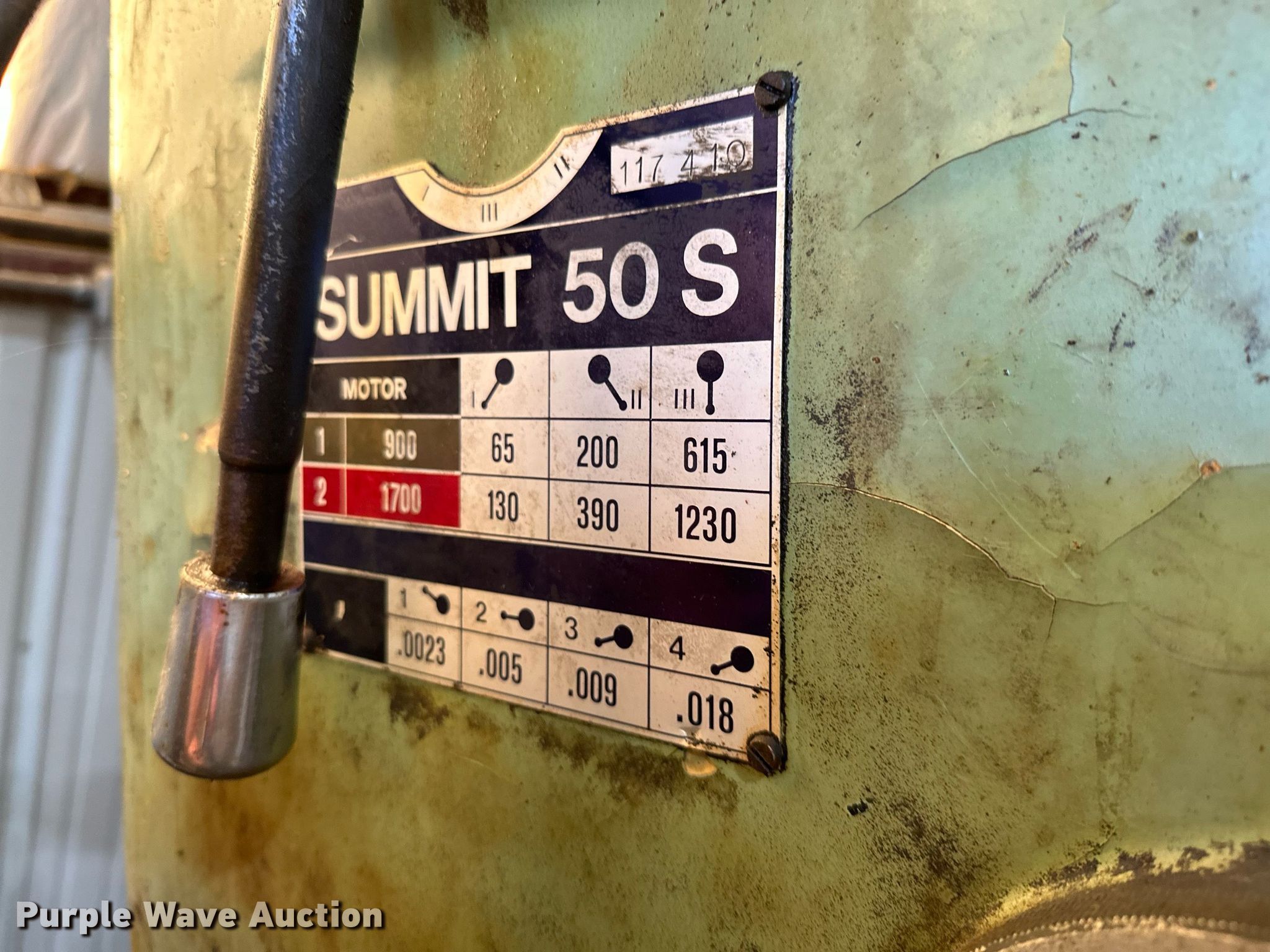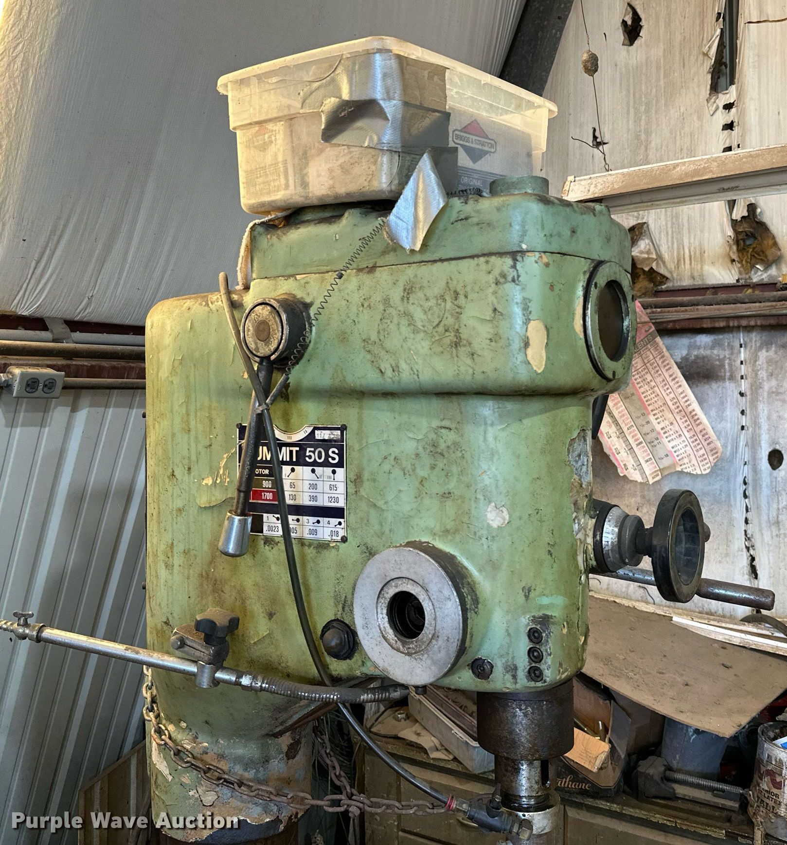 Purple Wave is selling a used Machine Shop Tools and Equip. in Kansas. This item is a Tools with the following: Summit 50S drill press, Phase: Three, Clausing 6913 lathe, Phase: Three
