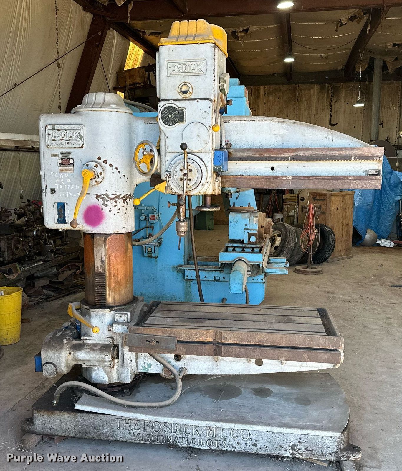 This Fosdick radial arm drill press will sell to the highest bidder regardless of price.