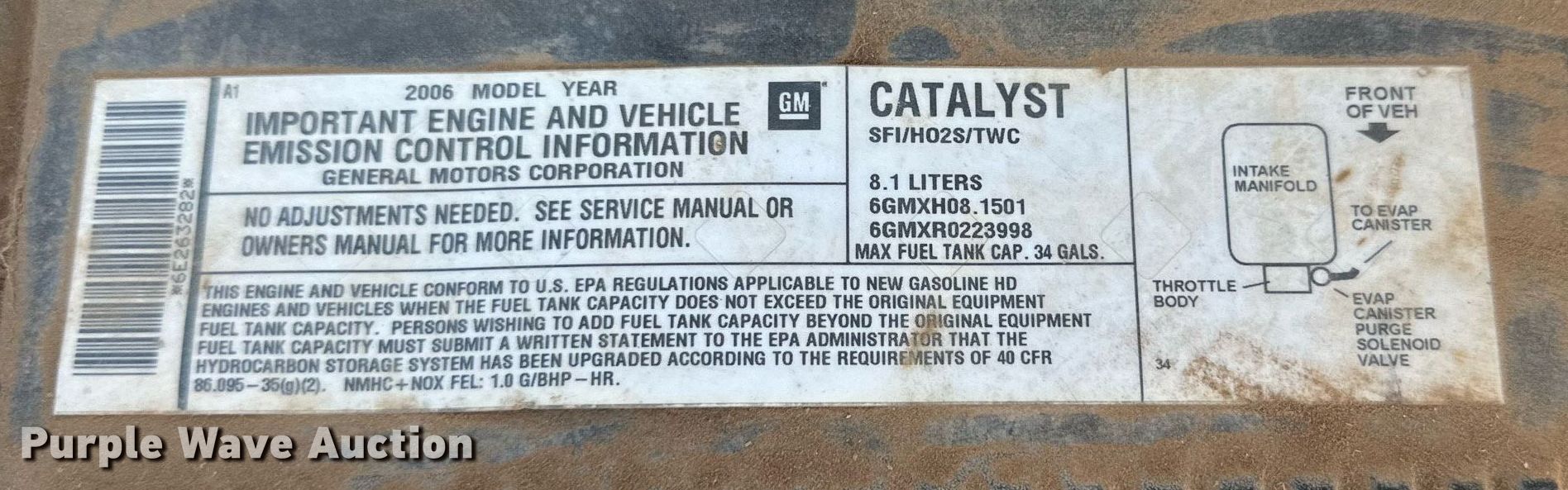 2006 Chevrolet Silverado 3500 Ext. Cab pickup truck. Miles: 248,981 on odometer, VIN: 1GCHK39G86E263282. Engine Displacement: 8.1L V8 OHV, Cylinders: 8, Fuel type: Gas. Transmission Automatic, Four wheel drive. Interior Cruise control. Features Hitch: Gooseneck. Tires Size: 245/75R16. Notes Wiring issues, will not stay running, Non-operational unit. Texas title. Title distribution may be delayed up to 14 days from verification of funds. Caprock Paving LLC. 2100 FM 1914 B. Plainview, TX 79072