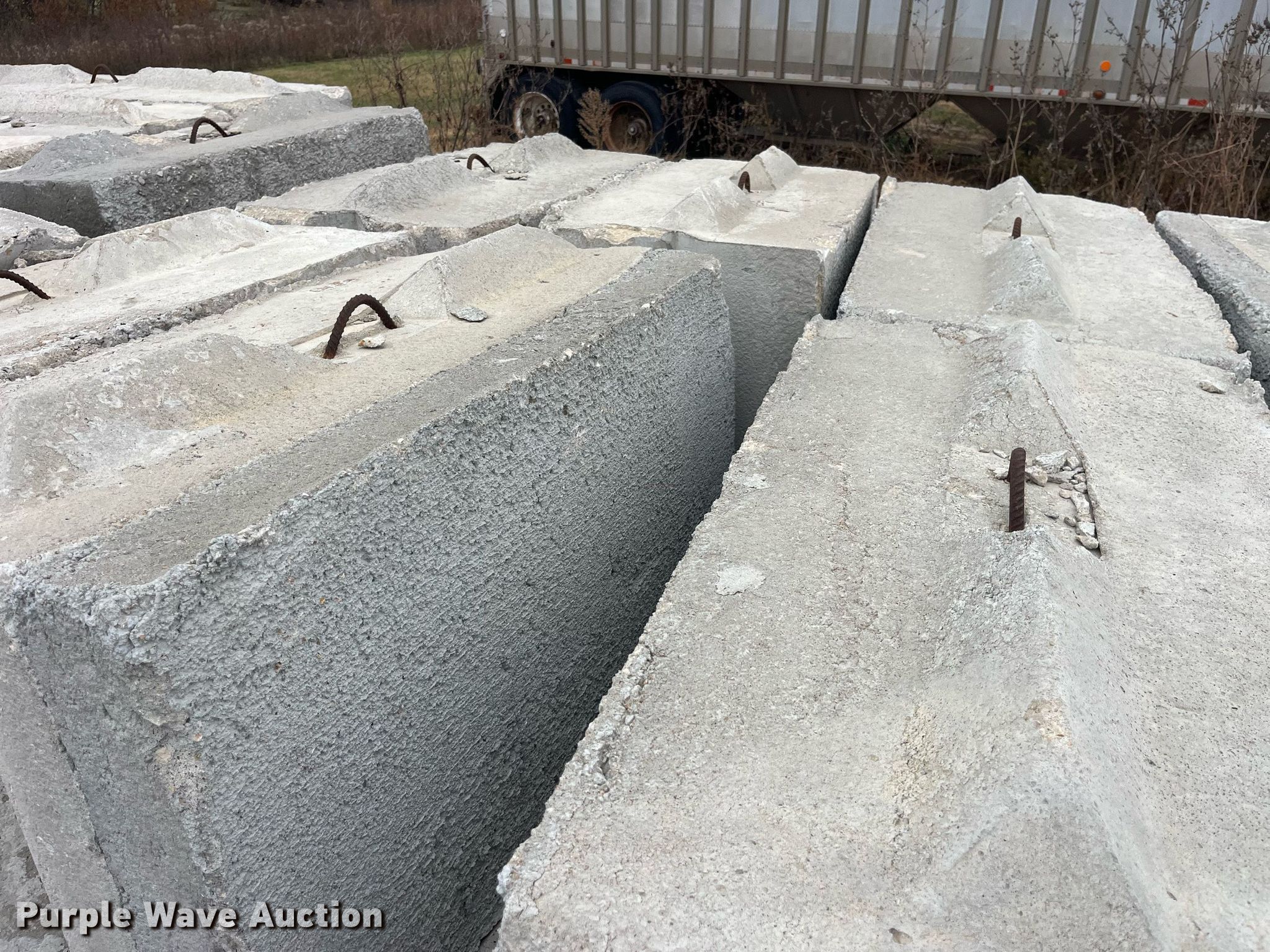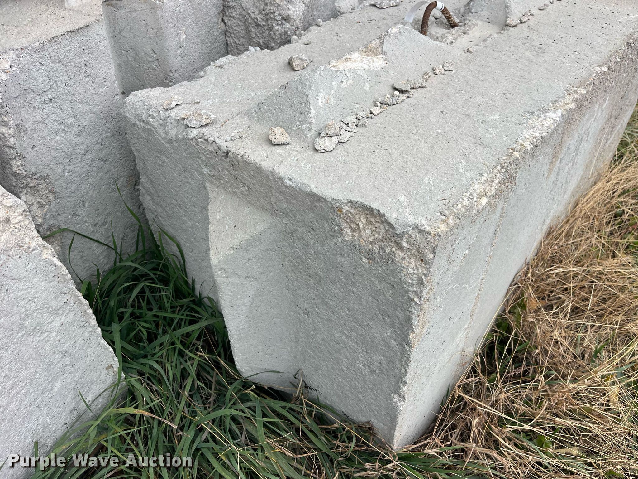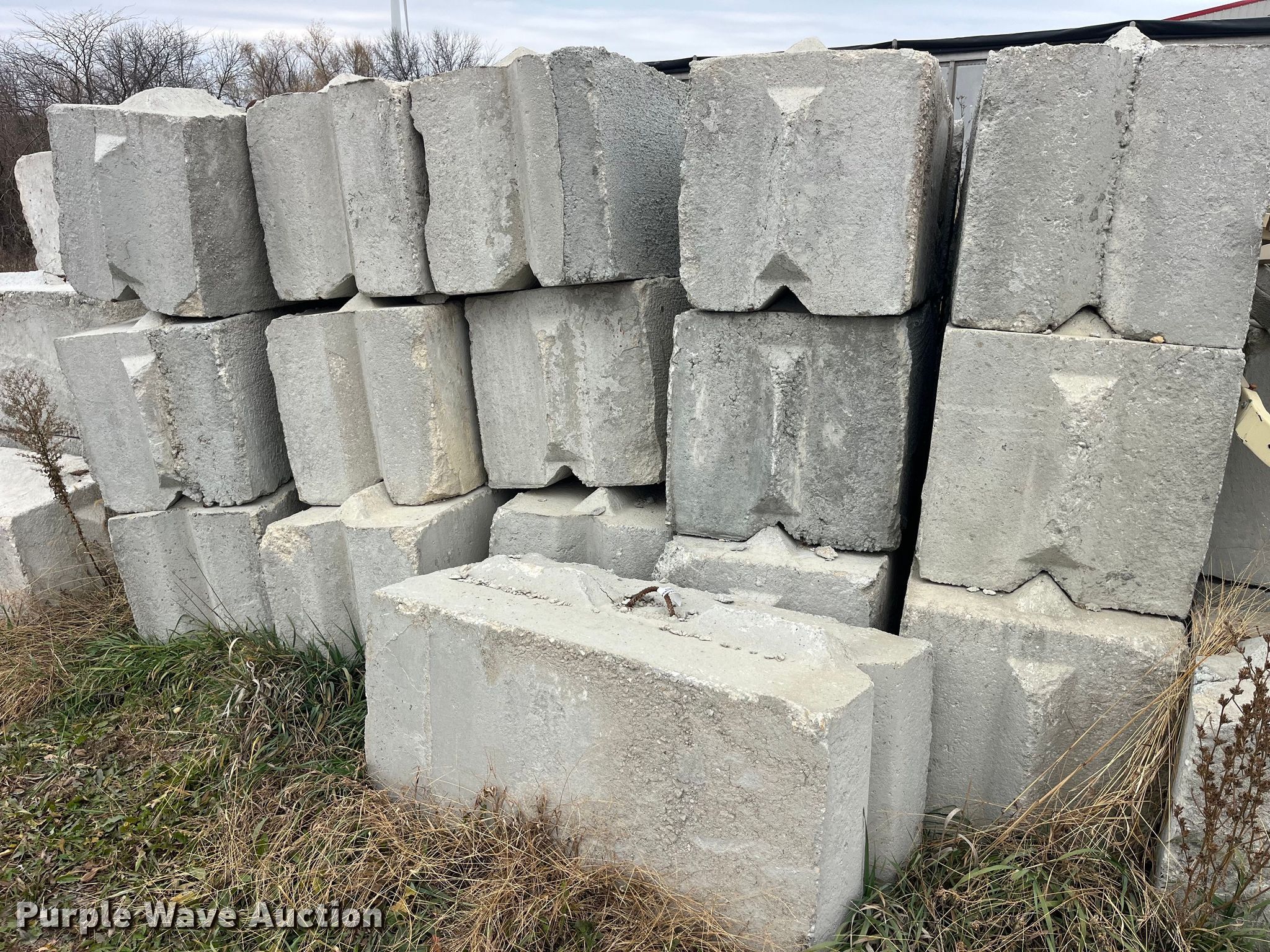 Purple Wave is selling a used Building Materials in Missouri. This item is a (24) Concrete edge bunker block with the following: 2' x 2' x 4', Rebar lift eyelet, Approximately 2,100 lbs per block