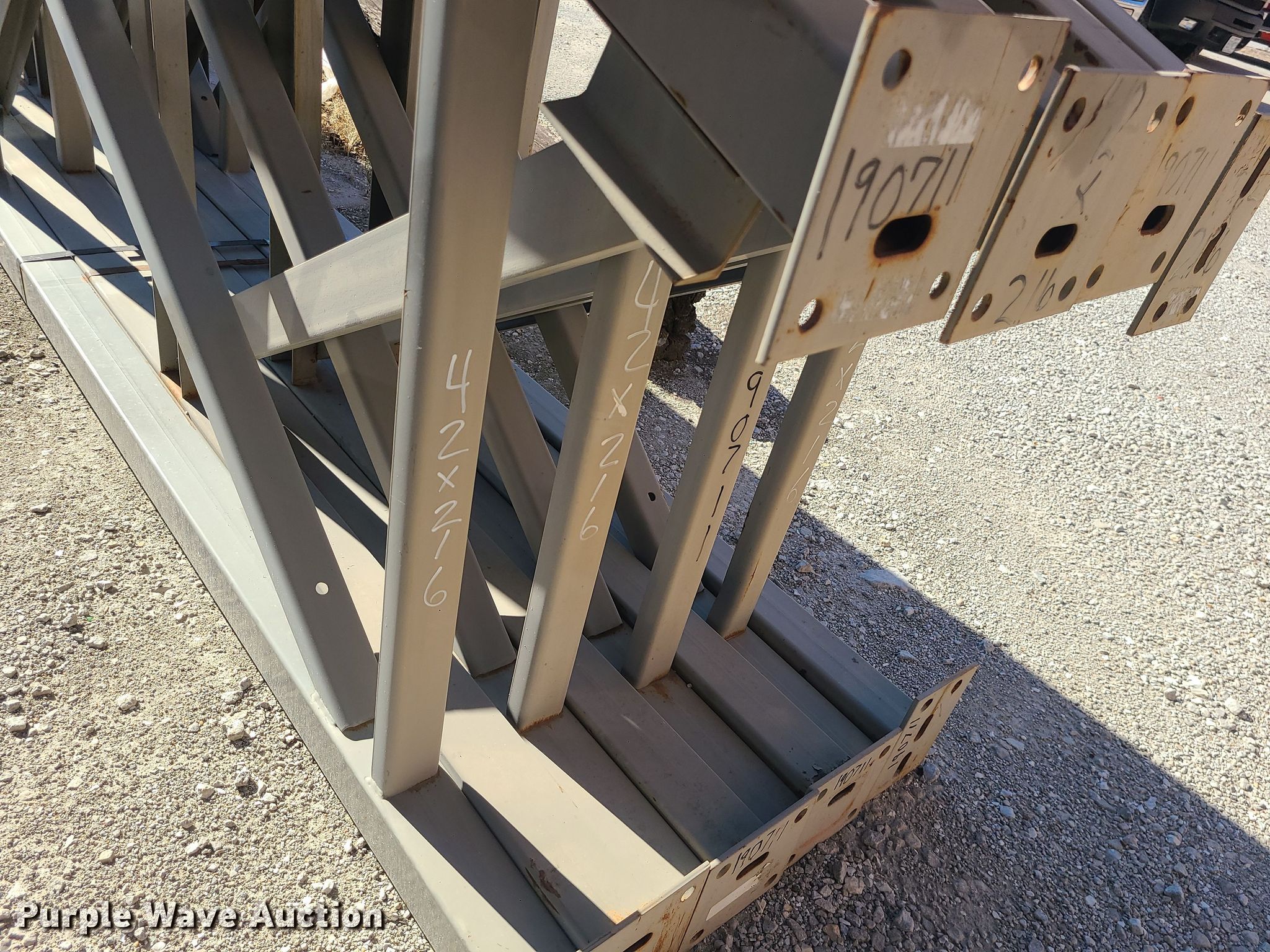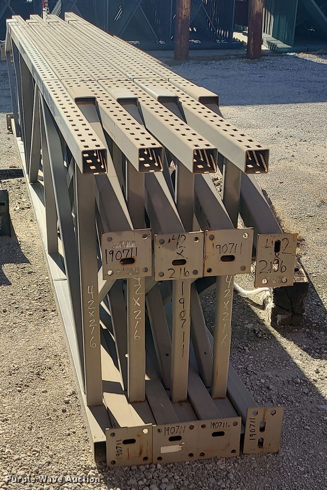 Purple Wave is selling a used Pallet Racking in Missouri. This item is a Pallet racking with the following: Unit #: 864968, (8) 42" x 216" uprights, (42) 96" cross beams