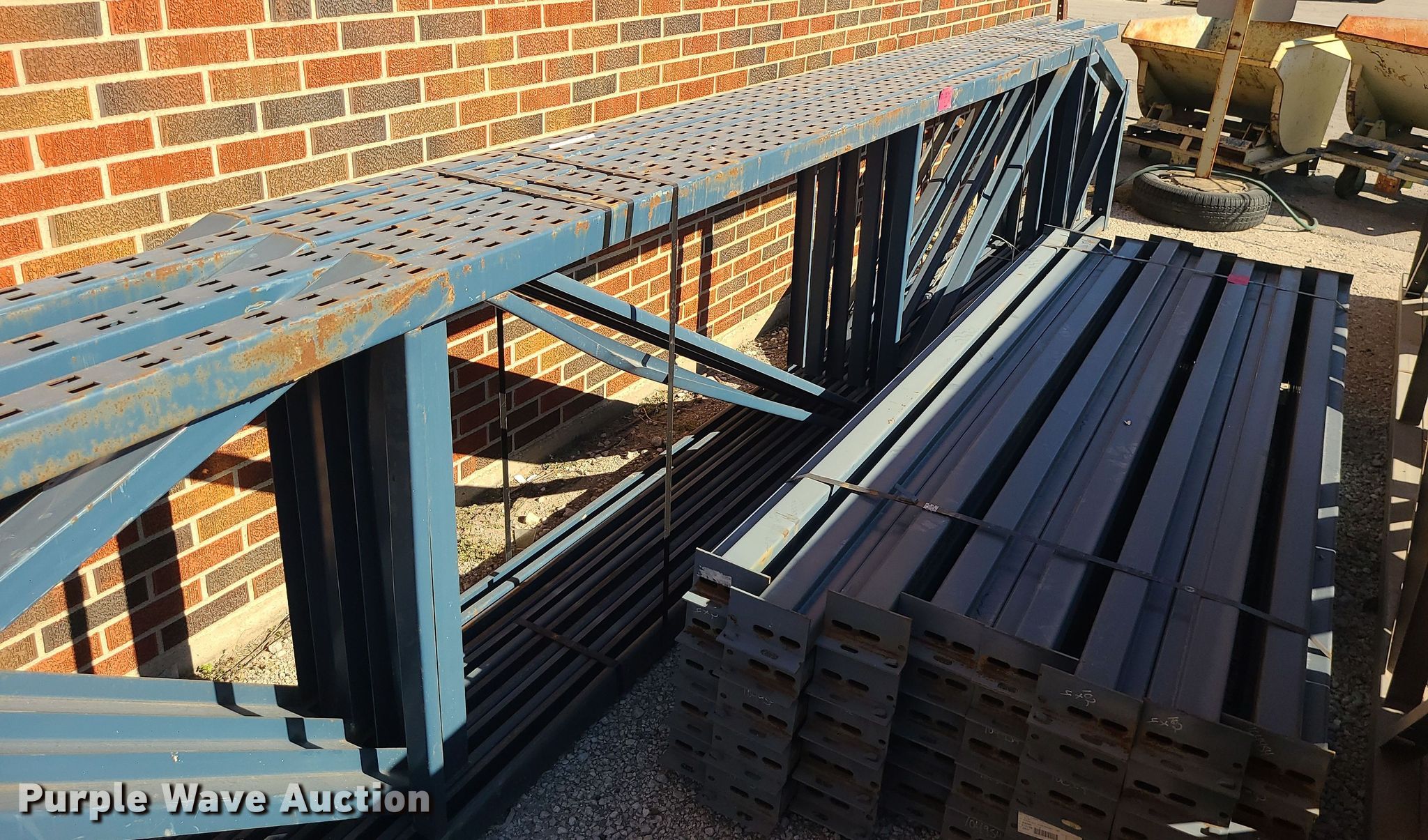 Purple Wave is selling a used Pallet Racking in Missouri. This item is a Pallet racking with the following: Unit #: 864963, (6) 42" x 116" to 222" uprights, (40) 102" cross beams