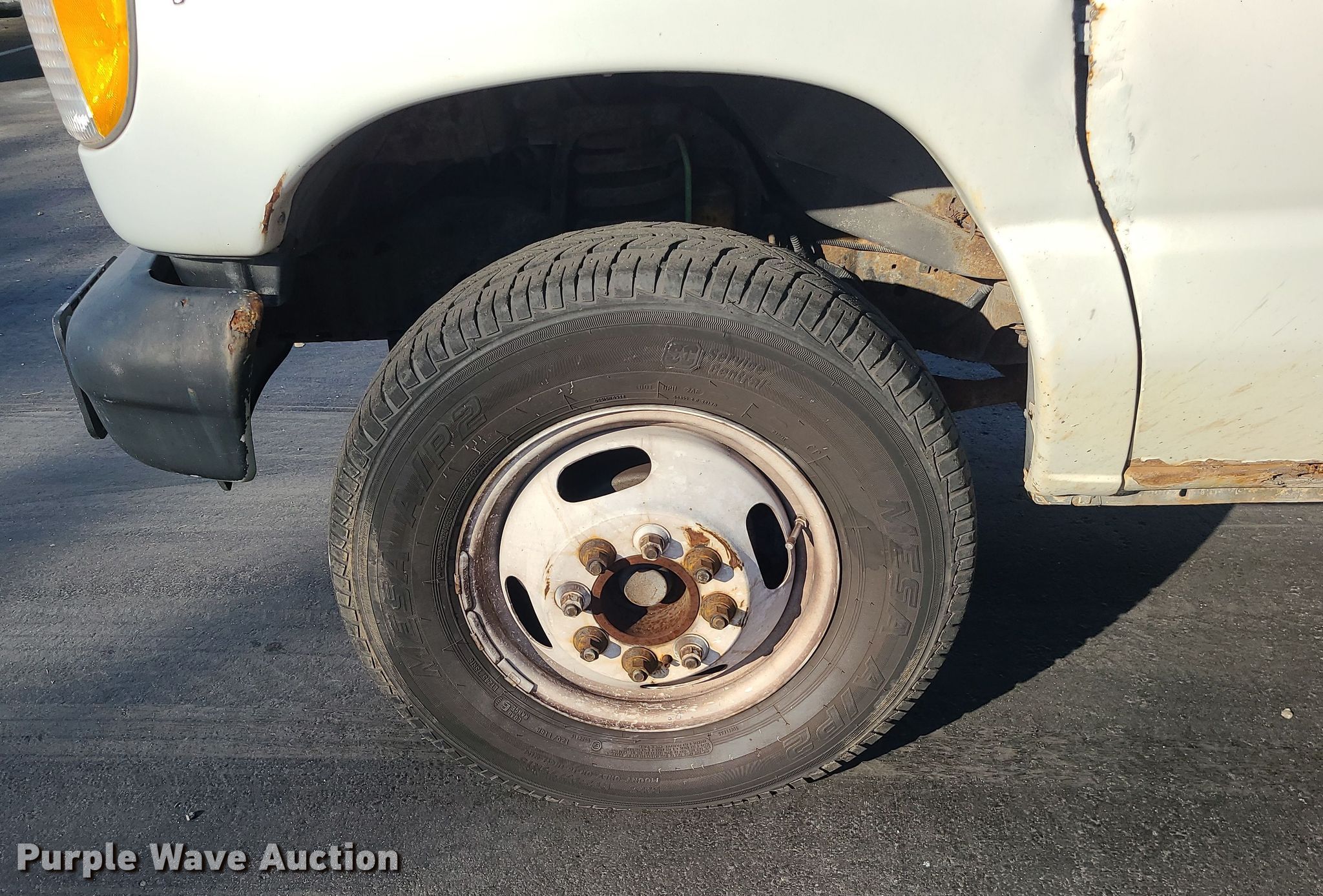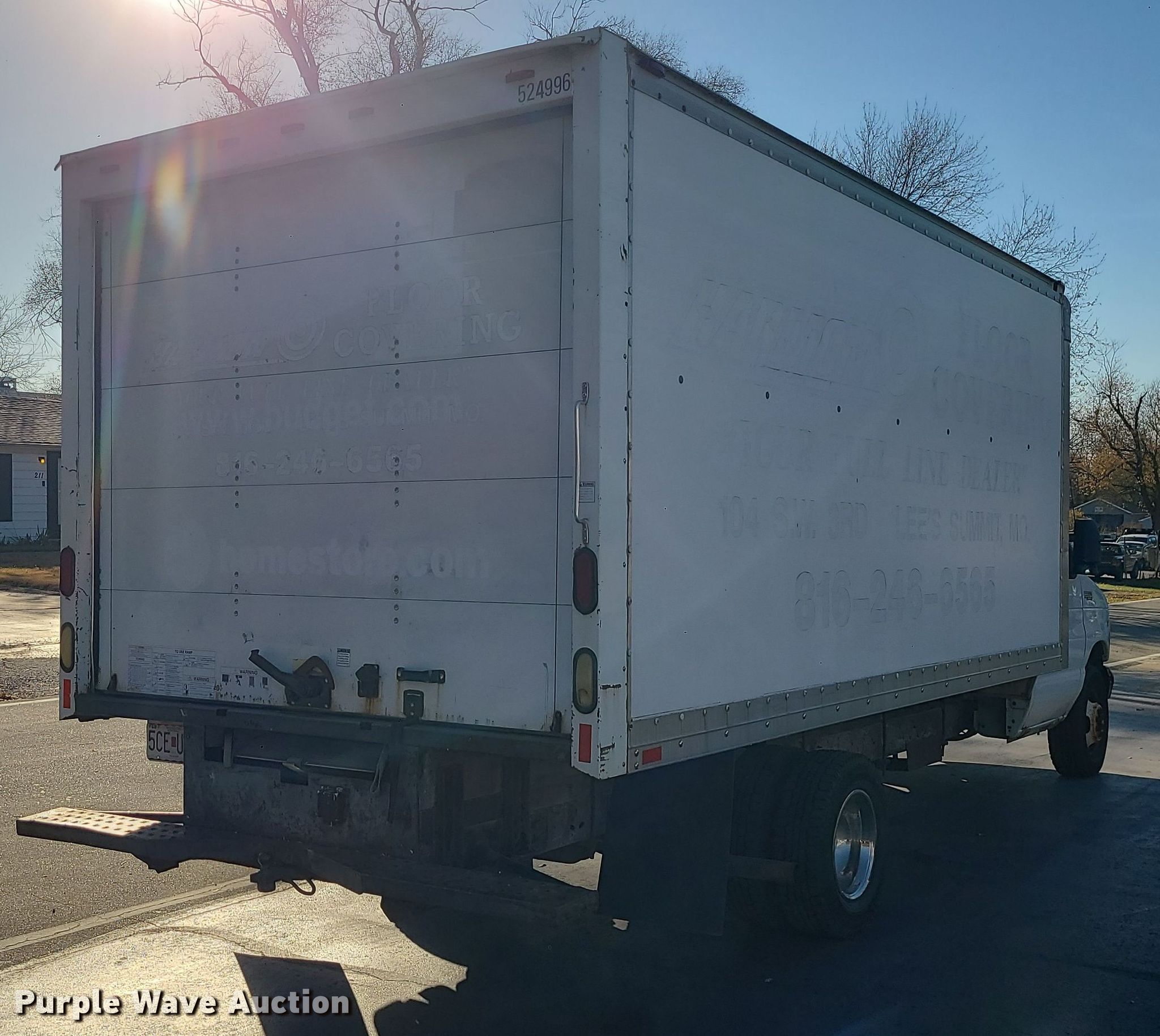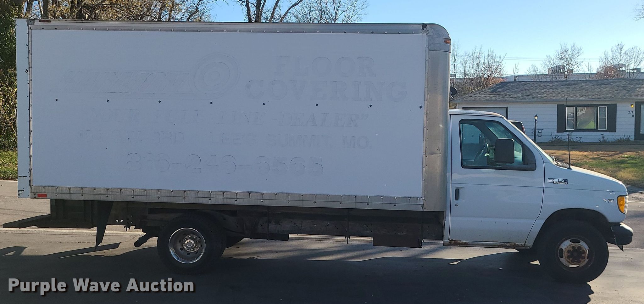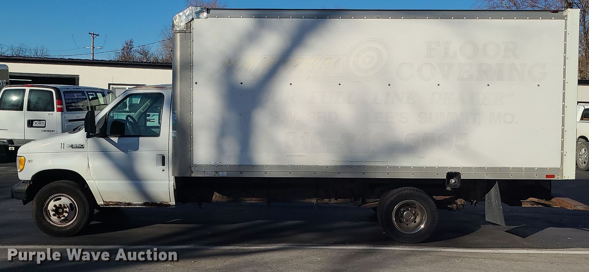 2002 Ford E350 Super Duty box truck. Miles: 185,789 on odometer, VIN: 1FDWE35L22HB17613. Engine Displacement: 5.4L , Cylinders: 8, Fuel type: Gas. Transmission Automatic. Chassis Axles: Single, Suspension: Spring, Brakes: Hydraulic, GVWR: 11,500 lbs, Wheelbase: 176". Interior Heat. Features Box bed Morgan PVFD07916096B02, Serial: MPA02PVPA60773754, 16' L x 96" W, Floor: Wood. Tires Size: 245/75R16. Missouri title. Title distribution may be delayed up to 14 days from verification of funds. Harmon Floor Covering. 1706 se willow. Lee's Summit, MO 64081