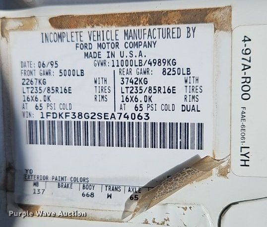 Purple Wave is selling a used 3/4 or 1 Ton Pickup or Van in Kansas. This item is a 1995 Ford F350 flatbed pickup truck with the following: Miles: 161,270 on odometer, VIN: 1FDKF38G2SEA74063