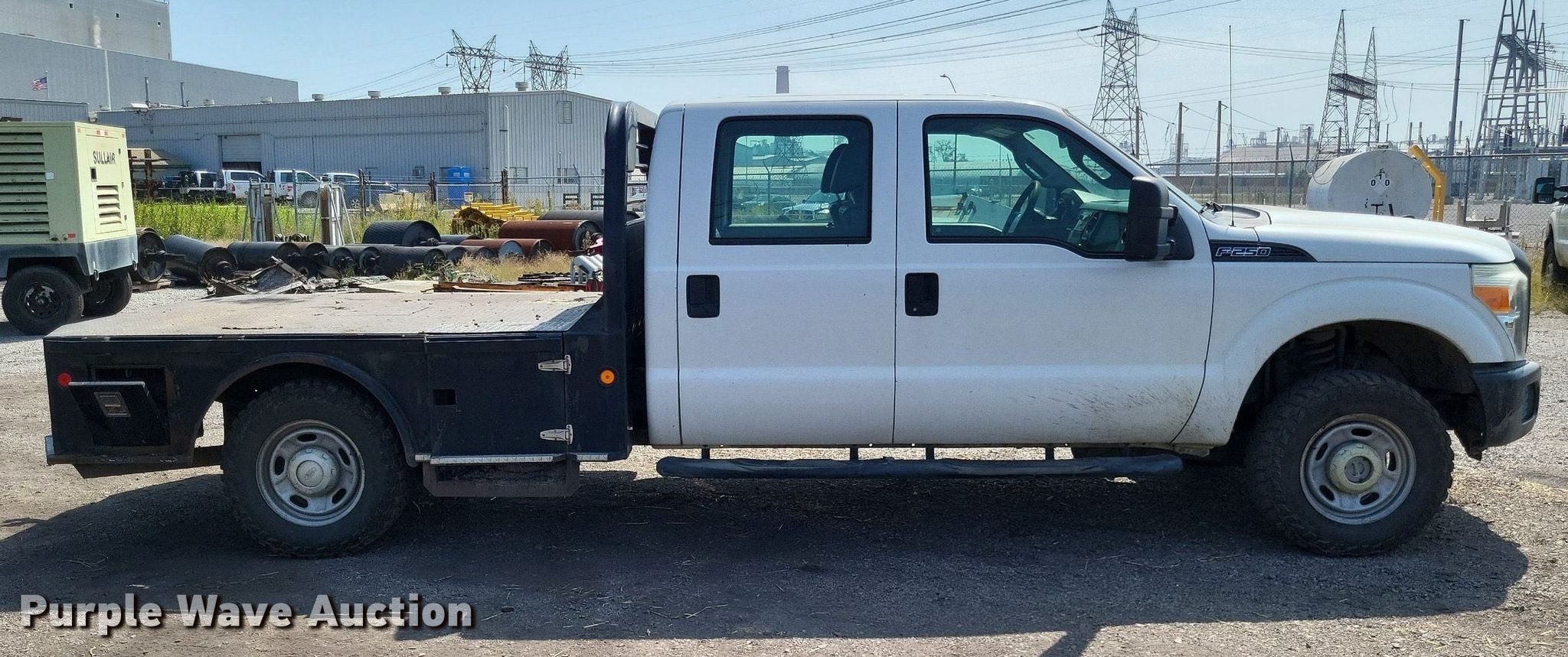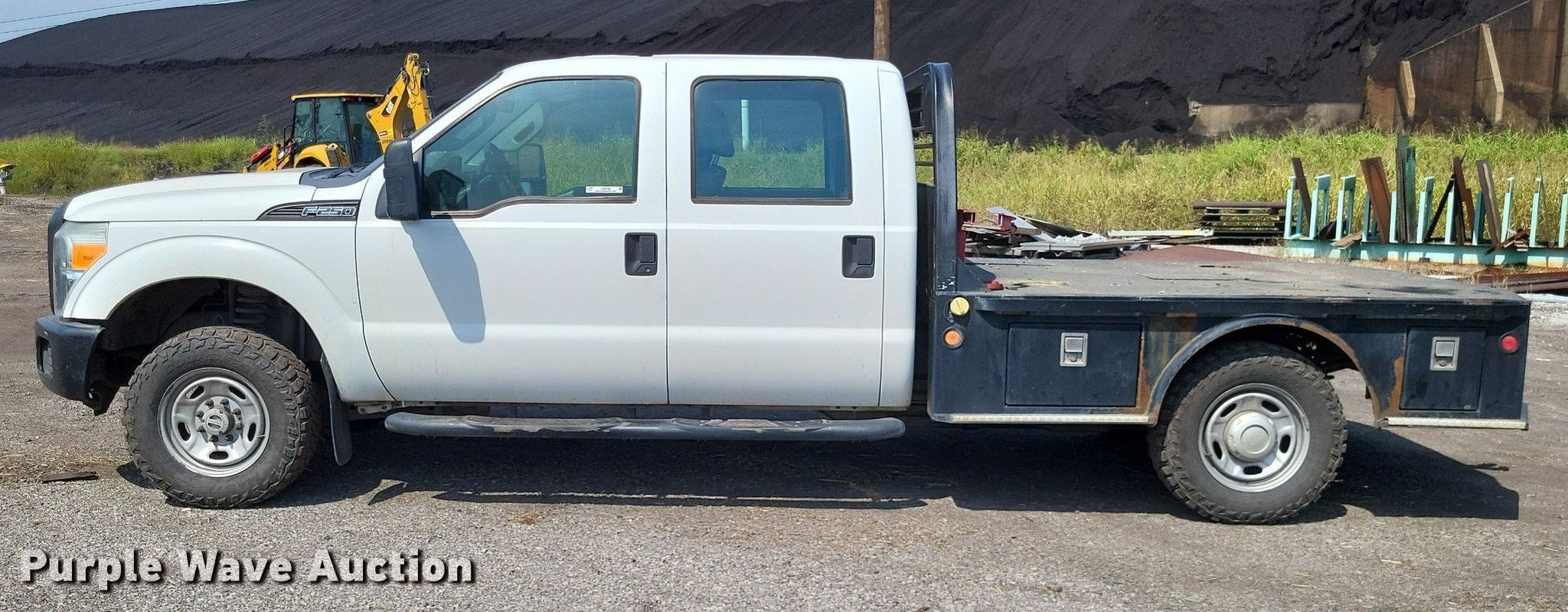This 2011 Ford F250 Super Duty Crew Cab flatbed pickup truck will sell to the highest bidder regardless of price.