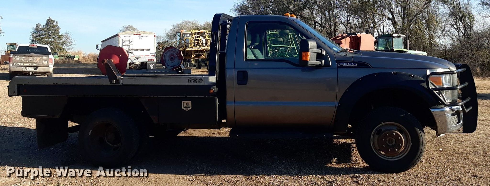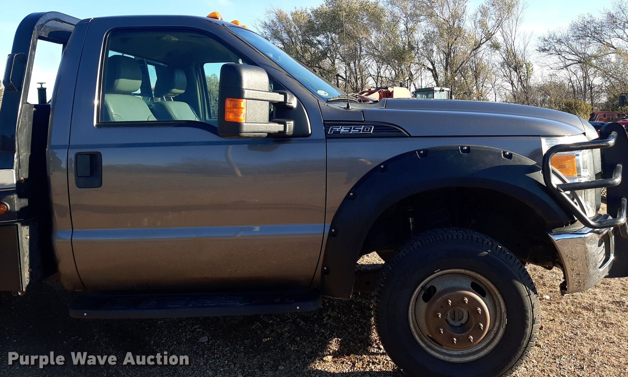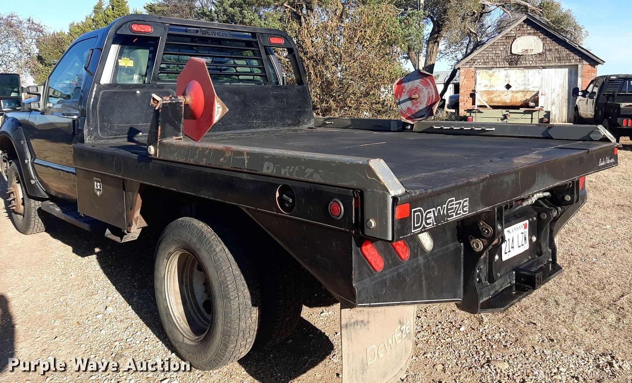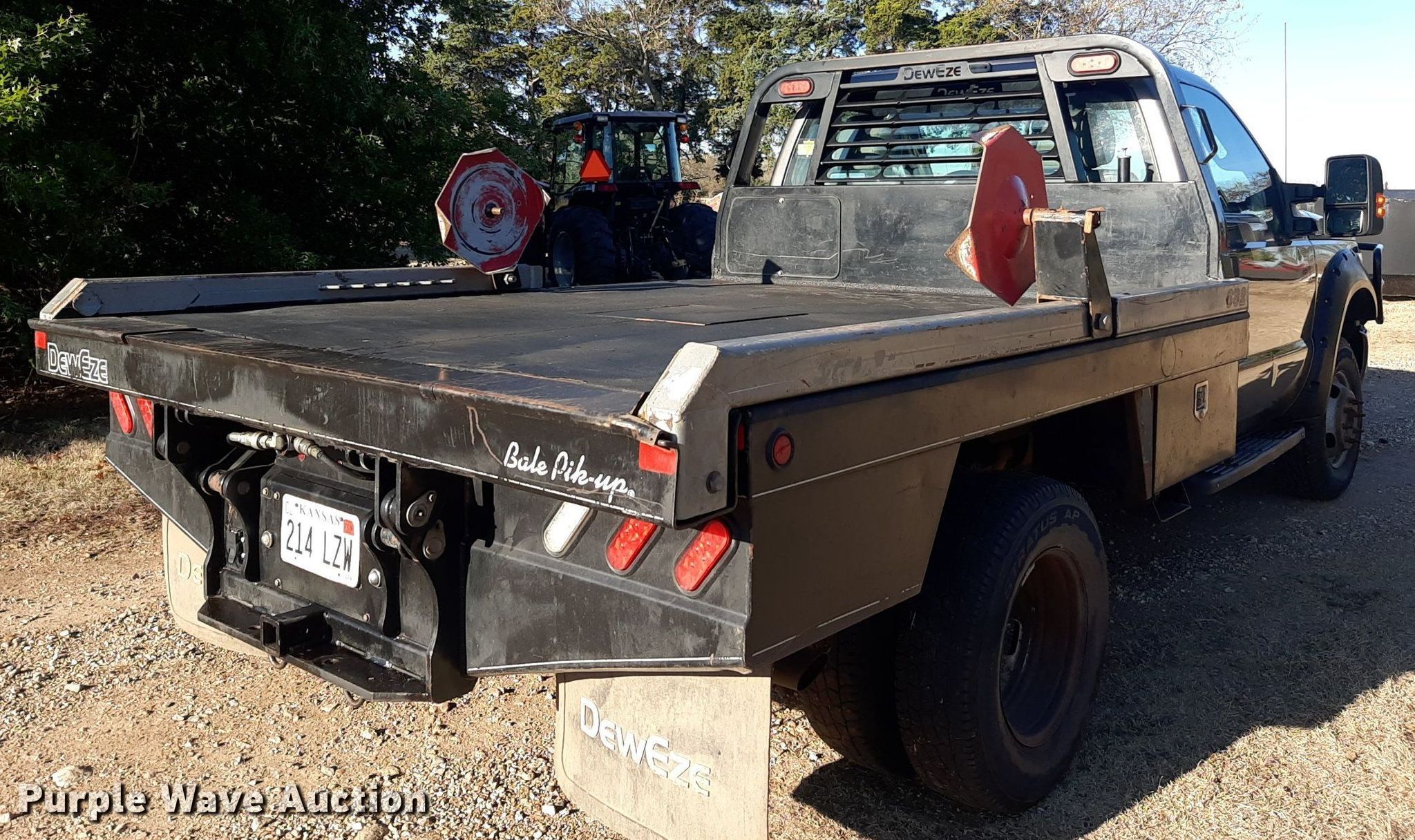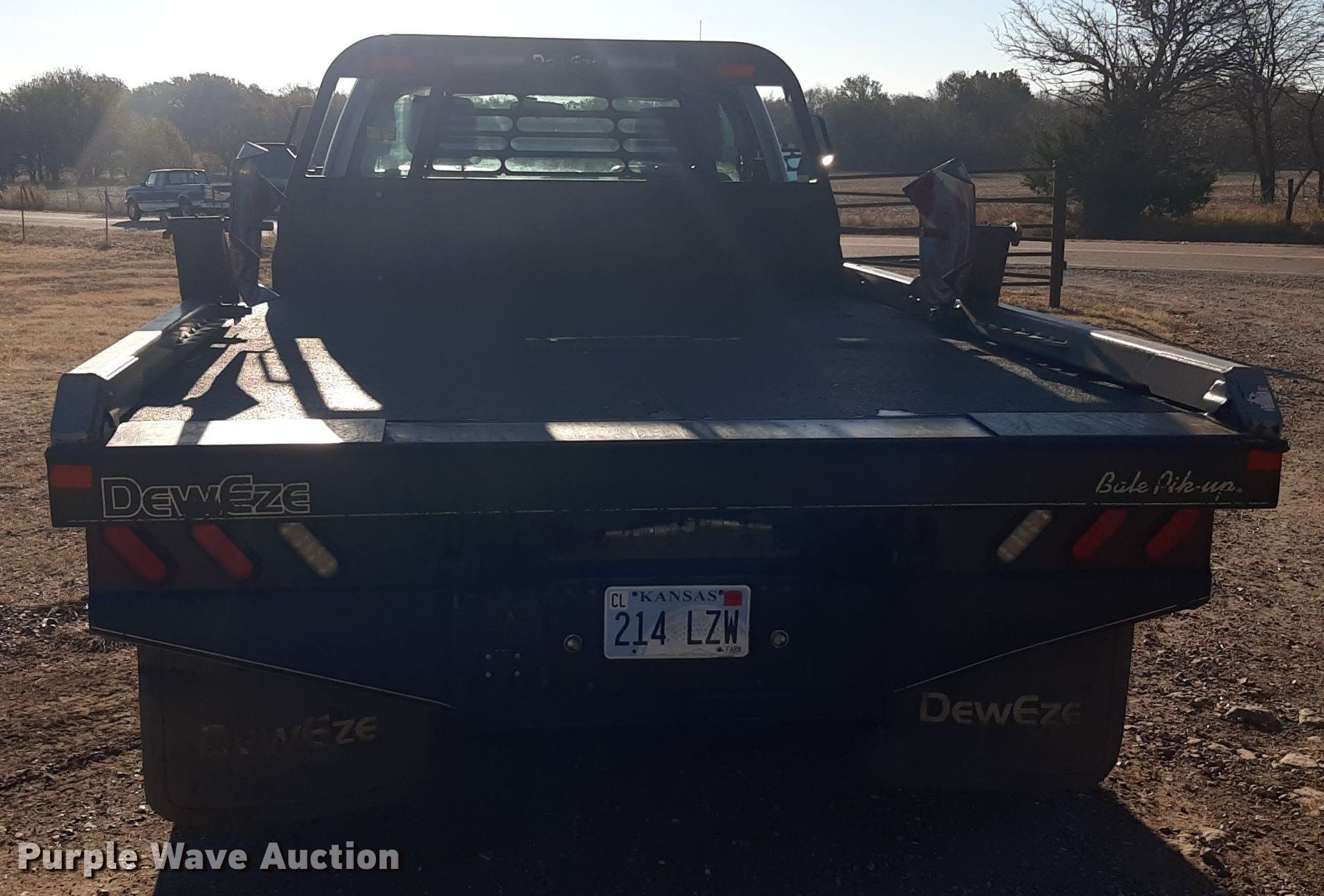 2014 Ford F350 Super Duty bale bed pickup truck. Miles: 90,304 on odometer, VIN: 1FDRF3H64EEA21214. Engine Displacement: 6.2L V8 OHV, Cylinders: 8, Fuel type: Gas. Transmission Automatic, Four wheel drive. Interior AC, Heat, Heated mirrors, Power windows, Power locks, Cruise control. Features Hydraulic bale bed 9' L x 93" W, Hitch: Fifth wheel plate. Tires Size: 235/80R17. Notes Dash warning indicator: Airbag. Kansas title. Title distribution may be delayed up to 14 days from verification of funds. SJJ Wakefield Ranch. Atlanta, KS 67008