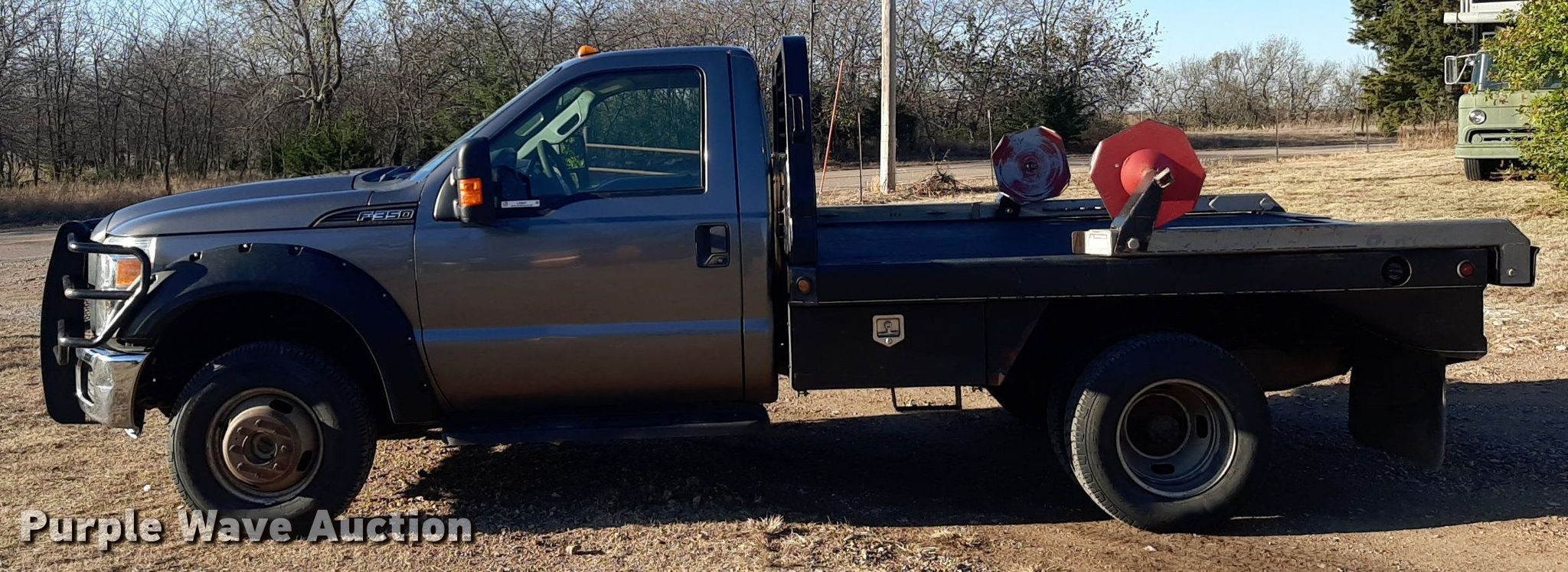 This 2014 Ford F350 Super Duty bale bed pickup truck will sell to the highest bidder regardless of price.
