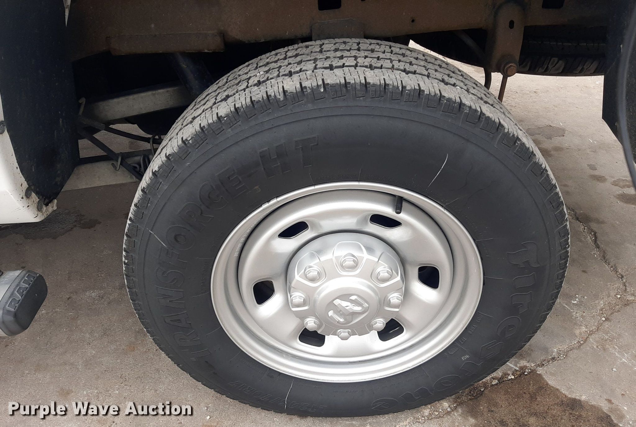 2014 Dodge Ram 2500HD Crew Cab pickup truck. Miles: 286,577 on odometer, VIN: 3C6UR5DJ3EG178003. Engine Displacement: 6.4L V8, Cylinders: 8, Fuel type: Gas. Transmission Automatic, Four wheel drive. Interior AC, Heat, Power windows, Power locks, Cruise control. Tires Size: 245/70R17. Notes Dash warning indicator: Check engine, TPMS. Kansas title. Title distribution may be delayed up to 14 days from verification of funds. Fairbank Equipment. 3700 West Jewell Street. Wichita, KS 67213