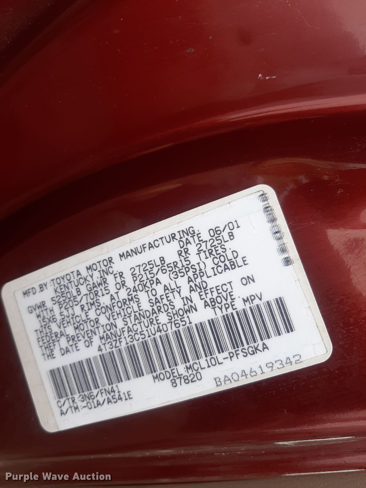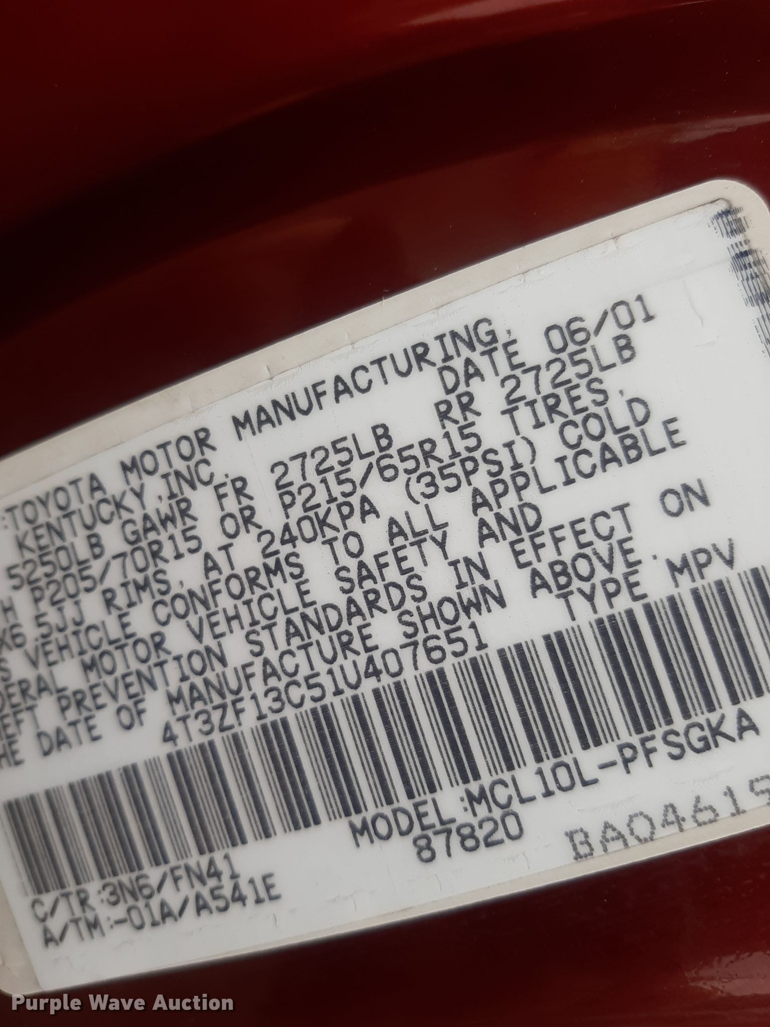 Purple Wave is selling a used Passenger Vehicle in Kansas. This item is a 2001 Toyota Sienna van with the following: Miles: 229,966 on odometer, VIN: 4T3ZF13C51U407651