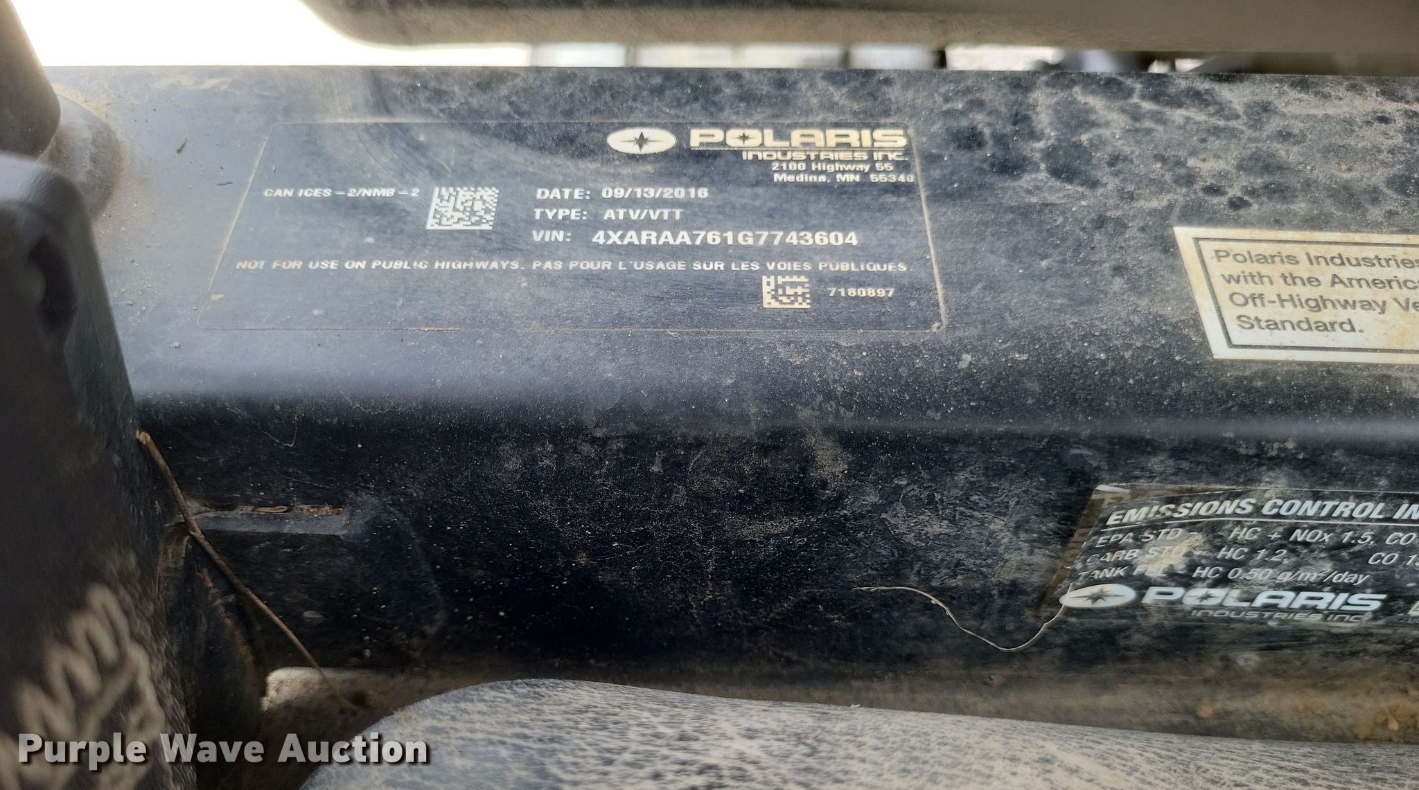 This 2016 Polaris Ranger 6x6 utility vehicle will sell to the highest bidder regardless of price.