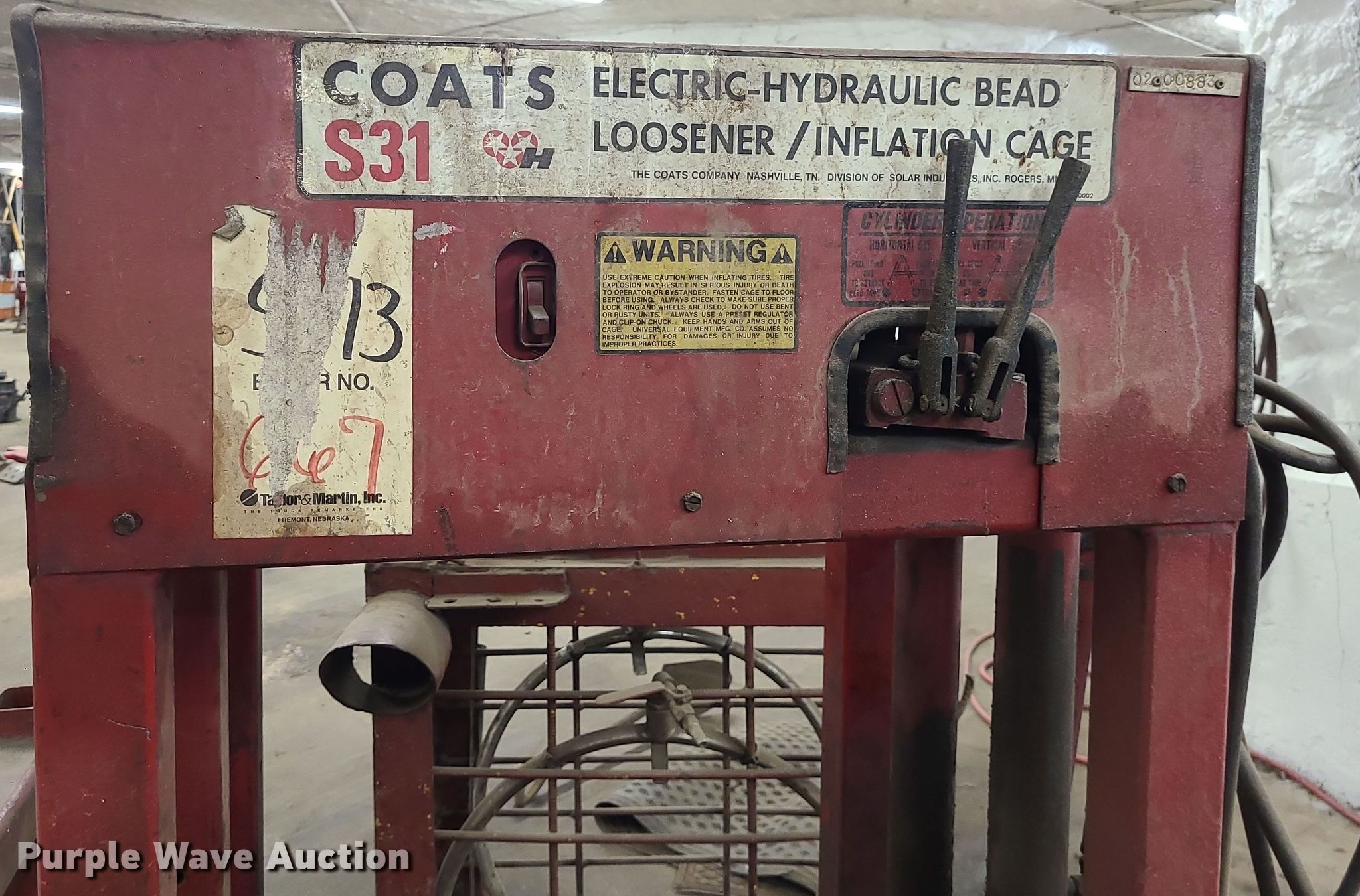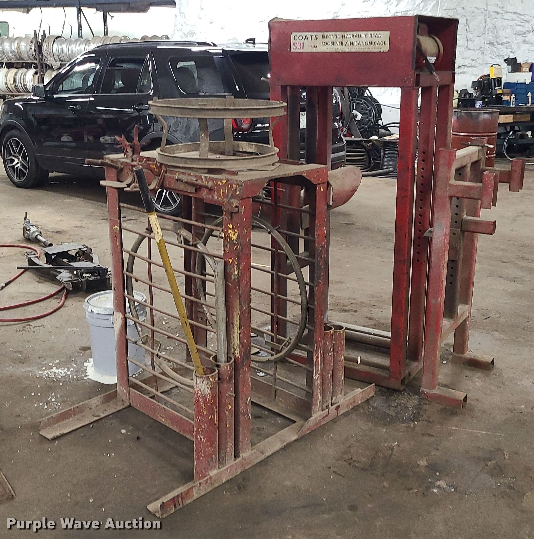 Purple Wave is selling a used Machine Shop Tools and Equip. in Missouri. This item is a (2) tire machines with the following: Coats S31 electric-hydraulic bead loosener, Tire safety cage