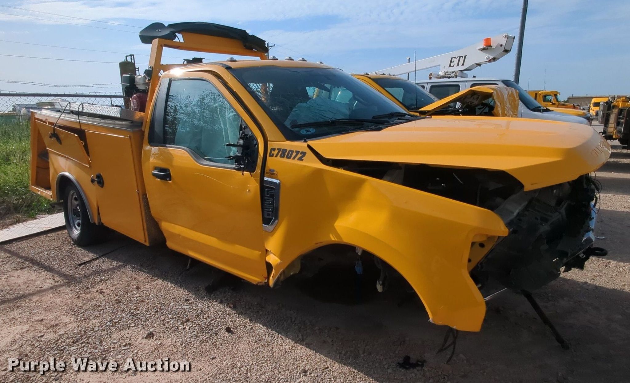 This 2022 Ford F350 Super Duty utility bed pickup truck will sell to the highest bidder regardless of price.