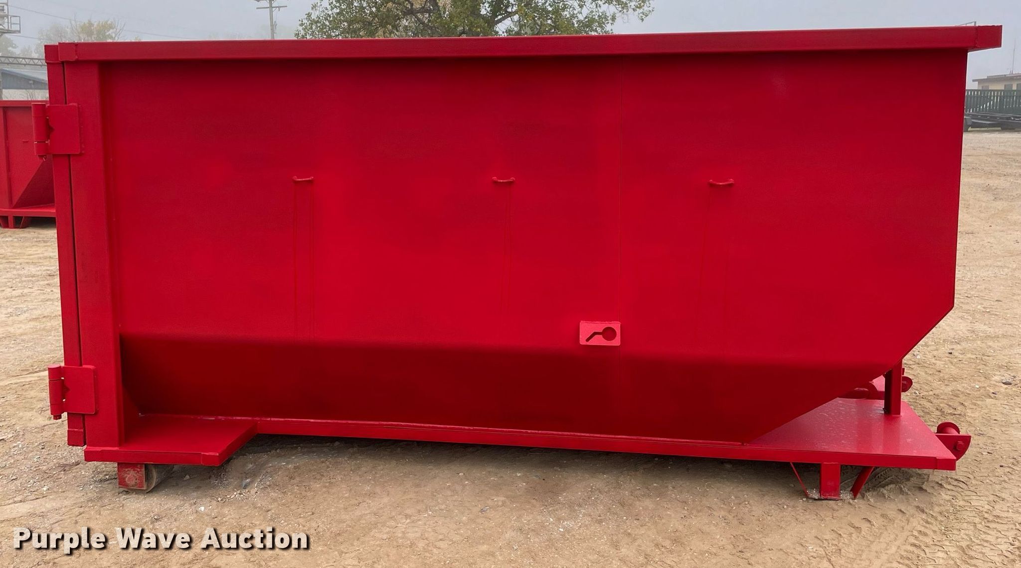 This Okie Fabrication roll-off container will sell to the highest bidder regardless of price.