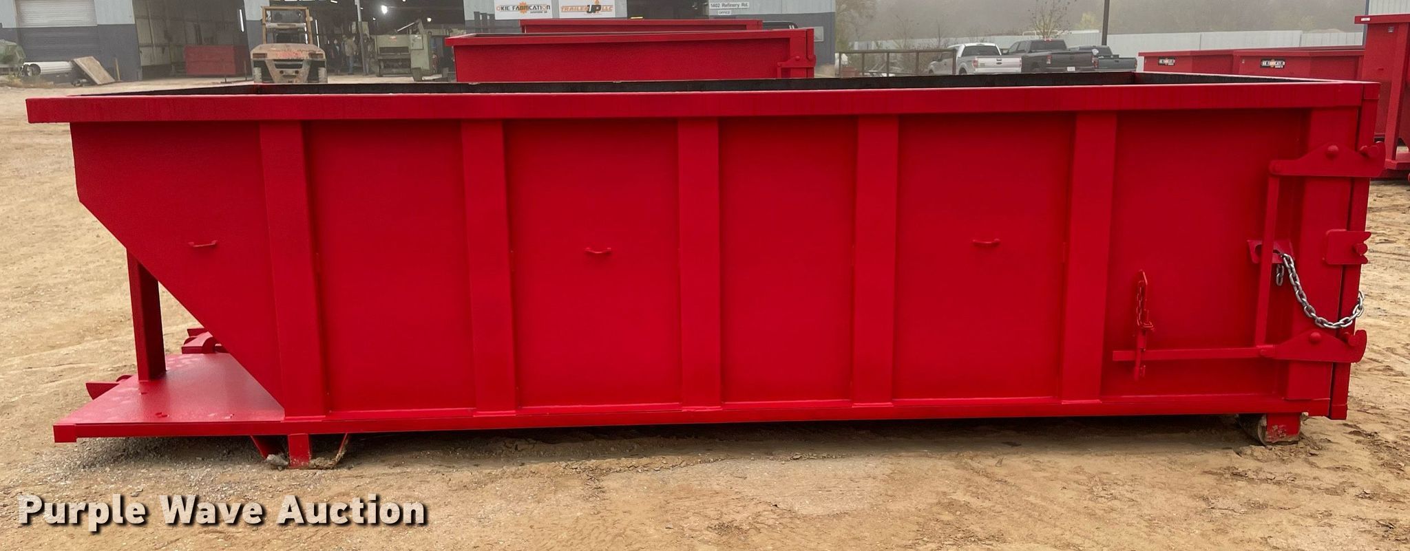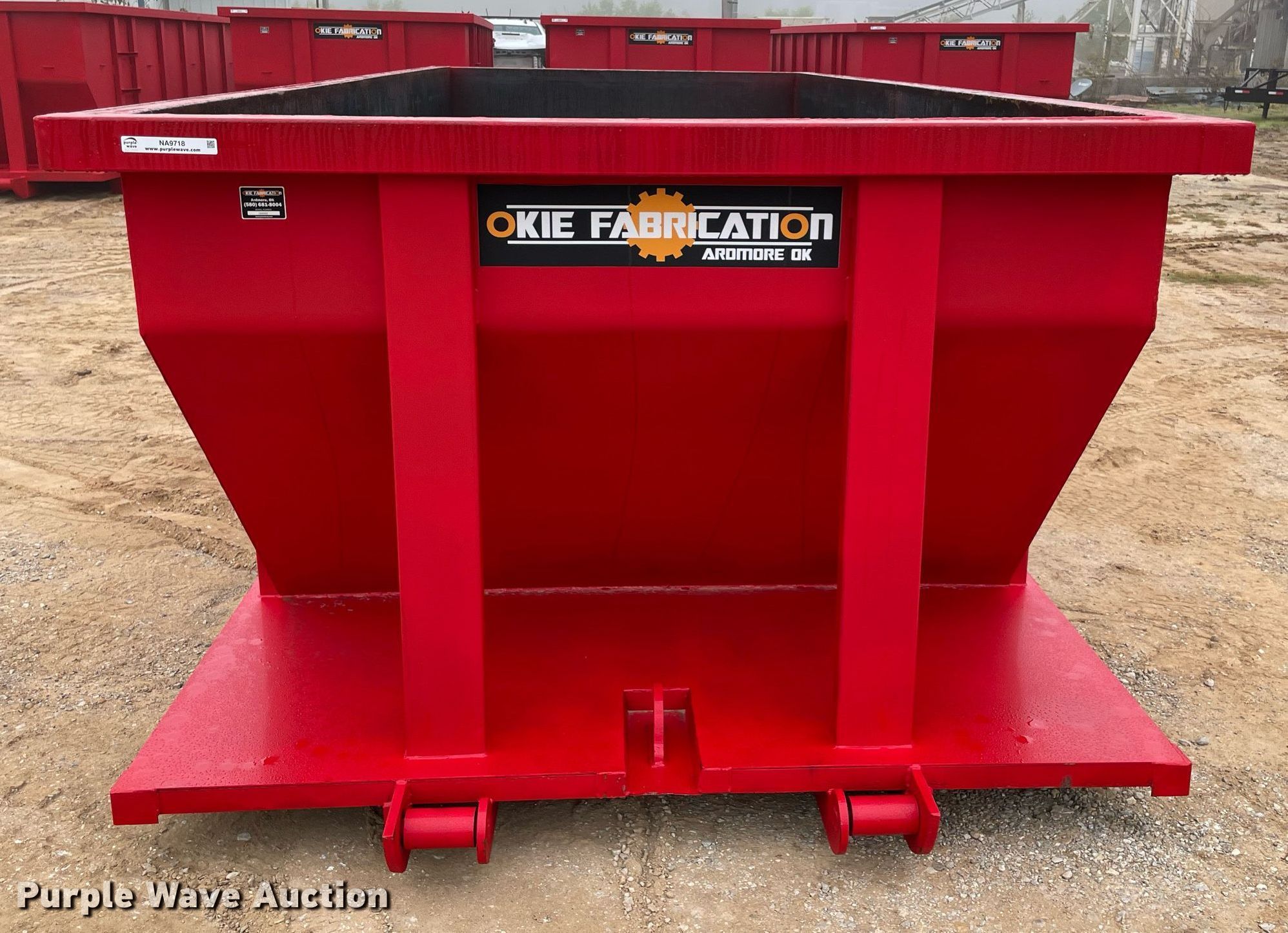 This Okie Fabrication roll-off container will sell to the highest bidder regardless of price.