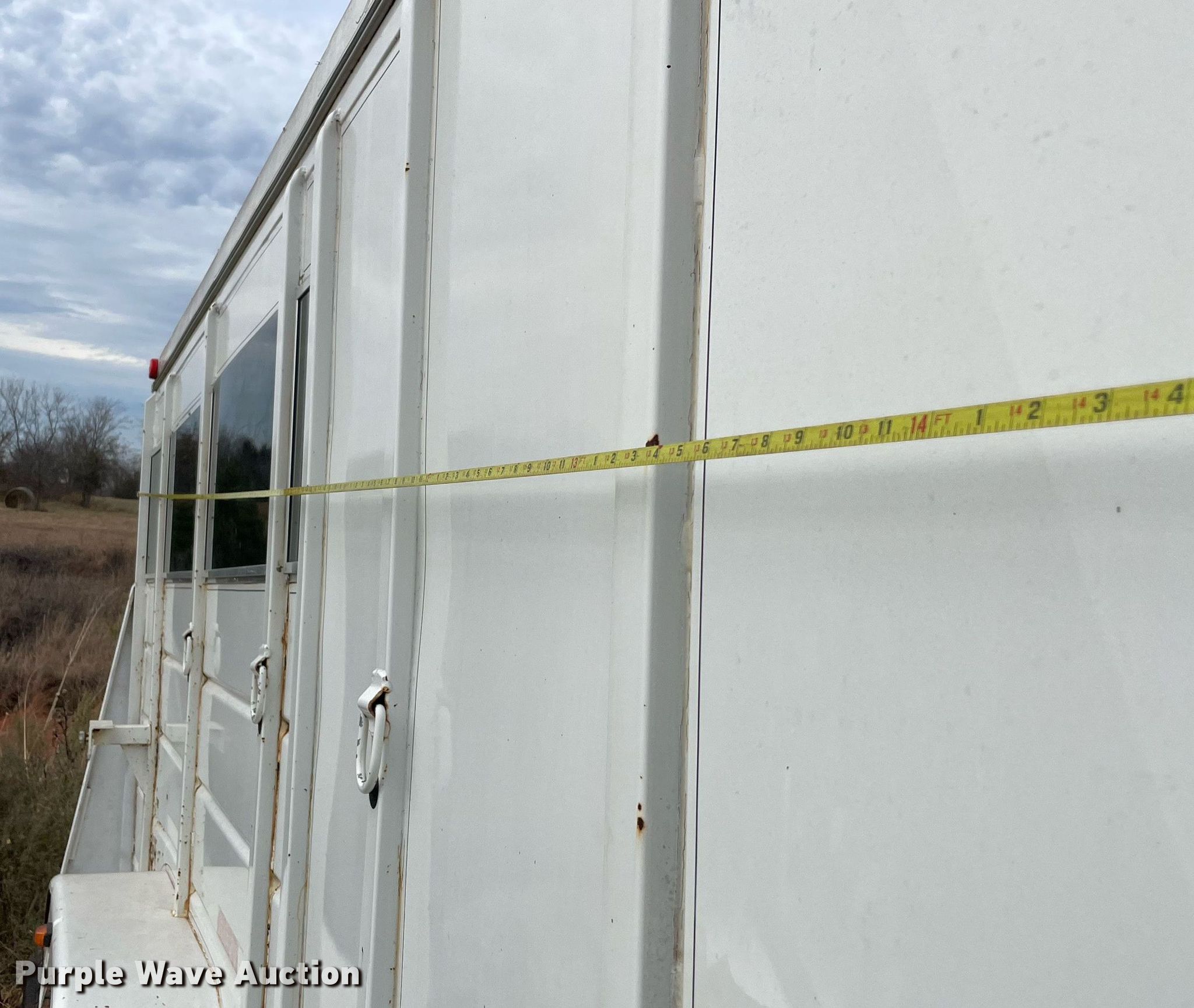 2009 Wilson livestock trailer. VIN: 11WHS16299W303494. Dimensions Overall: 24' L x 8' W, Body: 16' L x 8' W. Features Center gates: 2, Rubber floor mat. Chassis Hitch: Gooseneck, Landing gear: Single, Suspension: Spring, Brakes: Electric, Axles: Tandem. Tires Size: 225/75R15. Notes Unknown operating condition of AC. Transfer of ownership documentation will be a bill of sale. SWH Construction. 468 SW 24th Ave. Goldsby, OK 73093
