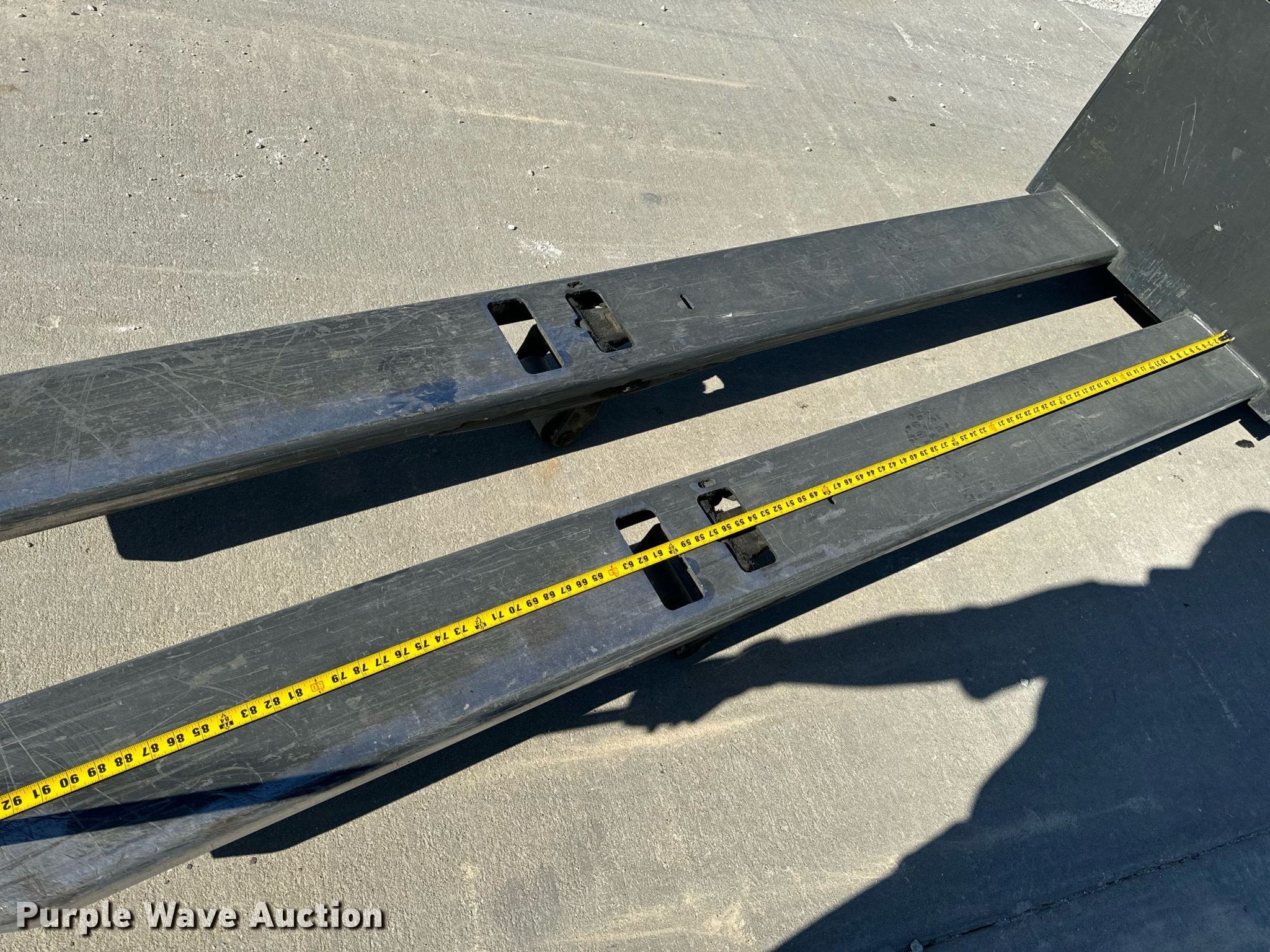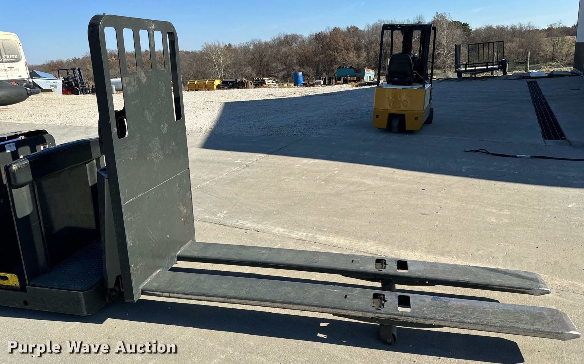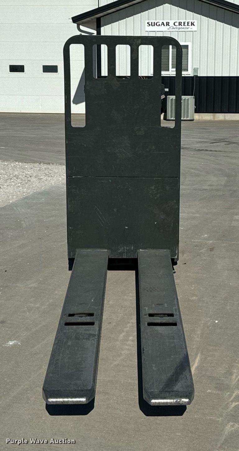 Barrett SPXT2W3G80BV order picker. Serial: 2W38-9322183. Electric Motor Volts: 24, Phase: Single. Transmission Hydrostatic. Features Maximum lift capacity: 8,000 lbs, Maximum lift height: 9", Fork length: 96". Notes No battery. Sugar Creek Enterprises. 1379 County Road 1305. Moberly, MO 65270