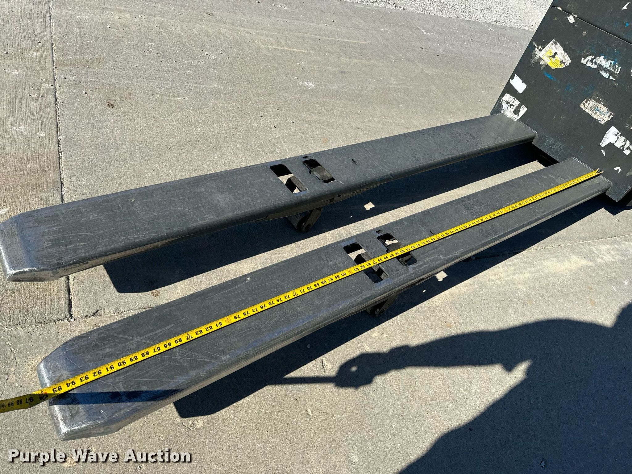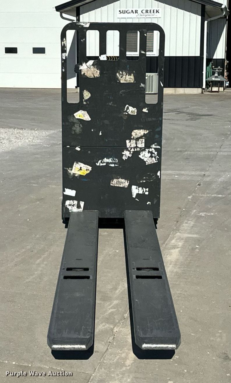 Barrett SPXT2W3G80BV order picker. Serial: 2W38-9322186. Electric Motor Volts: 24, Phase: Single. Transmission Hydrostatic. Features Maximum lift capacity: 8,000 lbs, Maximum lift height: 9", Fork length: 96". Notes No battery. Sugar Creek Enterprises. 1379 County Road 1305. Moberly, MO 65270