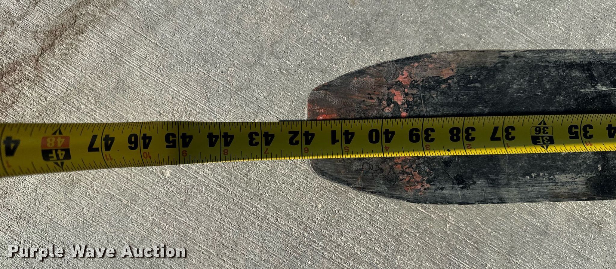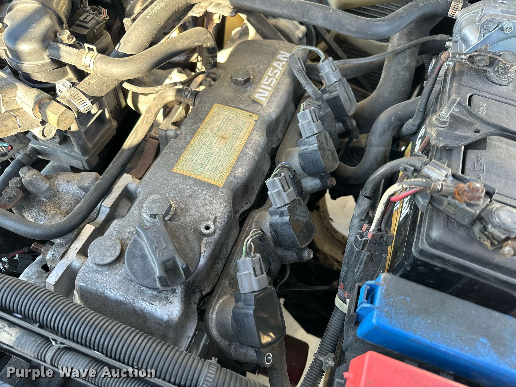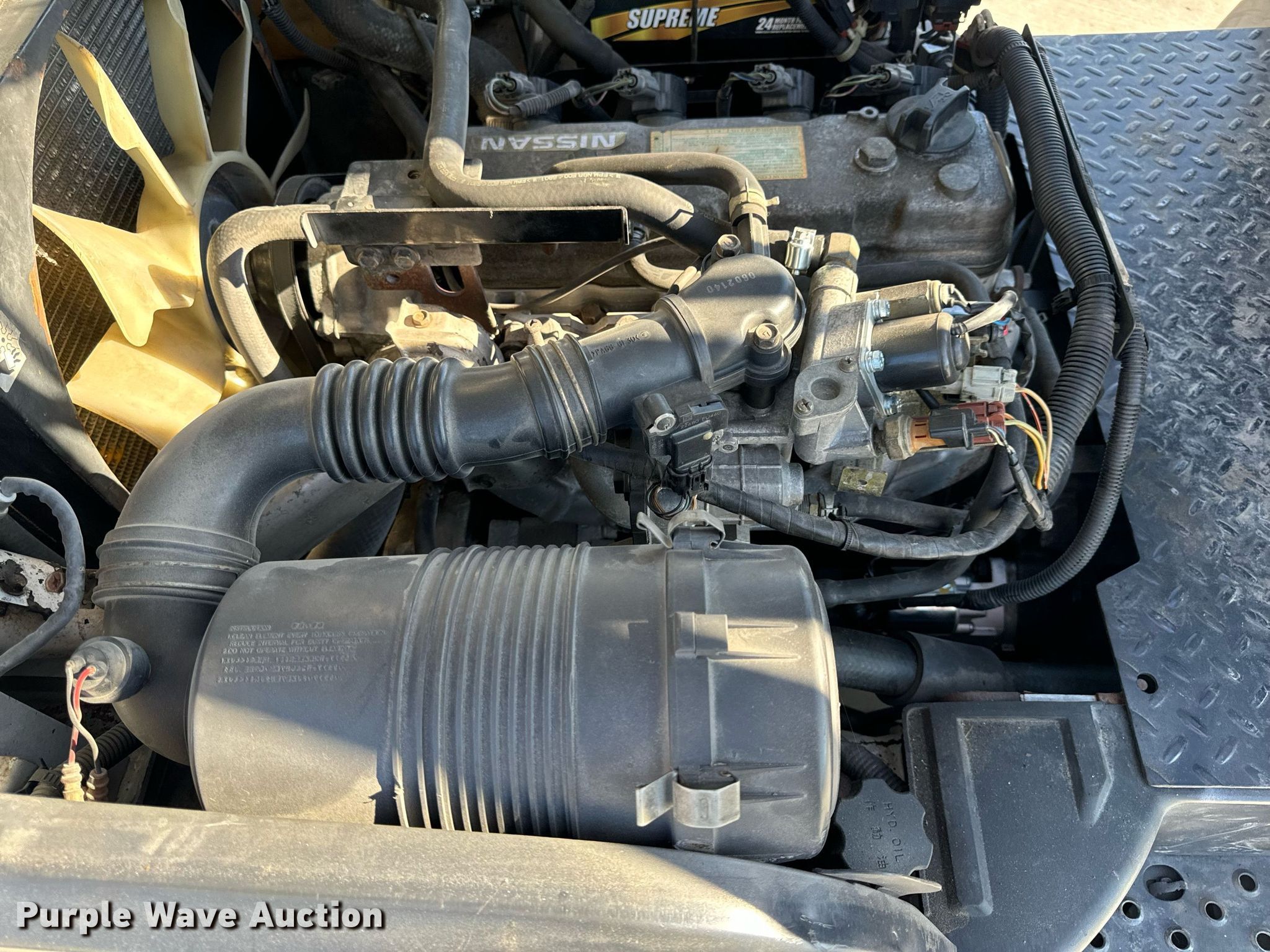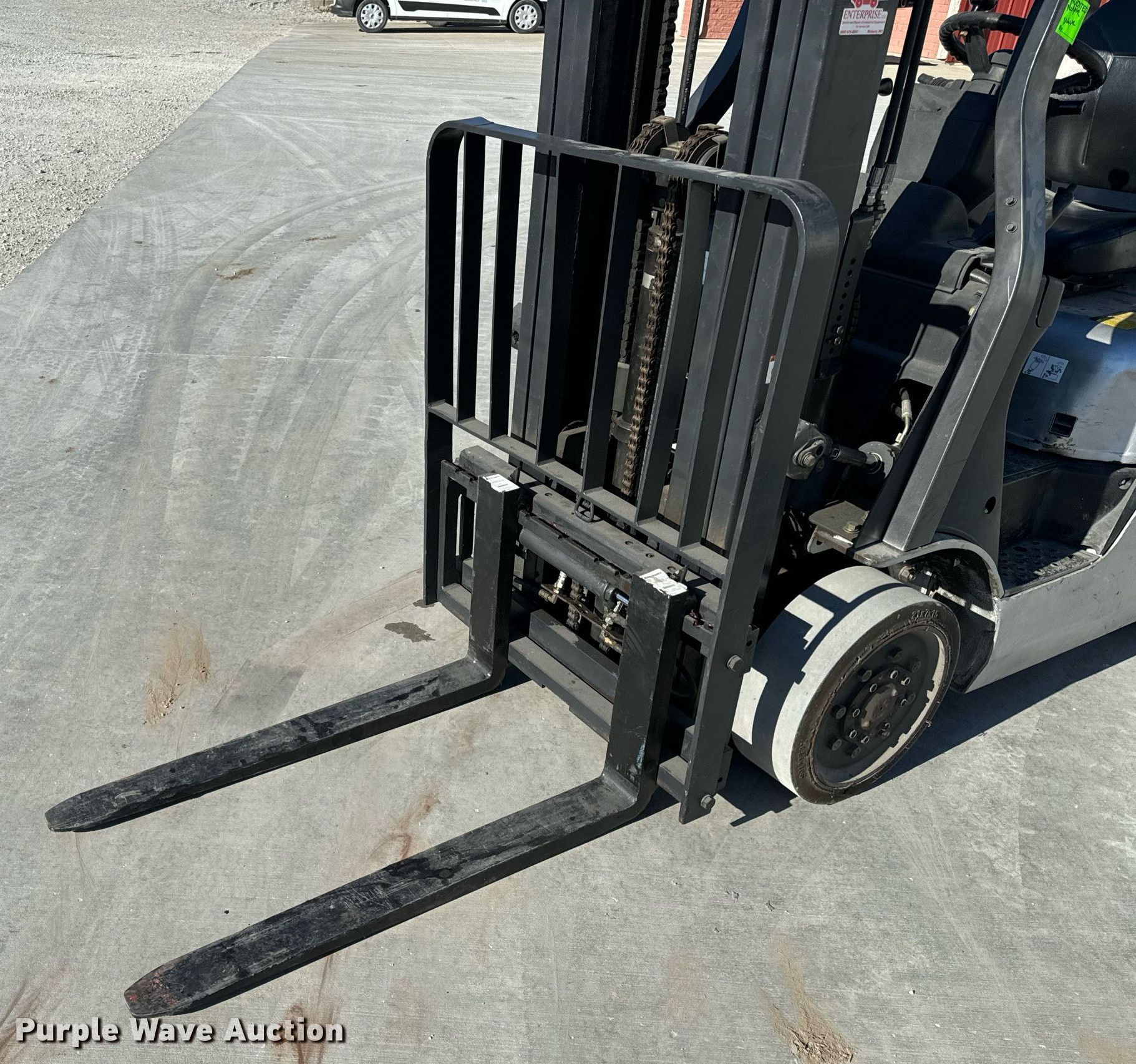Nissan 50 forklift. Hours: 15,336 on meter, Serial: CPL02-9P7105. Engine Nissan K21 , Displacement: 2.1L, Cylinders: 4, Fuel type: LPG LP bottle: Not included. Transmission Powershift. Operators station OROPS. Features Maximum lift capacity: 4,400 lbs, Maximum lift height: 187", Mast stages: 3, Side shift, Mast tilt, Fork length: 42". Tires Front: 21X7X15, Rear: 413/12-285.8, Solid, Non-marking. Notes Warning indicator: E-27. Sugar Creek Enterprises. 1379 County Road 1305. Moberly, MO 65270
