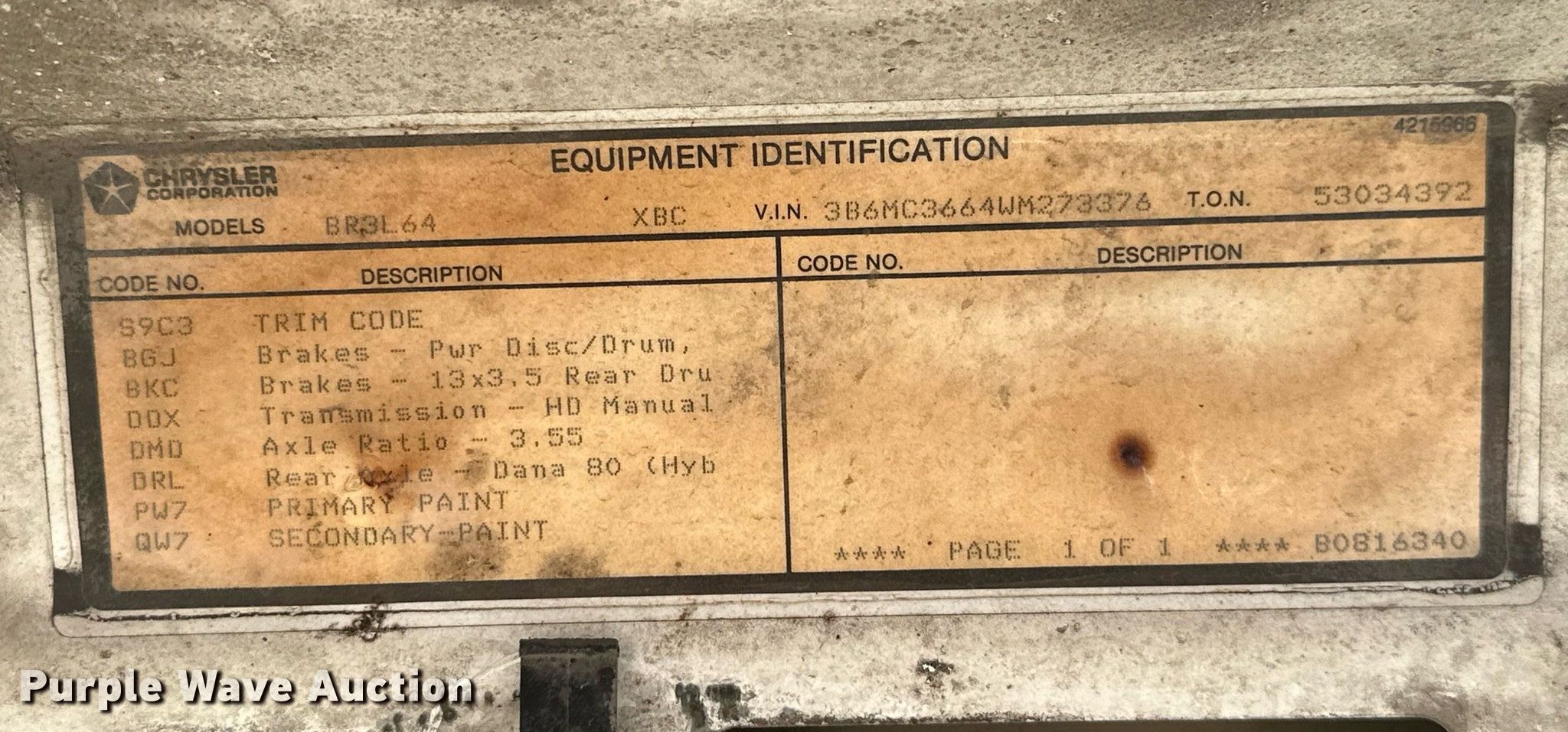 Purple Wave is selling a used 3/4 or 1 Ton Pickup or Van in Oklahoma. This item is a 1998 Dodge Ram 3500 flatbed pickup truck with the following: Miles: 350,546 on odometer, VIN: 3B6MC3664WM273376