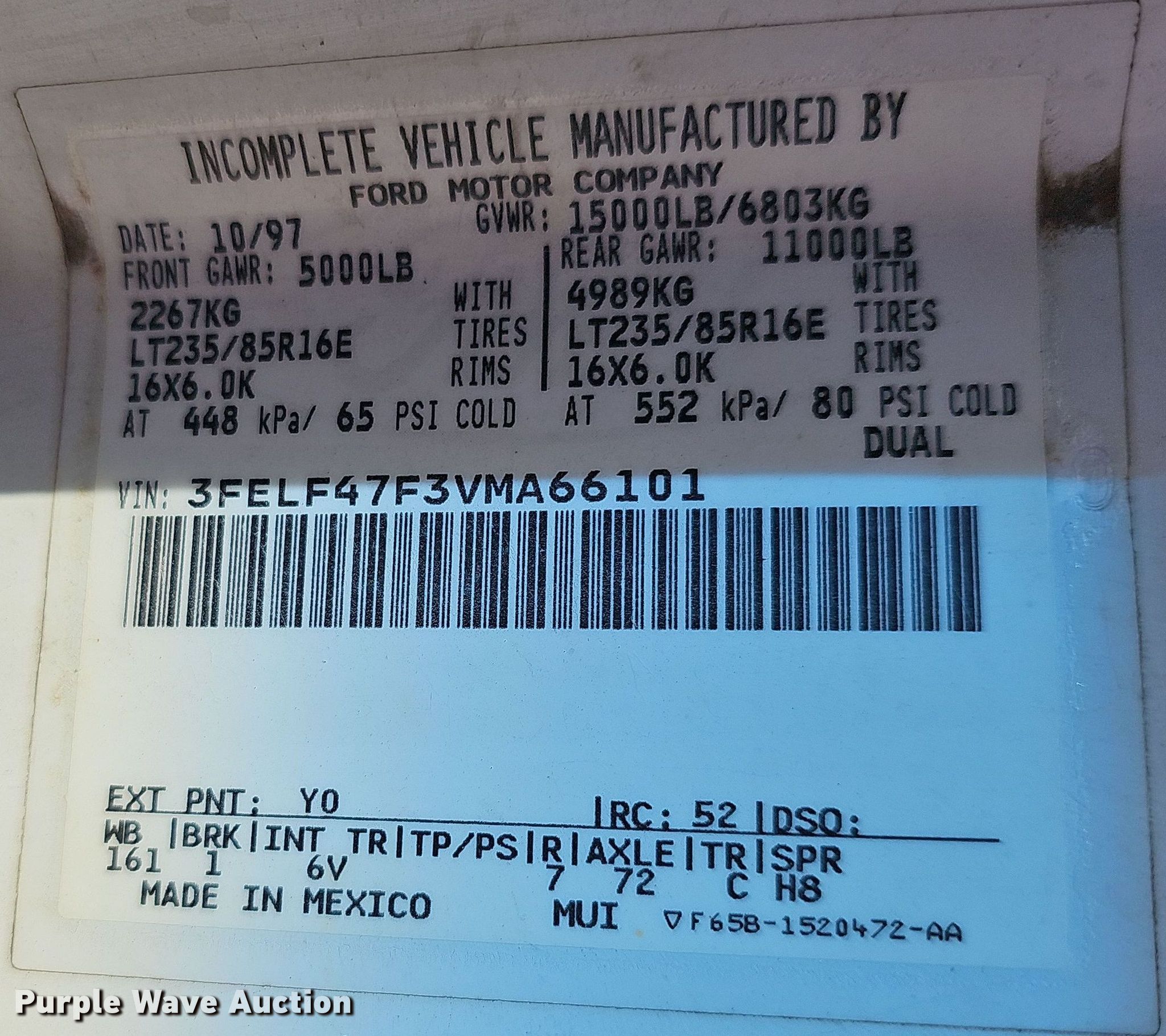 - VIN: 3FELF47F3VMA66101