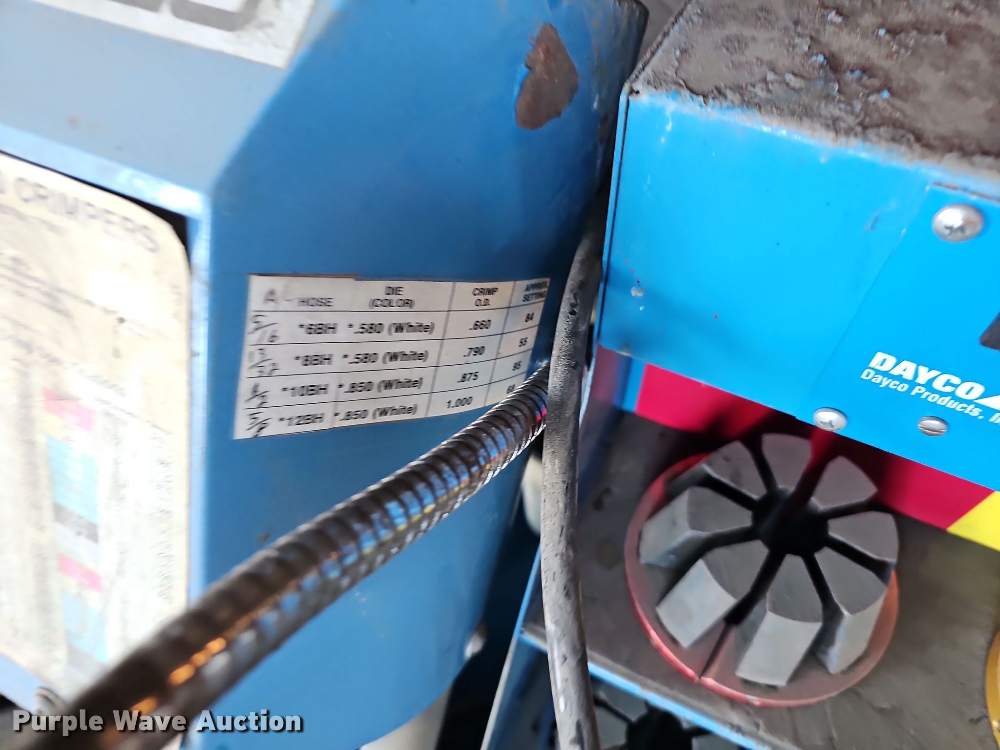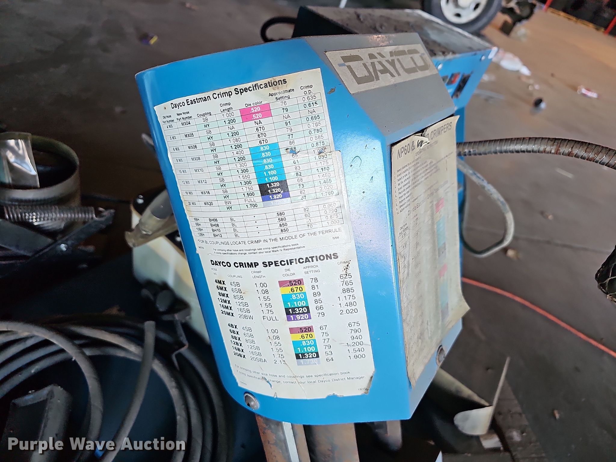 Purple Wave is selling a used Tools in Missouri. This item is a Dayco NP60 WB60 hydraulic hose crimper with the following: Magnetec, Volts: 230, Phase: Single