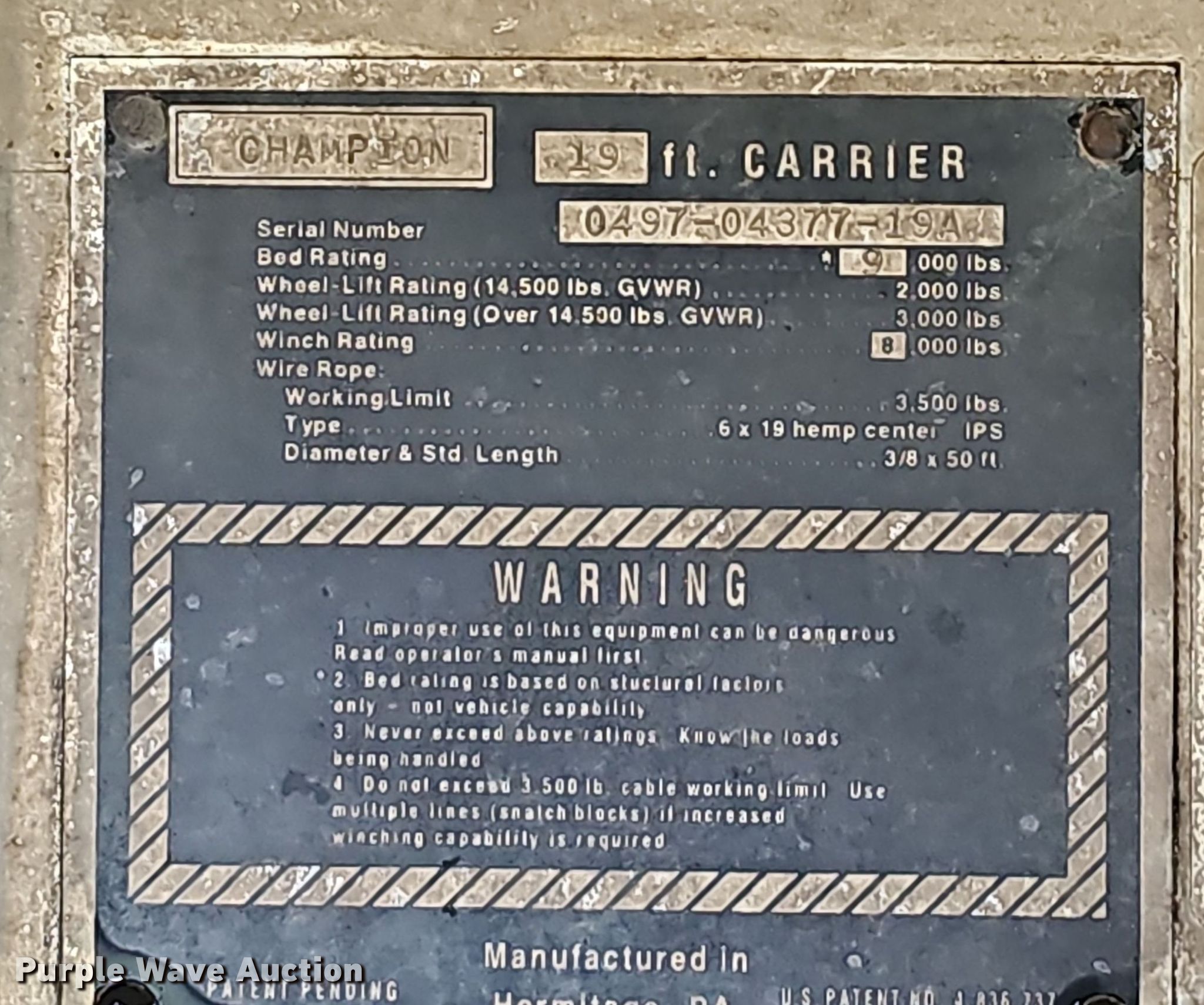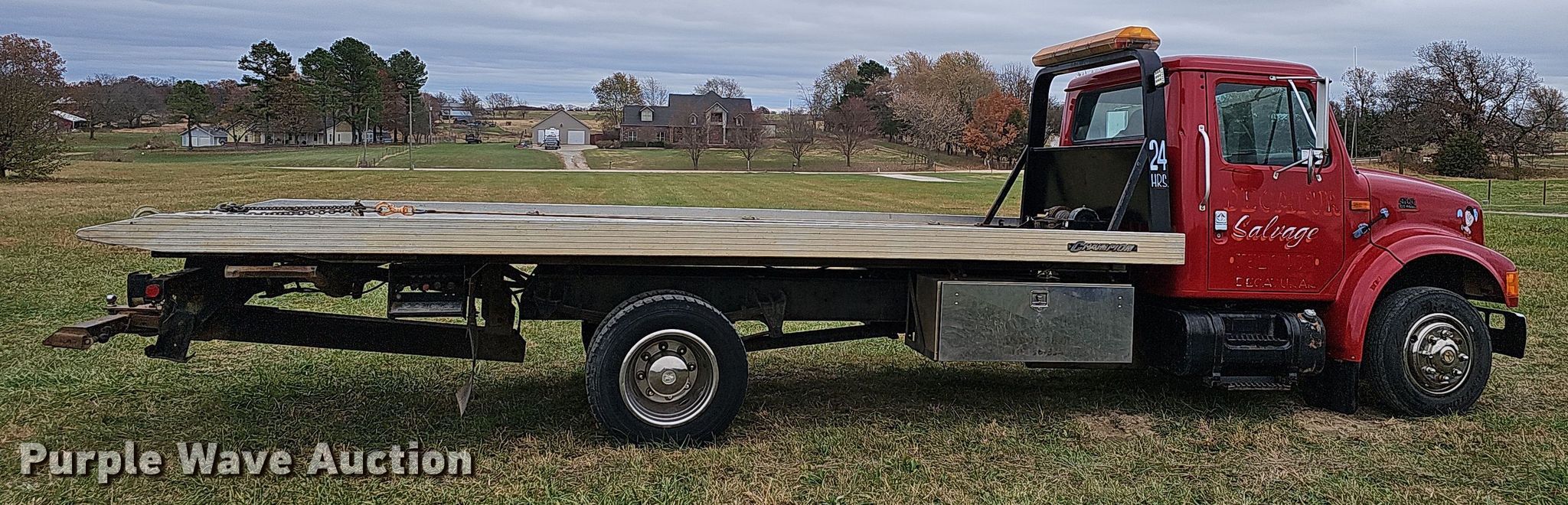 1997 International 4700 rollback truck. Miles: 193,412 on odometer, VIN: 1HTSCAAM6VH478409. Engine Navistar DT466, Displacement: 7.6L, Cylinders: 6, Fuel type: Diesel. Transmission Automatic. Chassis Axles: Single, Suspension: Spring, Brakes: Hydraulic, PTO, Wheelbase: 188". Interior AC, heat, Power windows. Features Rollback bed Champion , Serial: 0497-04377-19A, 18' 10" L x 96" W, Ram: Single, Winch Capacity: 8,000 lbs., Rolling tailboard, Underlift Hydraulic fold. Tires Size: 245/70R19.5. Notes Non-operational AC. Arkansas title. Decatur Wrecker. 8105 North Coffelt Cemetery Road. Bentonville, AR 72712