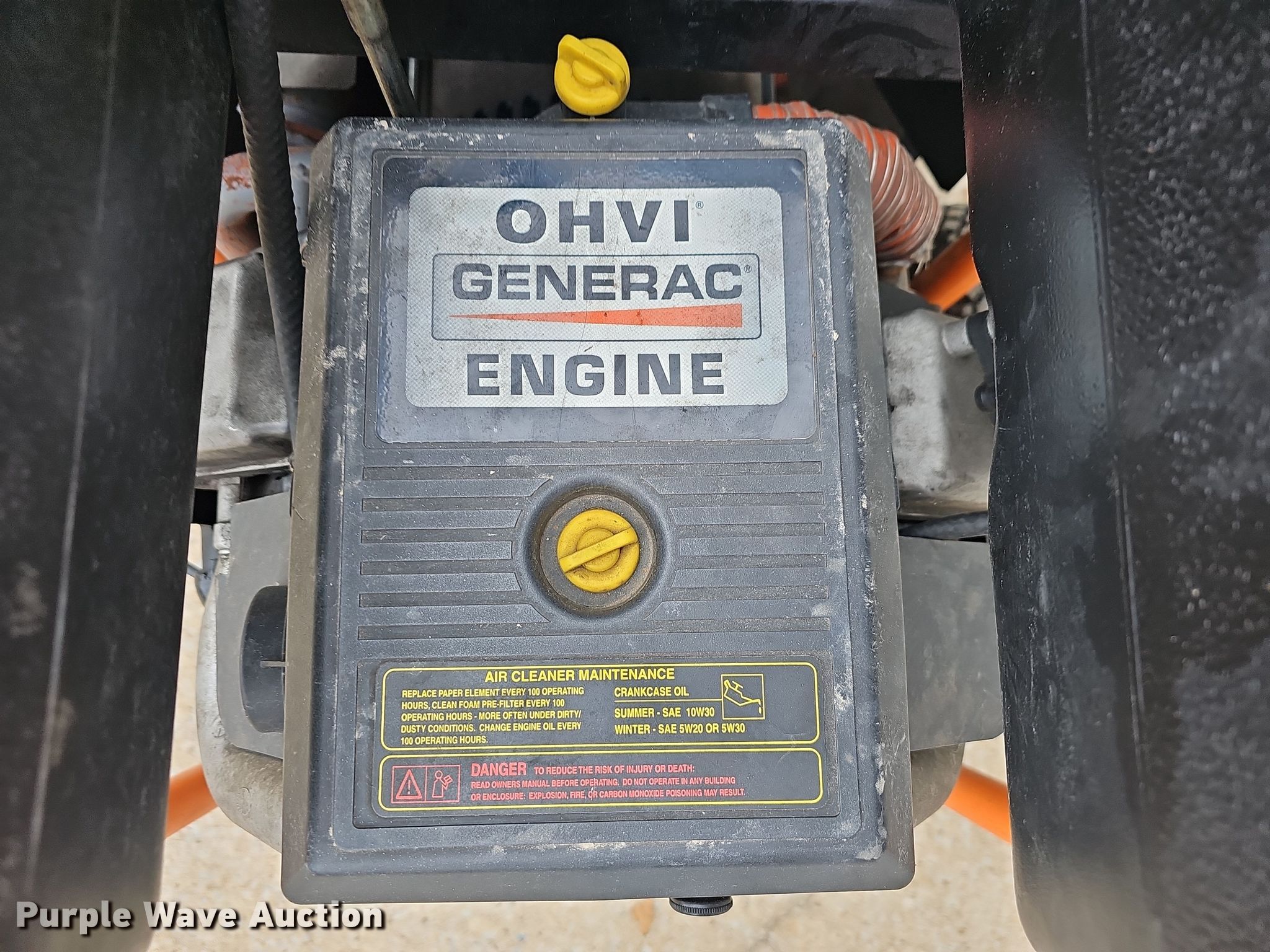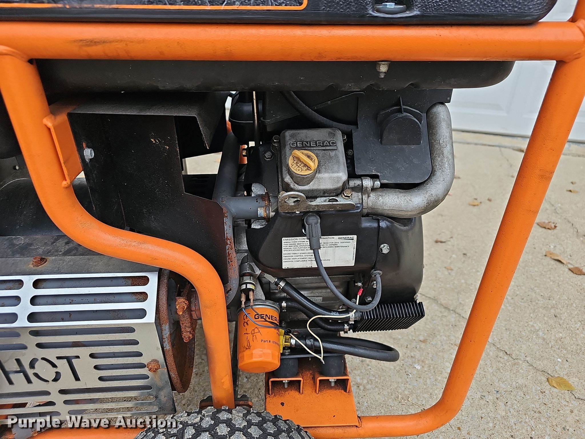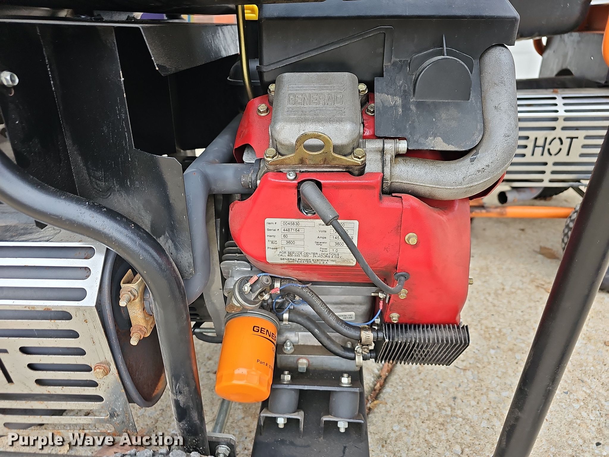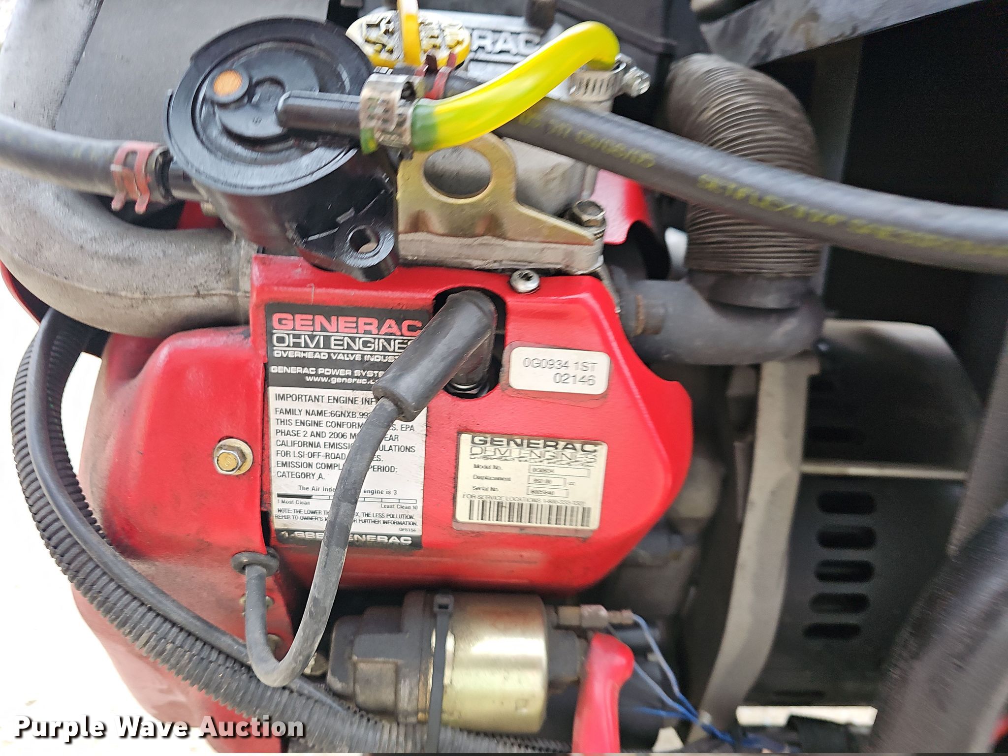 Purple Wave is selling a used Generator Set in Missouri. This item is a (2) Generac generators with the following: Serial: 8005840, Displacement: 990, Cylinders: 2, Fuel type: Gas, HP: 33, Generator, Generac, Watts: 17,500, Phase: Single, Electric start, Fuel tank, Skid mounted