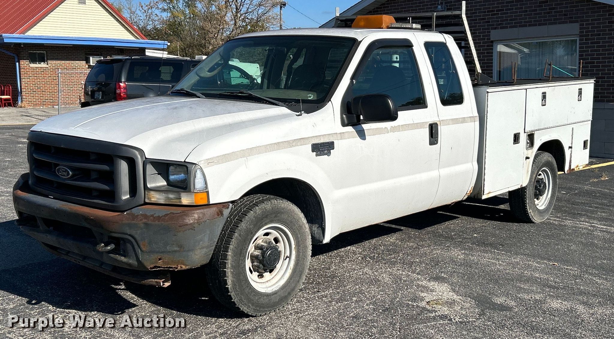 2003 Ford F250 Super Duty XL SuperCab utility bed pickup truck has sold in Belleville, Illinois for $1925. Item NR9334 sold on December 13th, 2023.