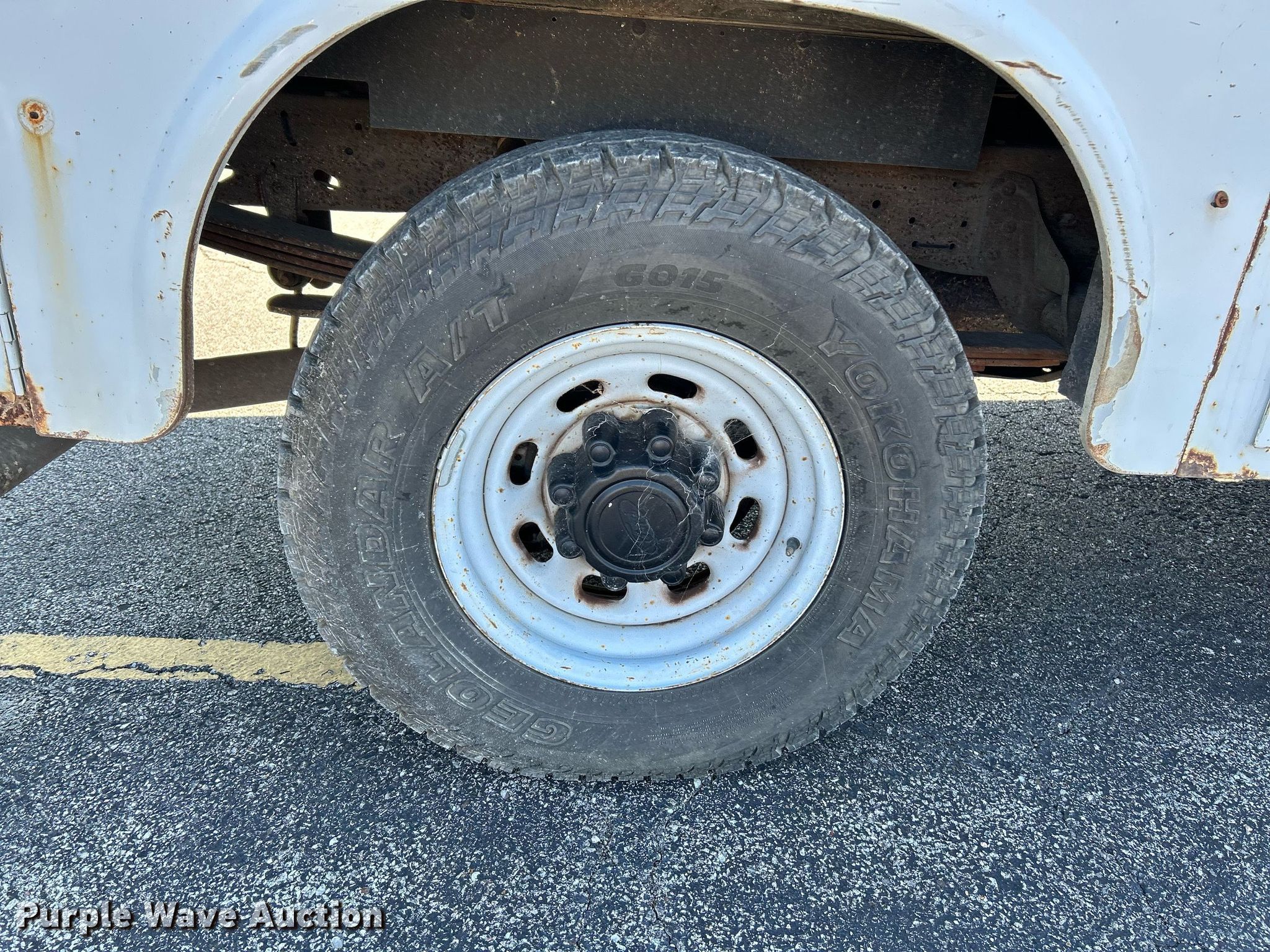 2003 Ford F250 Super Duty XL SuperCab utility bed pickup truck. Miles: 136,551 on odometer, VIN: 1FDNX20L93EB85336, Unit #: 105. Engine Displacement: 5.4L V8 SOHC, Cylinders: 8, Fuel type: Gas. Transmission Automatic. Interior AC, heat. Features Utility bed 8'L x 78" W, Tommy gate lift Capacity: 1600 lbs. Tires Size: LT245/75R16. Notes Back door issue, locked shut, Non-operational end gate lift. Illinois title. Title distribution may be delayed up to 14 days from verification of funds. Ramirez Diversified Services, LLC. Belleville, IL 62226