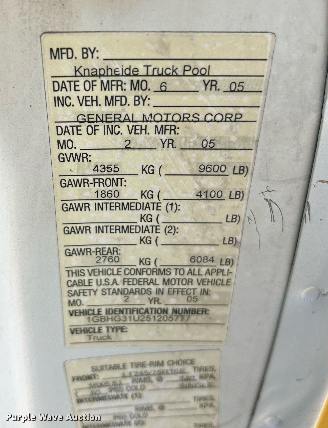 2005 Chevrolet 3500 Express utility van. Miles: 164,189 on odometer, VIN: 1GBHG31U251205777. Engine Displacement: 6.0L V8 OHV, Cylinders: 8, Fuel type: Gas. Transmission Automatic. Interior AC, heat, Cruise control. Features Utility bed Knapheide, 10' 9" L x 83" W. Tires Size: 245/75R16. Notes Dash warning indicator: Check engine, Airbag, Windshield chipped or cracked, Exhaust issues, hole in muffler. Illinois title. Seller is a Missouri licensed motor vehicle dealer. Title will be assigned and distributed by the dealer. Please contact the seller for distribution questions. Title distribution may be delayed up to 30 days from verification of funds. Northpoint Enterprises, LLC. 100 Manda Ct. Troy, MO 63379