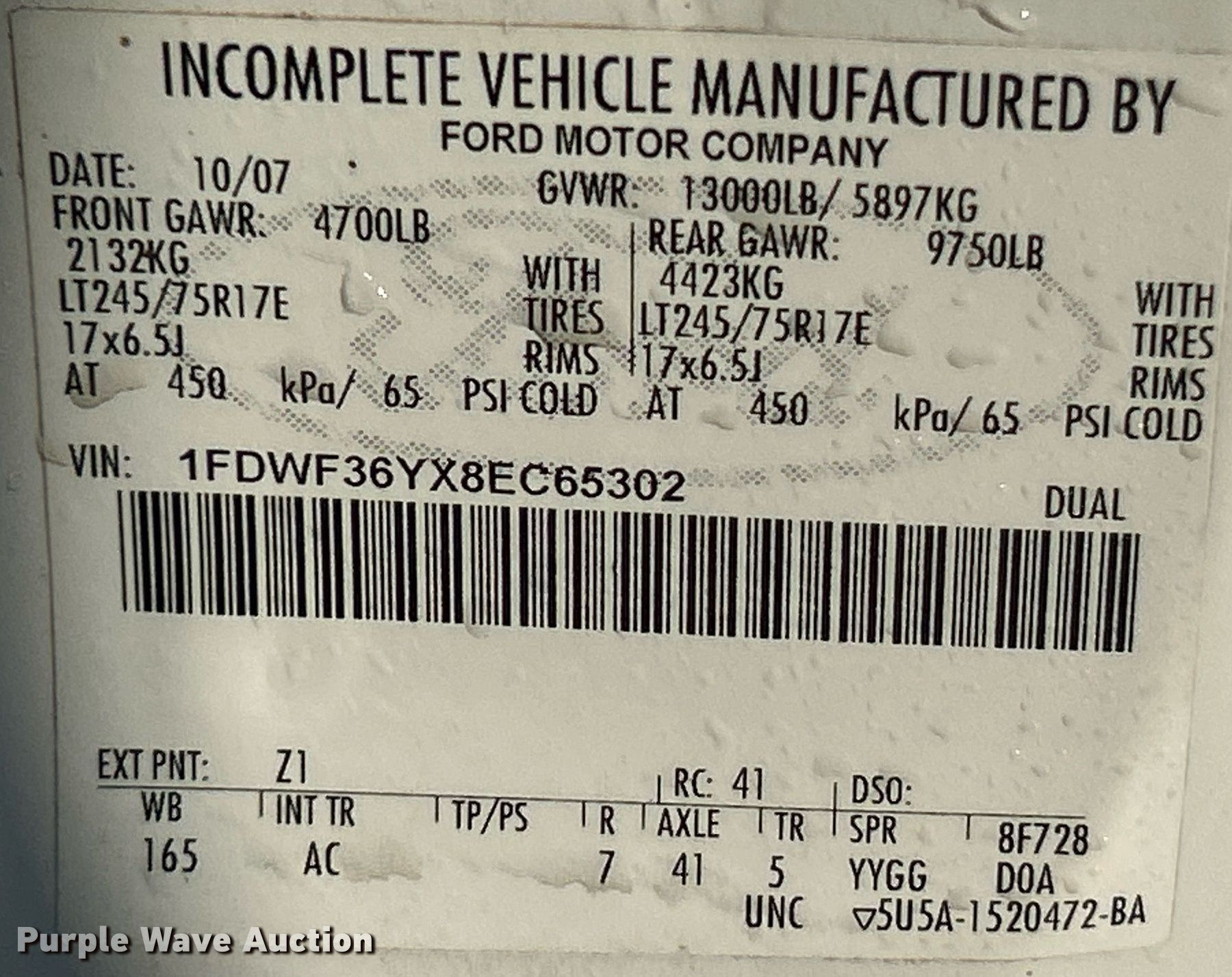 - VIN: 1FDWF36YX8EC65302