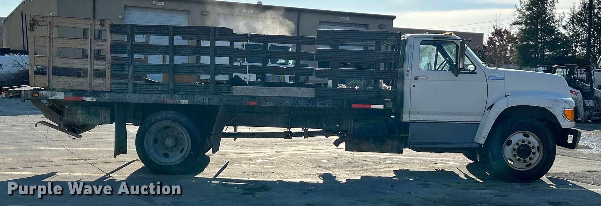 This 1995 Ford F800 flatbed truck will sell to the highest bidder regardless of price.