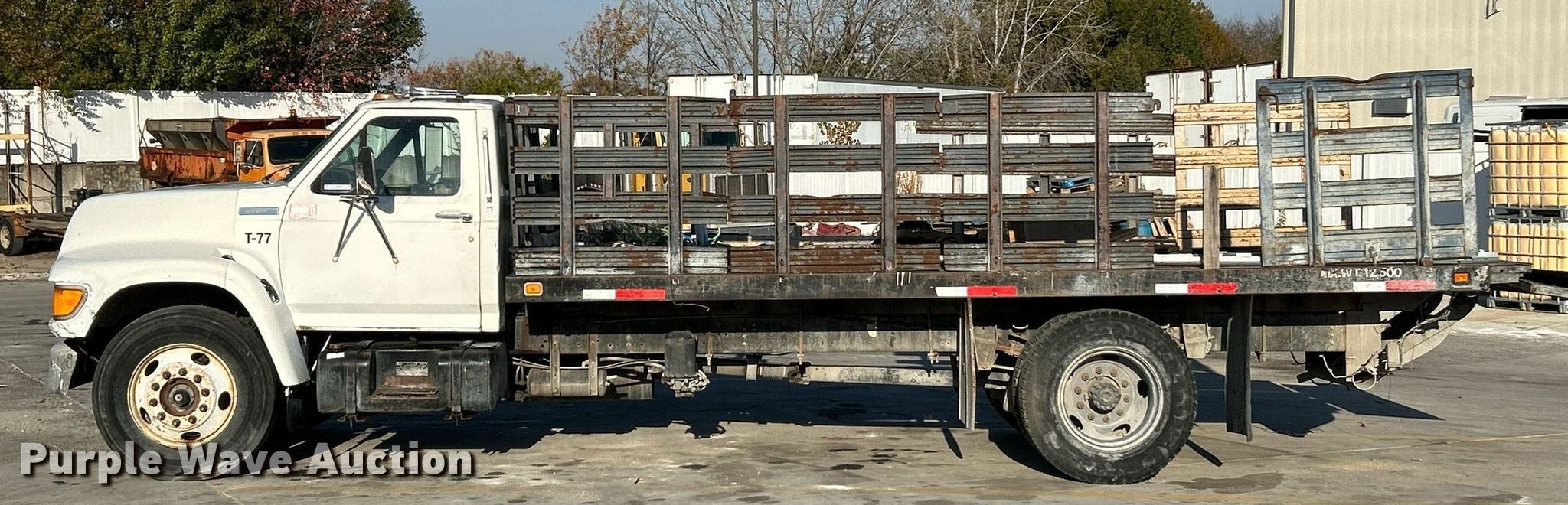 Purple Wave is selling a used Flat Bed Truck in Missouri. This item is a 1995 Ford F800 flatbed truck with the following: Miles: 71,382 on odometer, VIN: 1FDWF80C8SVA65925, Unit #: T77