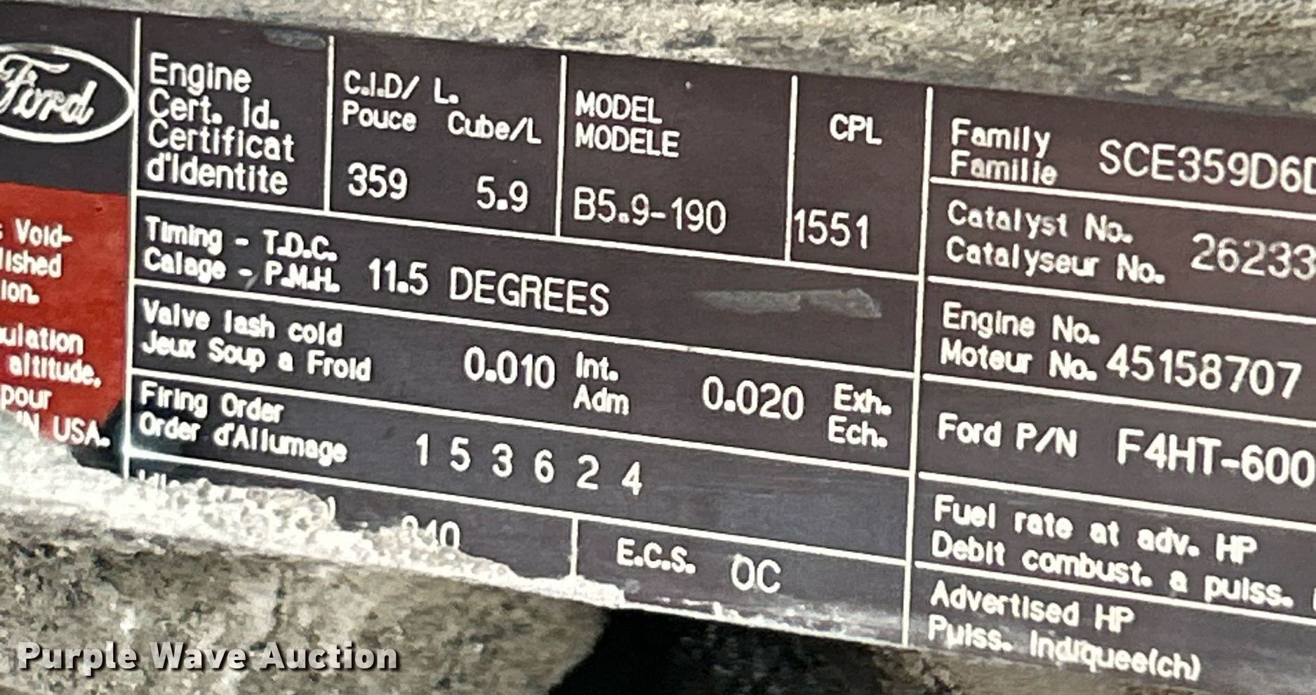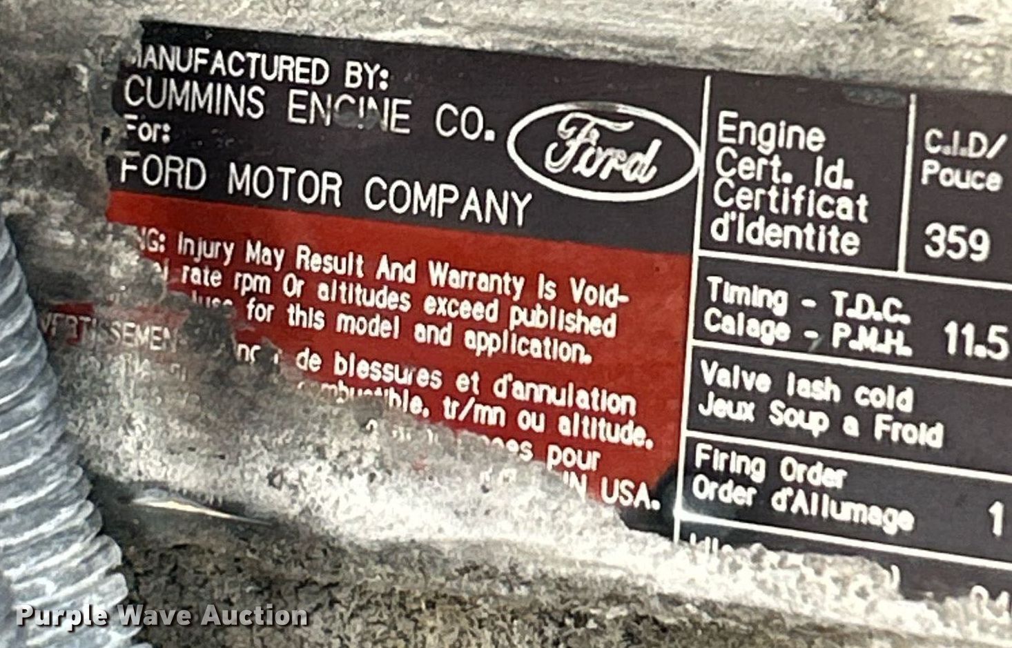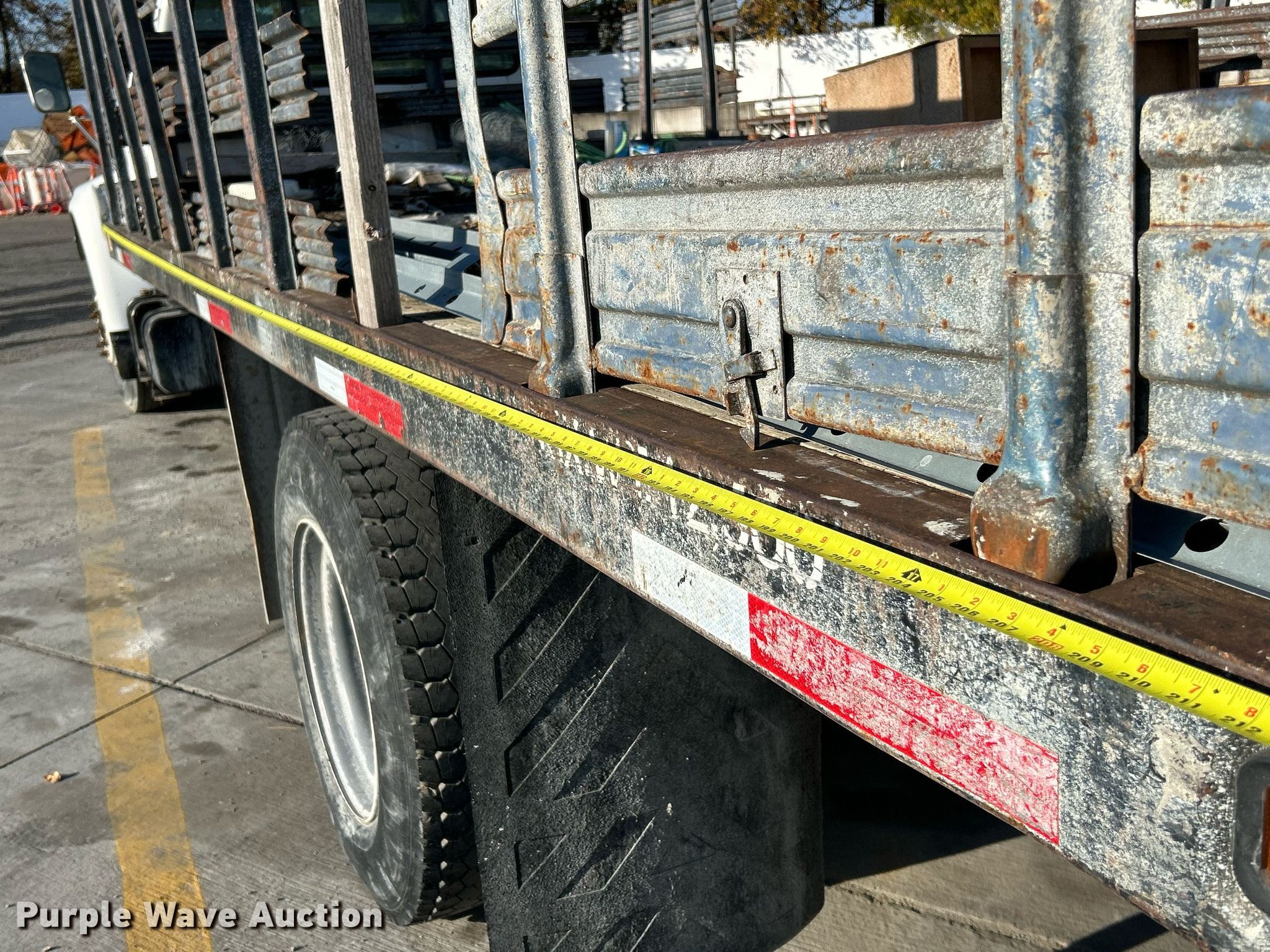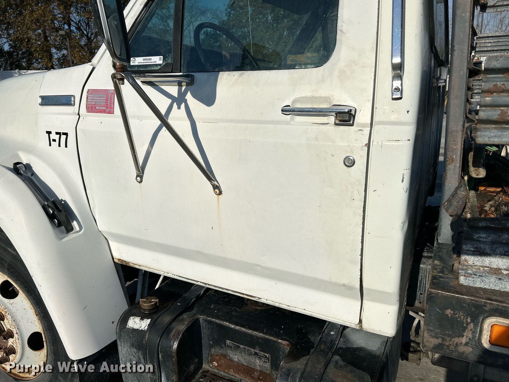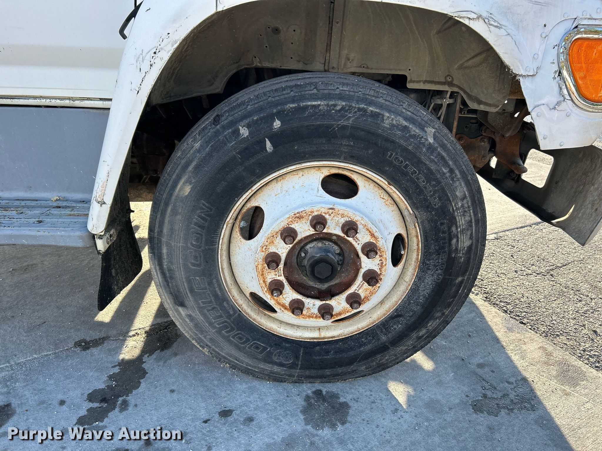 1995 Ford F800 flatbed truck. Miles: 71,382 on odometer, VIN: 1FDWF80C8SVA65925, Unit #: T77. Engine Cummins, Displacement: 5.9L, Cylinders: 6, Fuel type: Diesel. Transmission Automatic. Chassis Axles: Single, Suspension: Spring, Brakes: Air, GVWR: 24,500 lbs, Wheelbase: 207". Interior AC, Heat. Features Flatbed Knapheide, 19' L x 96" W, Removable sides, End gate lift Waltco, Capacity: 1,600 lbs. Tires Size: 10R22.5. Notes Windshield chipped or cracked, Non-operational end gate lift. Missouri title. Title distribution may be delayed up to 14 days from verification of funds. M&H Concrete Contractors Inc.. St. Peters, MO 63376