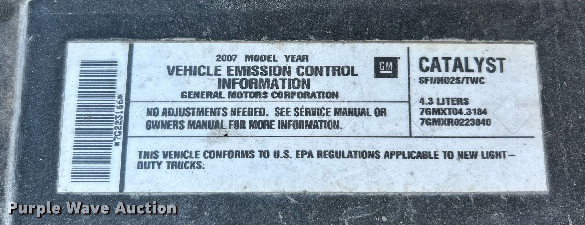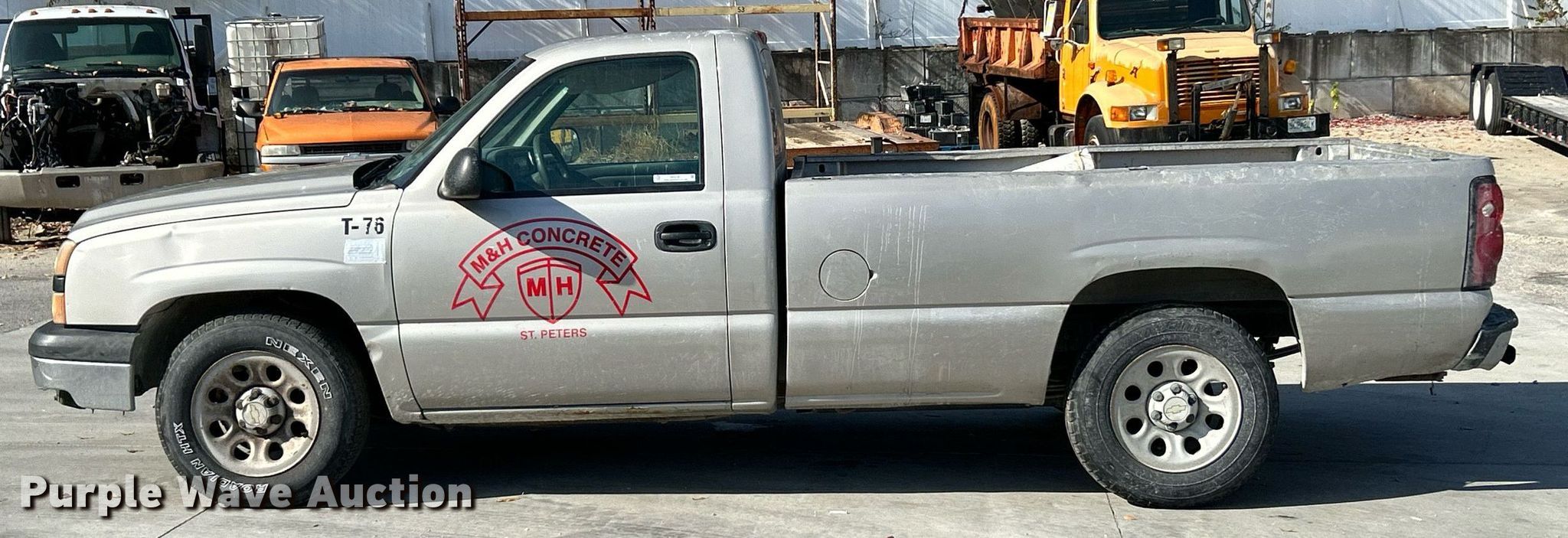 2007 Chevrolet Silverado 1500 pickup truck. Miles: 171,521 on odometer, Hours: 5,626 on meter, VIN: 3GCEC14X77G223166, Unit #: T76. Engine Displacement: 4.3L V6 OHV, Cylinders: 6, Fuel type: Gas. Transmission Automatic. Interior AC, Heat, Cruise control. Tires Size: 245/70R17. Notes Dash warning indicator: Check engine, Airbag. Missouri title. Title distribution may be delayed up to 14 days from verification of funds. M&H Concrete Contractors Inc.. St. Peters, MO 63376