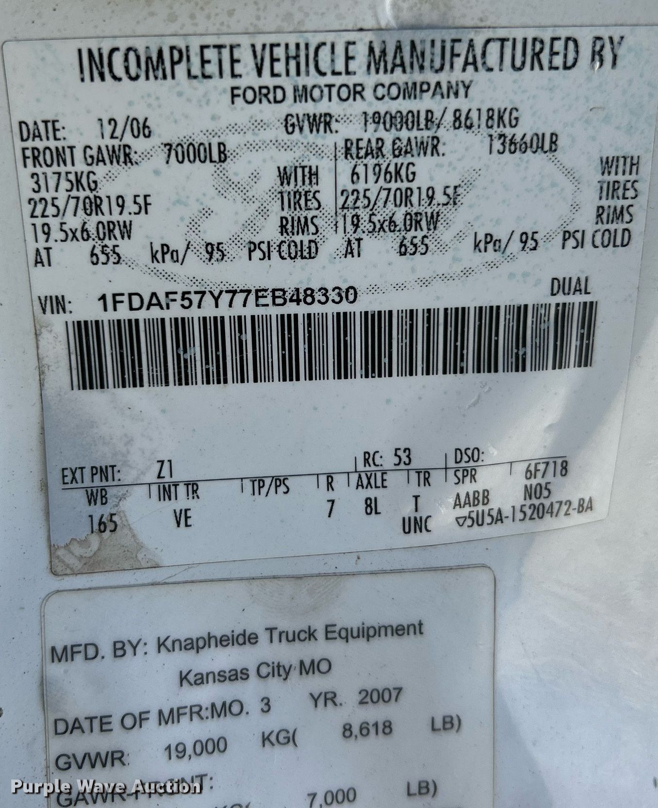 Purple Wave is selling a used Service Truck in Missouri. This item is a 2007 Ford F550 Super Duty XL utility / service truck with the following: Miles: 129,849 on odometer, VIN: 1FDAF57Y77EB48330