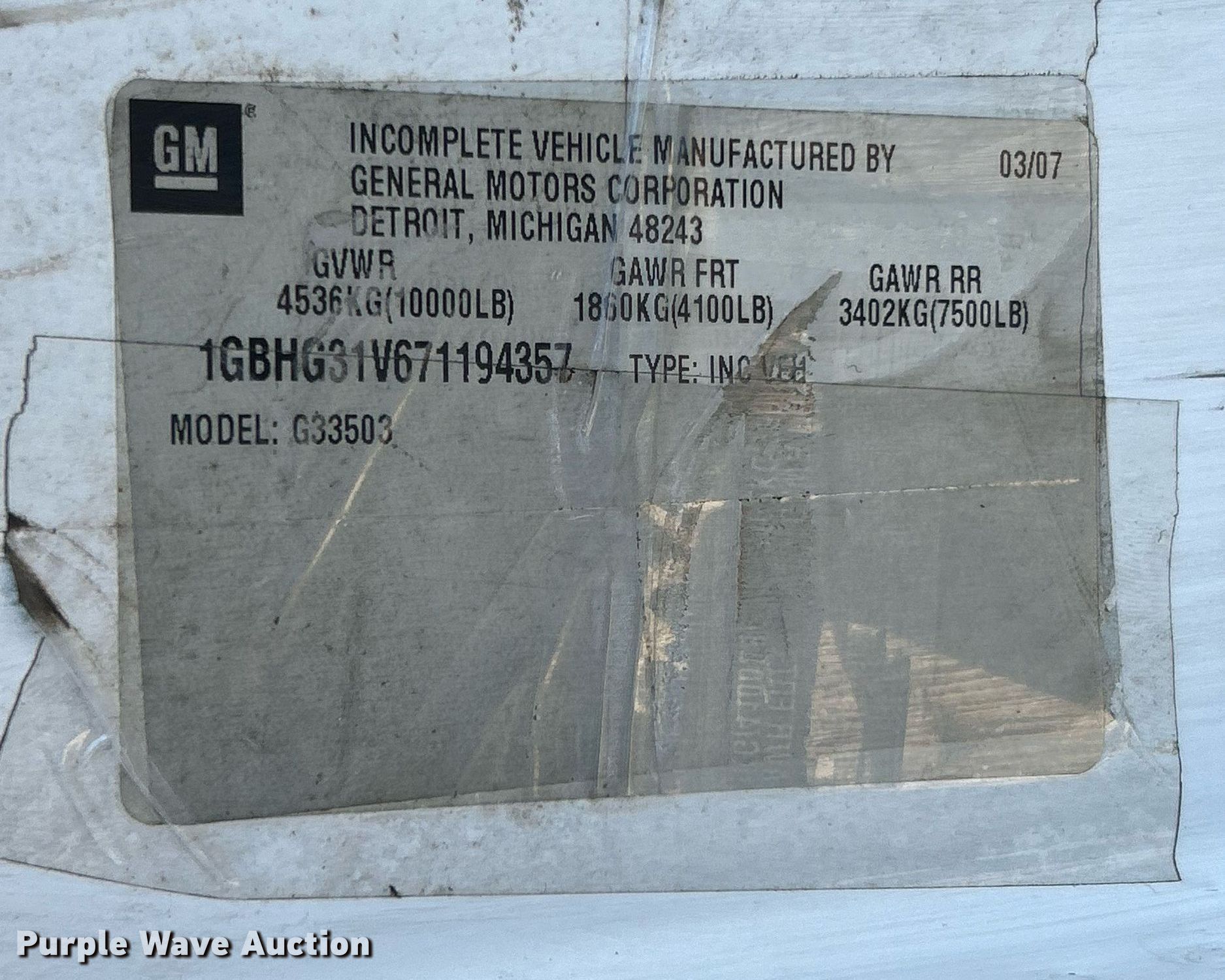 Purple Wave is selling a used Box Truck in Missouri. This item is a 2007 Chevrolet Express 3500 box truck with the following: Miles: 173,005 on odometer, VIN: 1GBHG31V671194357