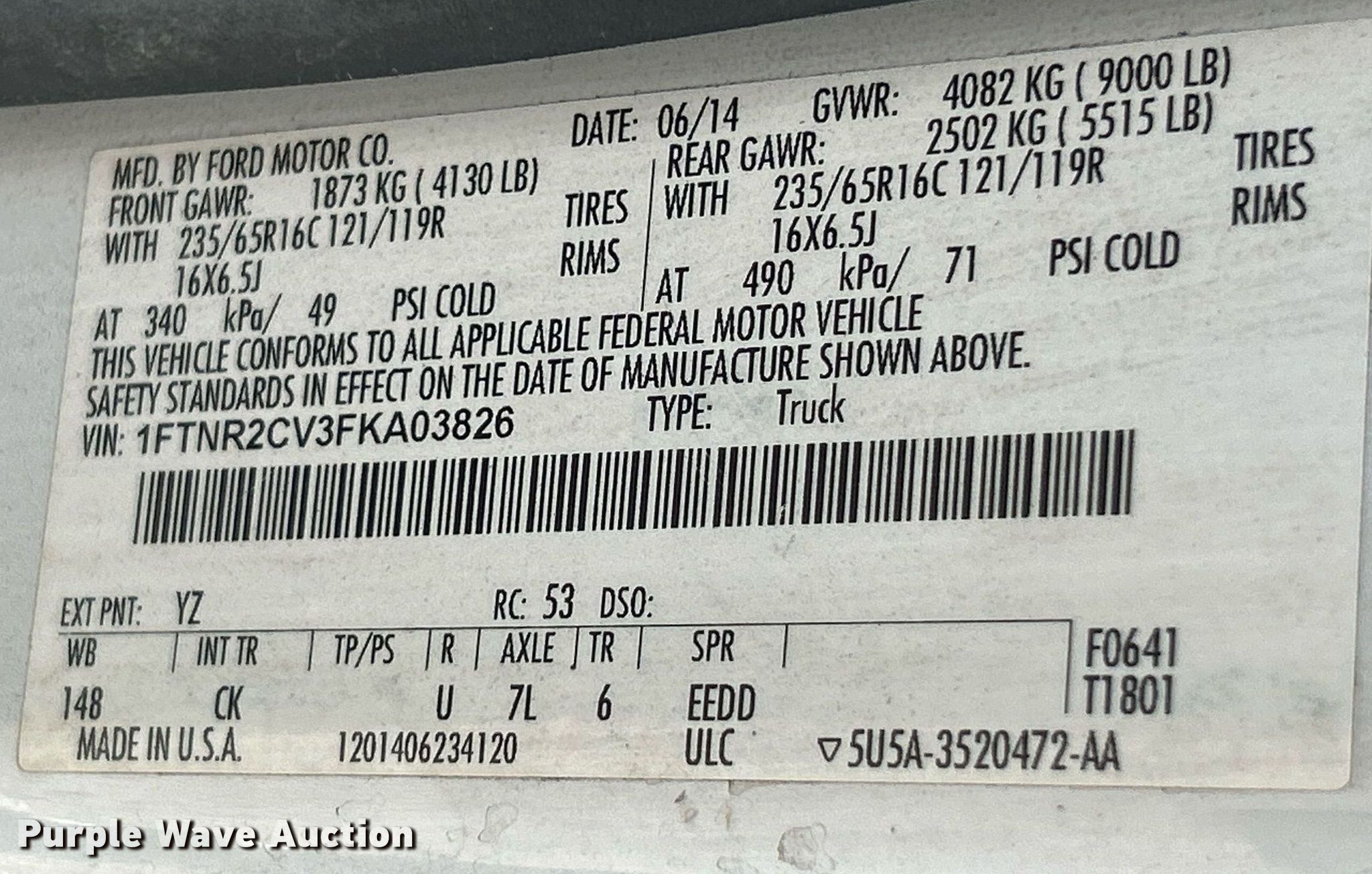 Purple Wave is selling a used 3/4 or 1 Ton Pickup or Van in Missouri. This item is a 2015 Ford Transit 250 van with the following: Miles: 114,065 on odometer, VIN: 1FTNR2CV3FKA03826