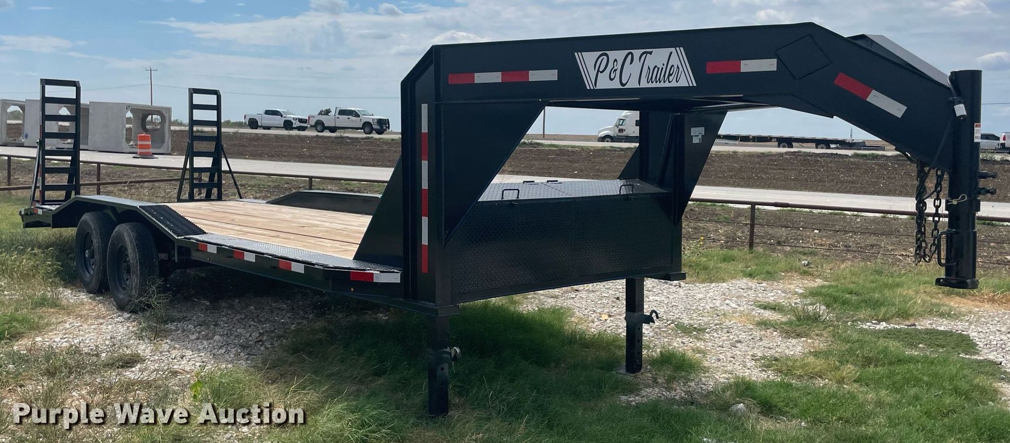 2023 P&C Trailers equipment trailer. VIN: 1P9GF2427PM829600. Dimensions Overall: 32' 6" L x 102" W, Deck: 22' L x 81" W, Hydratail length: 2', Ramps: Manual Length: 5'. Features Deck type: Wood. Chassis Hitch: Gooseneck, Landing gear: Dual, Suspension: Spring, Brakes: Electric, Axles: Tandem. Tires Size: 235/80R16. Seller is an Texas licensed motor vehicle dealer. The buyer may be required to pay sales tax and/or registration fees to the dealer prior to taking possession. Transfer of ownership documentation will be a manufacturer's certificate of origin that will be assigned and distributed by the dealer. Please contact the seller for distribution questions. Interstate Trailers of North TX. 6539 Interstate 35 Frontage Road. Gainesville, TX 76240